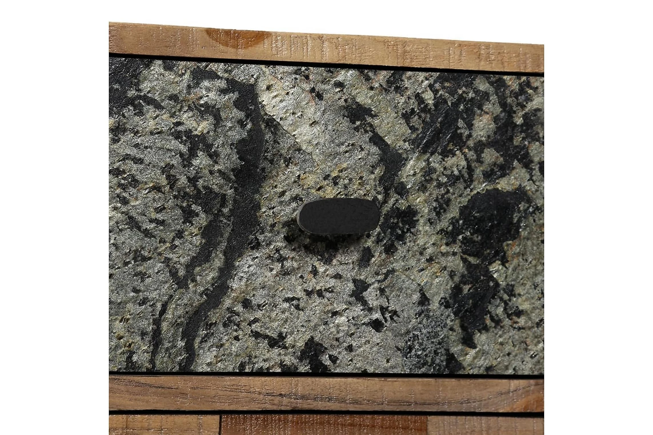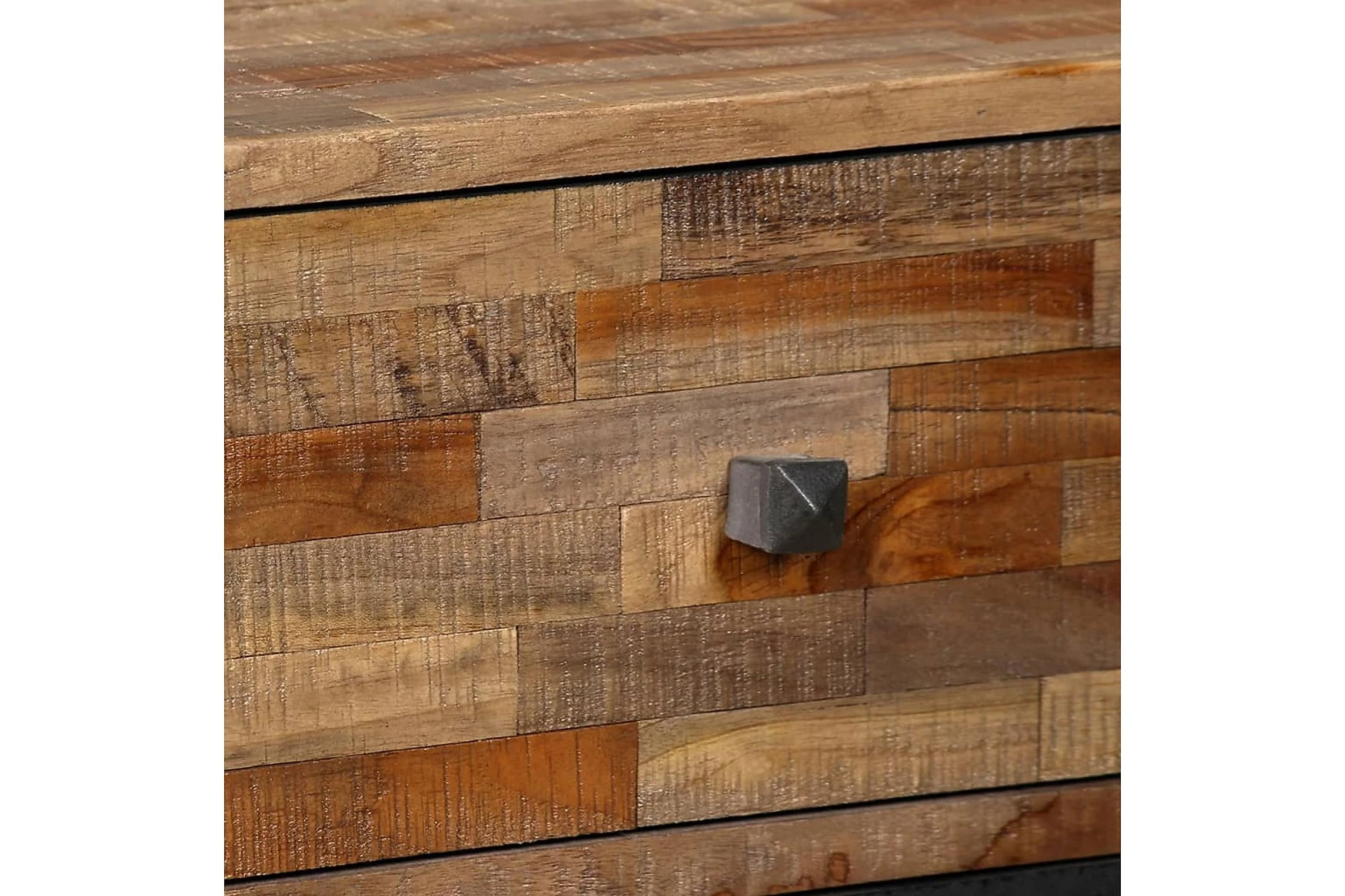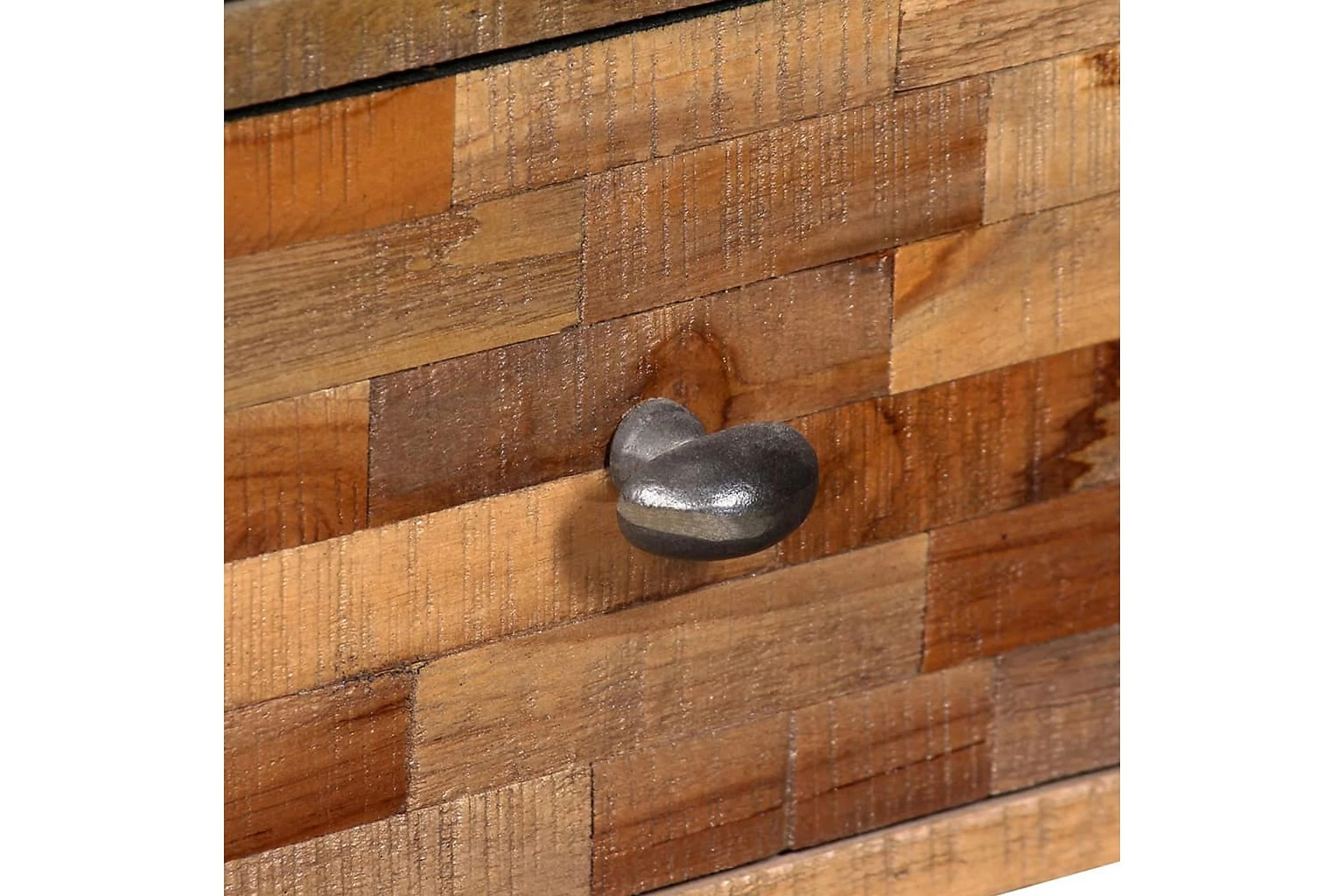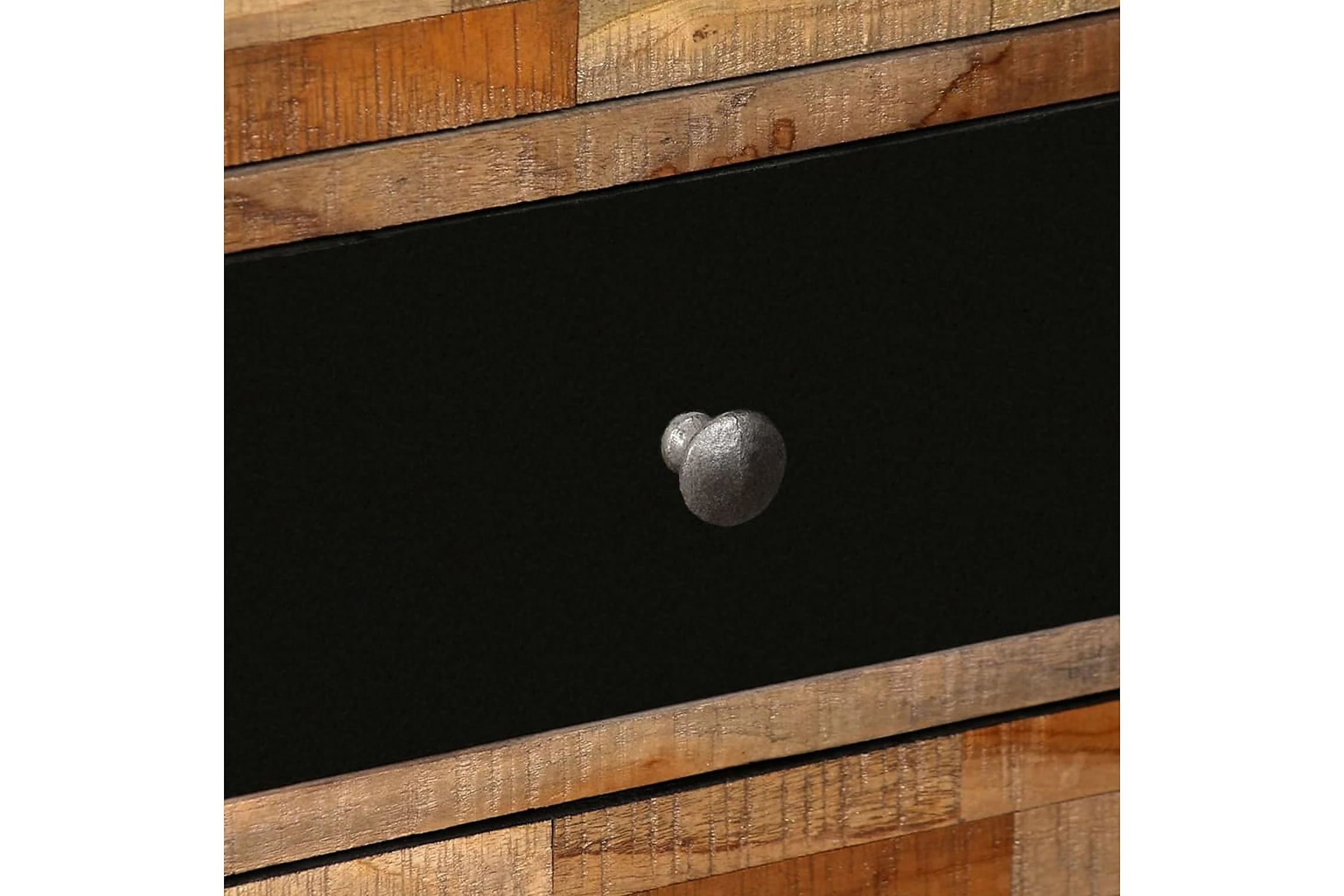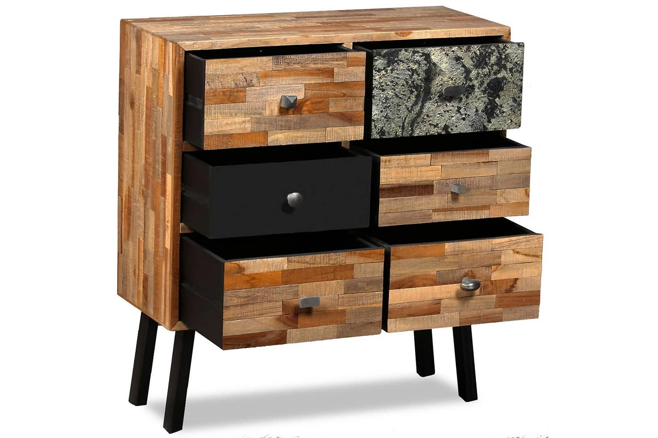 Sidoskåpet är tillverkat i återvunnen teak, vilket betyder att varje möbel är unik och skiljer sig något från de andra. Återvunnen teak är massiv, stadig, slitstark och vacker. Tack vare de starka stålbenen är sidoskåpet både stabilt och hållbart. Den stora ovansidan är perfekta att ställa dekorativa föremål, bildramar eller till och med krukväxter på och de sex lådorna ger gott om utrymme för att hålla mindre föremål organiserade och inom räckhåll. Lådorna med marmorfront bidrar till bordets unika vintagestil.