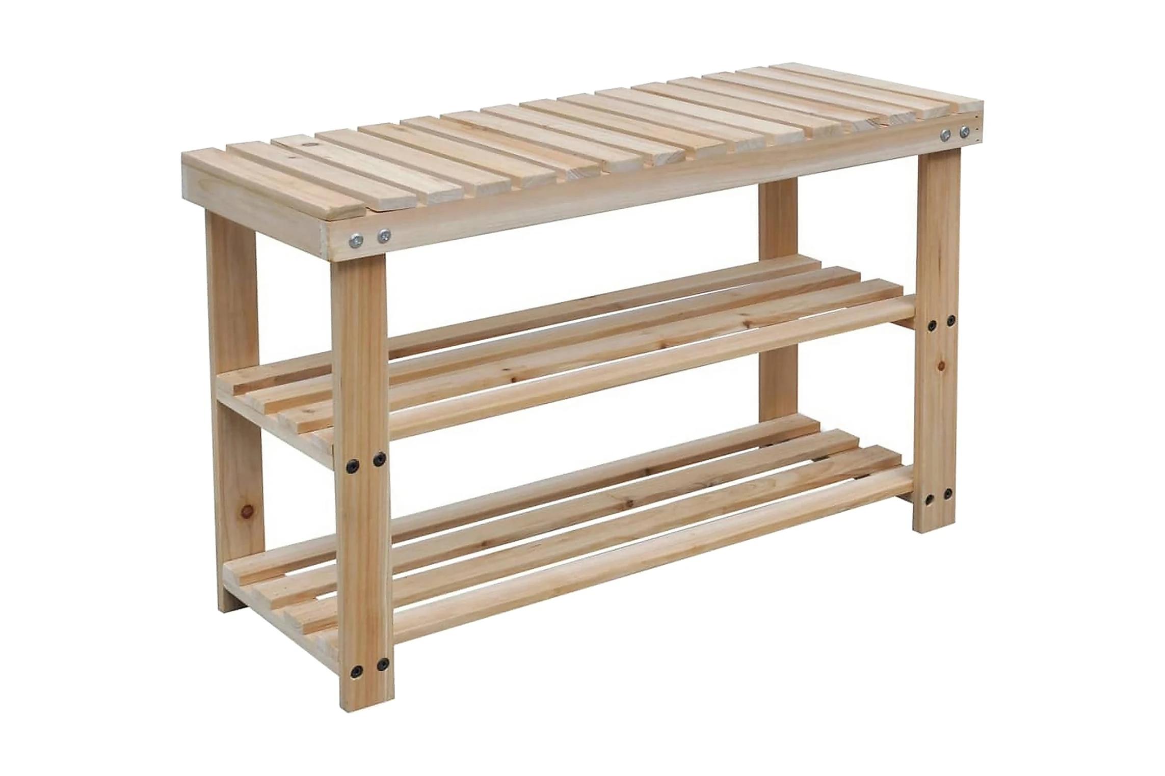 Denna 2-i-1 skohylla i trä kommer att hålla dina skor prydligt organiserade och borta från golvet. Dessutom erbjuder ovansidan dig en plats att sitta på medan du tar på eller av dig skorna. Den är därför perfekt att ställa i hallen!