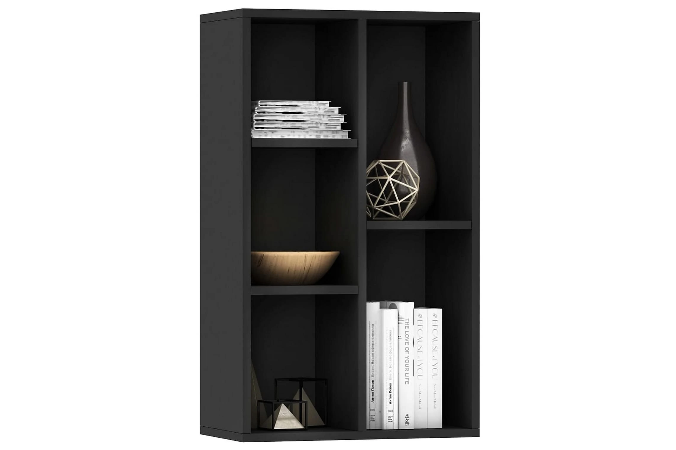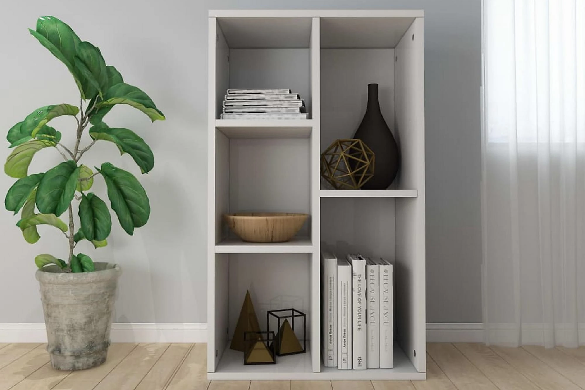 Bokhyllan är tillverkad av spånskiva vilket säkerställer stabilitet, hållbarhet och lång livslängd. Den är utformad med 5 fack och erbjuder gott om förvaringsutrymme för att hålla dina tidningar, böcker, DVD och mediaenheter välorganiserade och inom räckhåll. Den mångsidiga hyllan kan också placeras horisontellt som en skänk vilket gör den till ett perfekt val för ditt hem.
