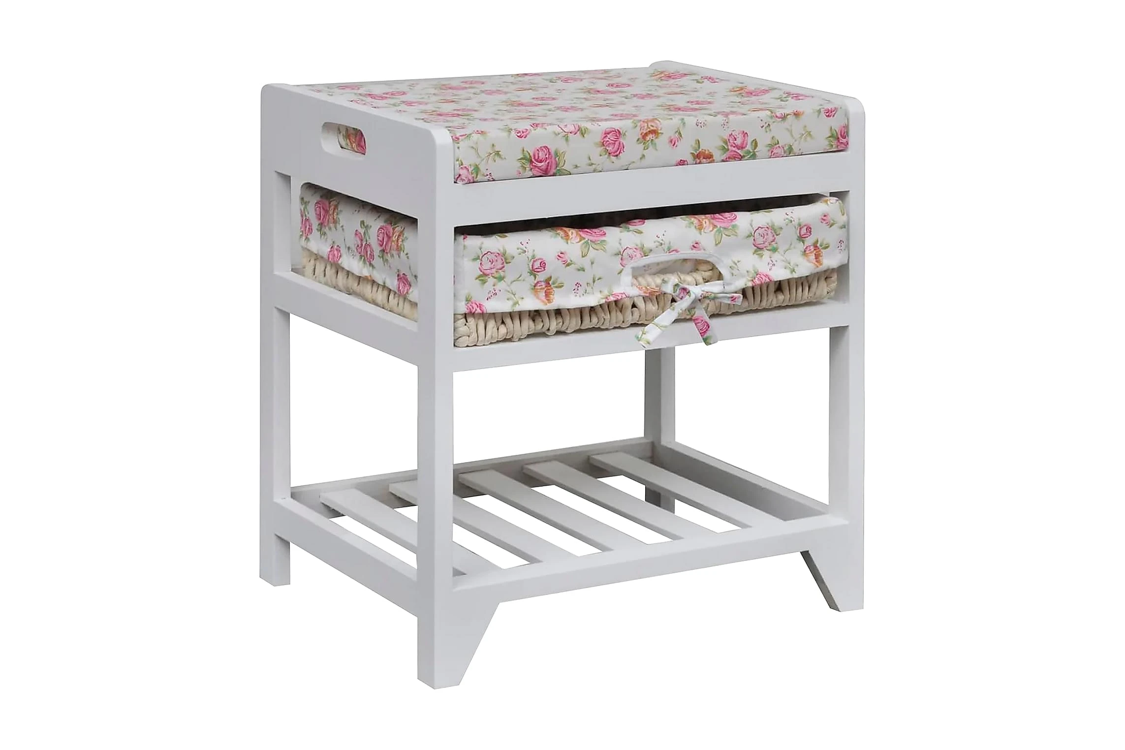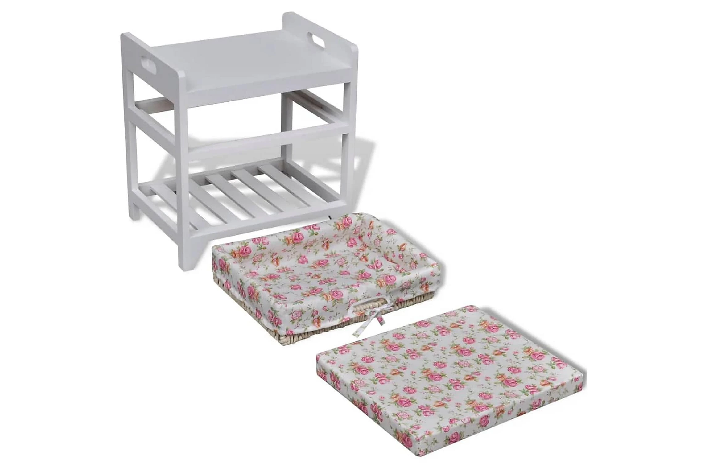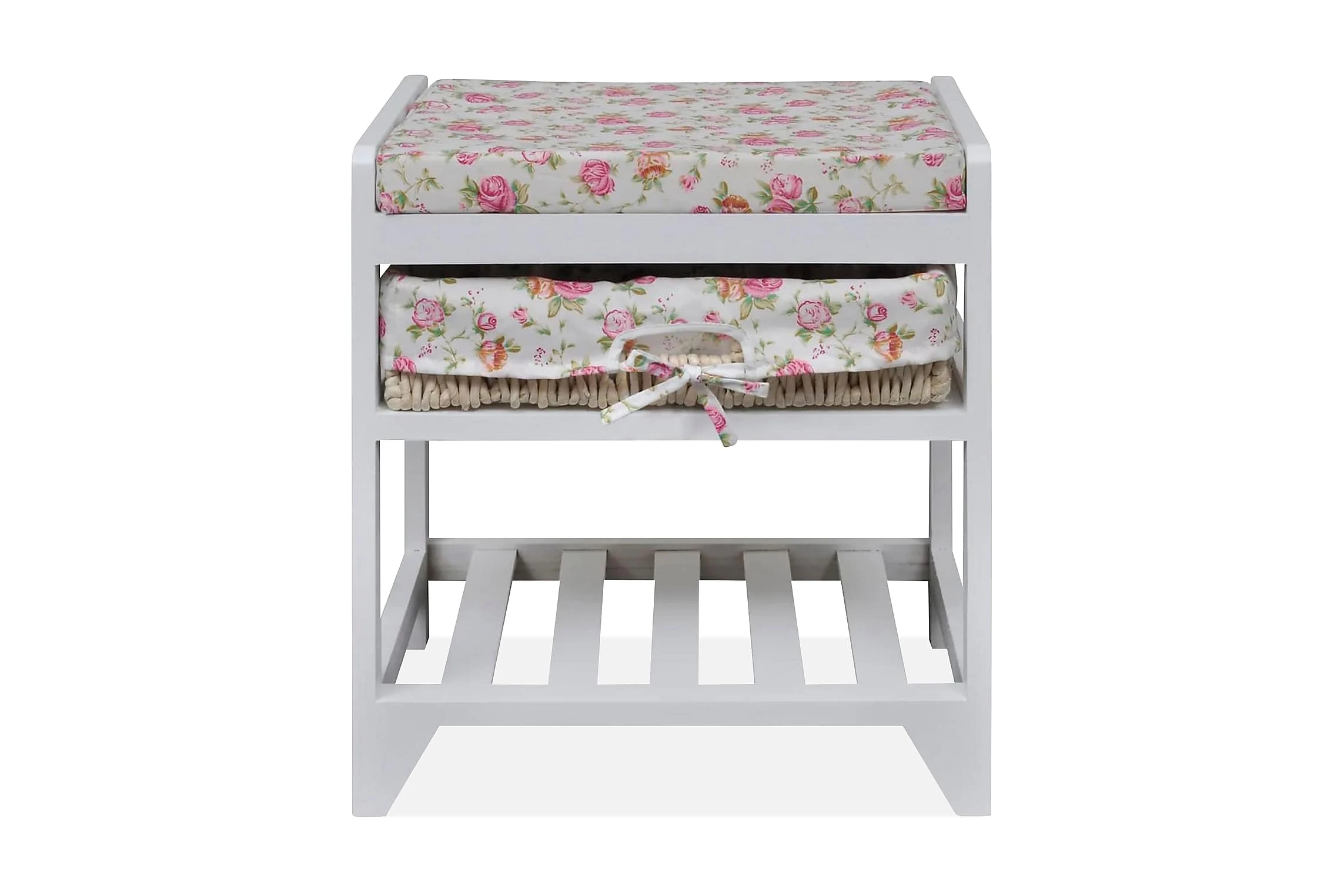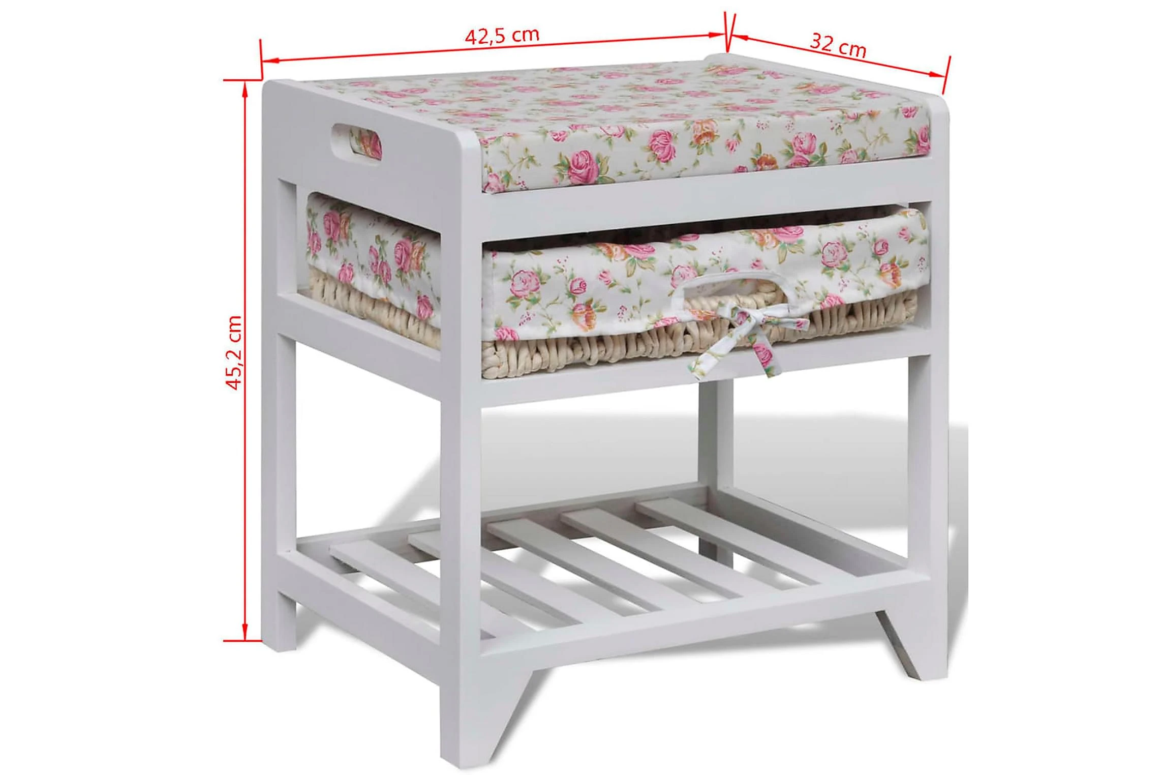 Tack vare dess kompakta storlek kan den ställas i mindre hallar. Den också ett vackert blommönster som utstrålar en romantisk känsla i din inredning. Eftersom den är tillverkad i kvalitativ paulownia är bänken väldigt hållbar.