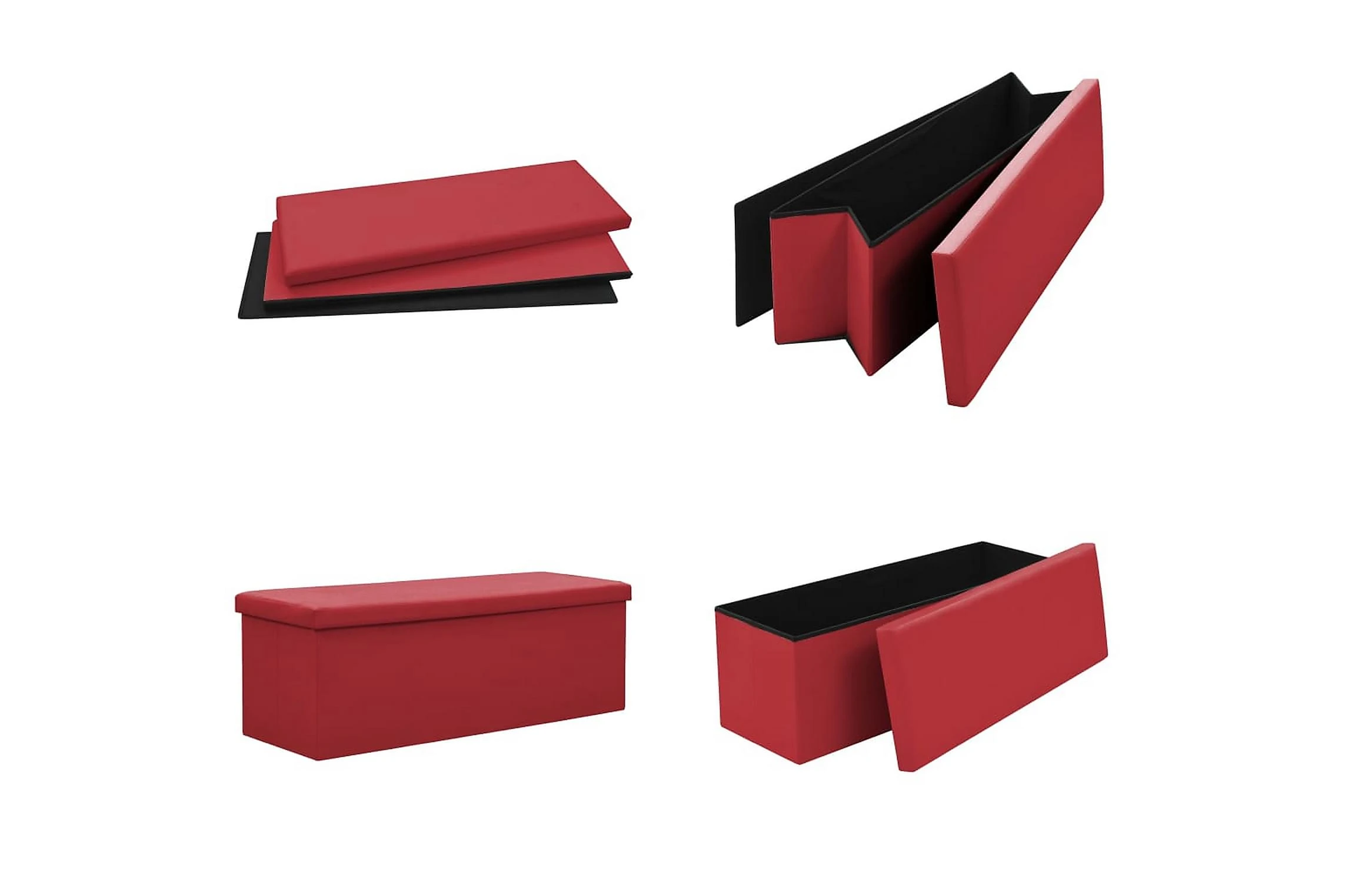 Förvaringsbänken är tillverkad i MDF och är klädd i konstlinne som är hållbart och stadigt. Förvaringsbänken är klädd med skum och är bekväm att sitta på. Den har gott om förvaringsplats för att hålla olika föremål ur sikt men inom räckhåll. När den inte används kan den fällas ihop för att spara plats.