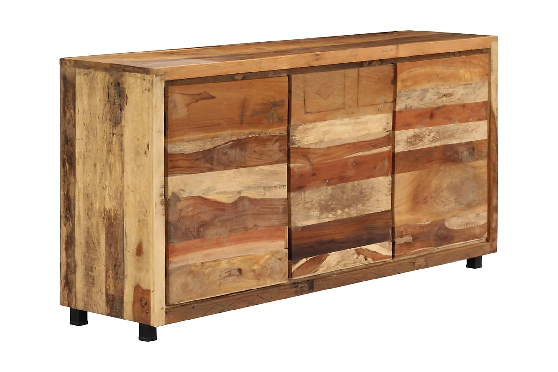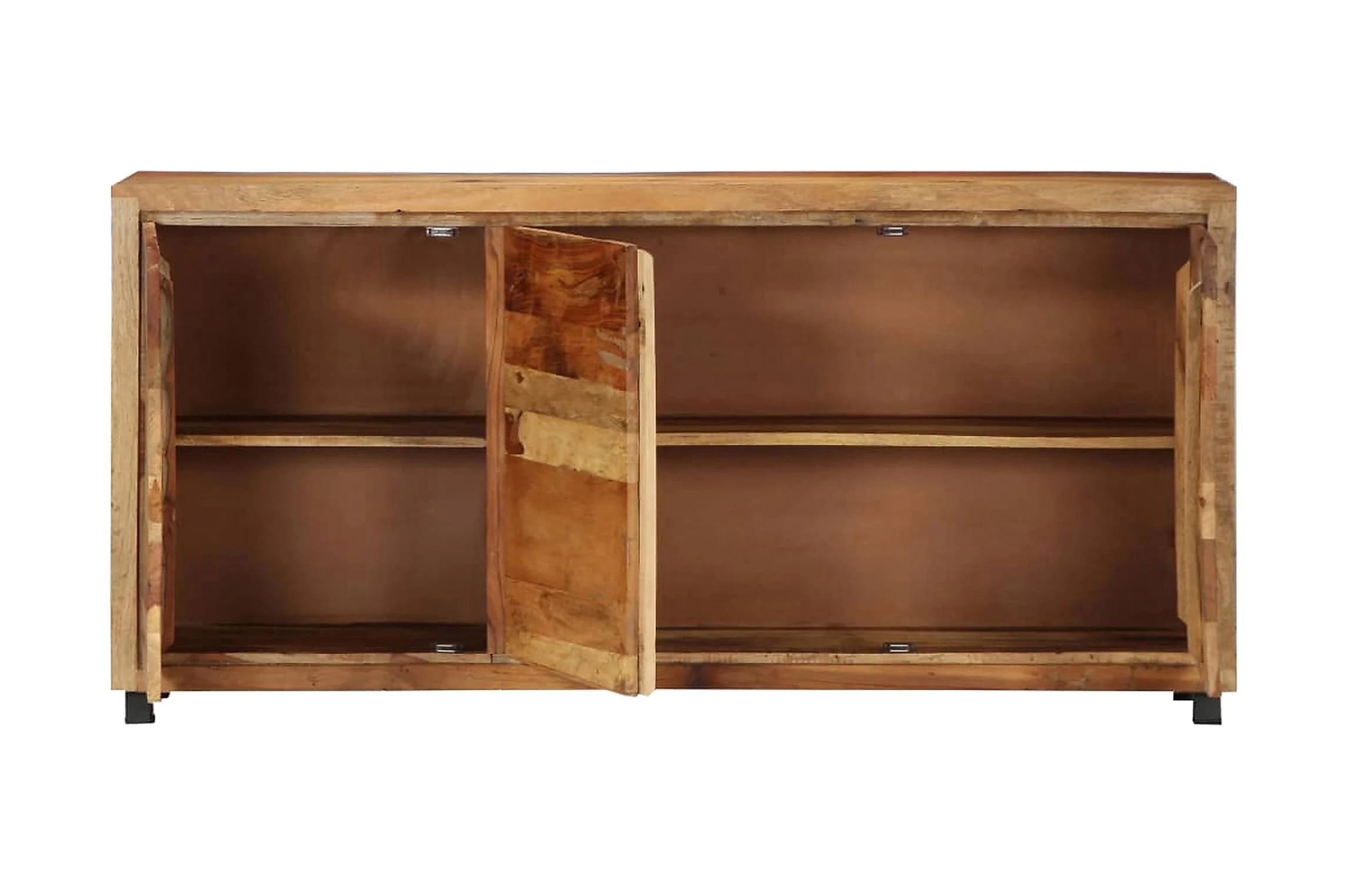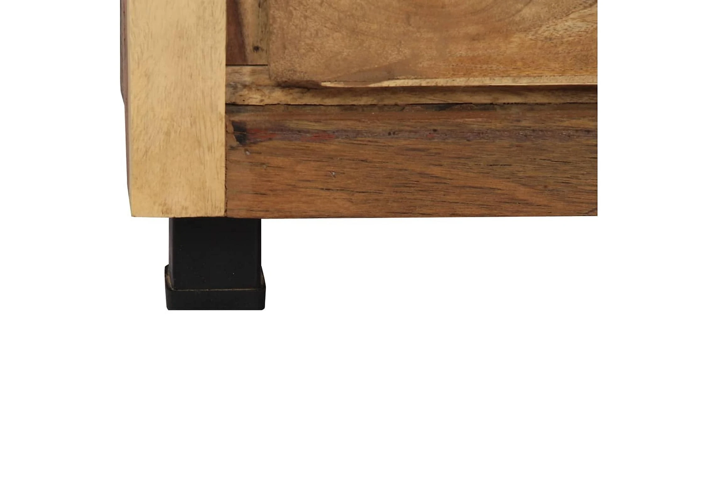 Detta skåp är tillverkat i massivt återvunnet trä som gör det högst stabilt och hållbart. Återvunnet trä har egenskaperna från olika träslag såsom teak, mangoträ, akacia o.s.v., som redan är åldrat, vittrat och torkat, så att det varken krymper eller böjs. Varje steg i processen utförs med största omsorg, från polering till lackering. Den förstärkta järnramen ger skåpet extra stabilitet. Det har dessutom gott om plats för att förvara saker och hålla dem organiserade. Konsolskåpet är lätt att montera.