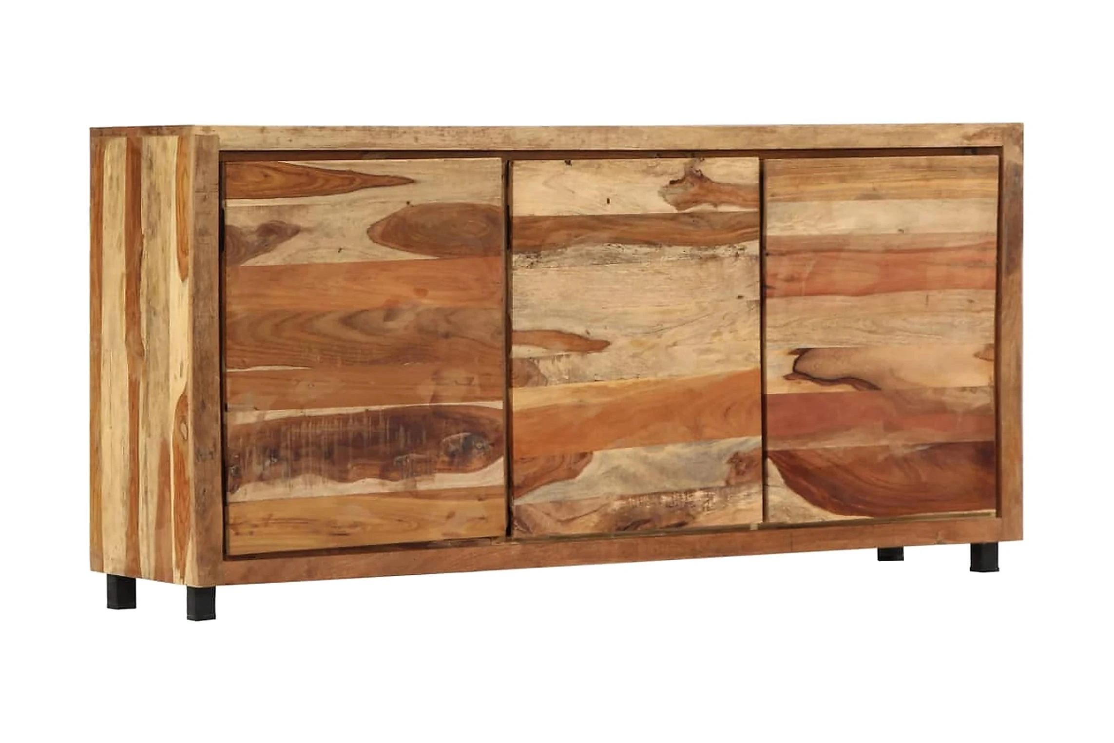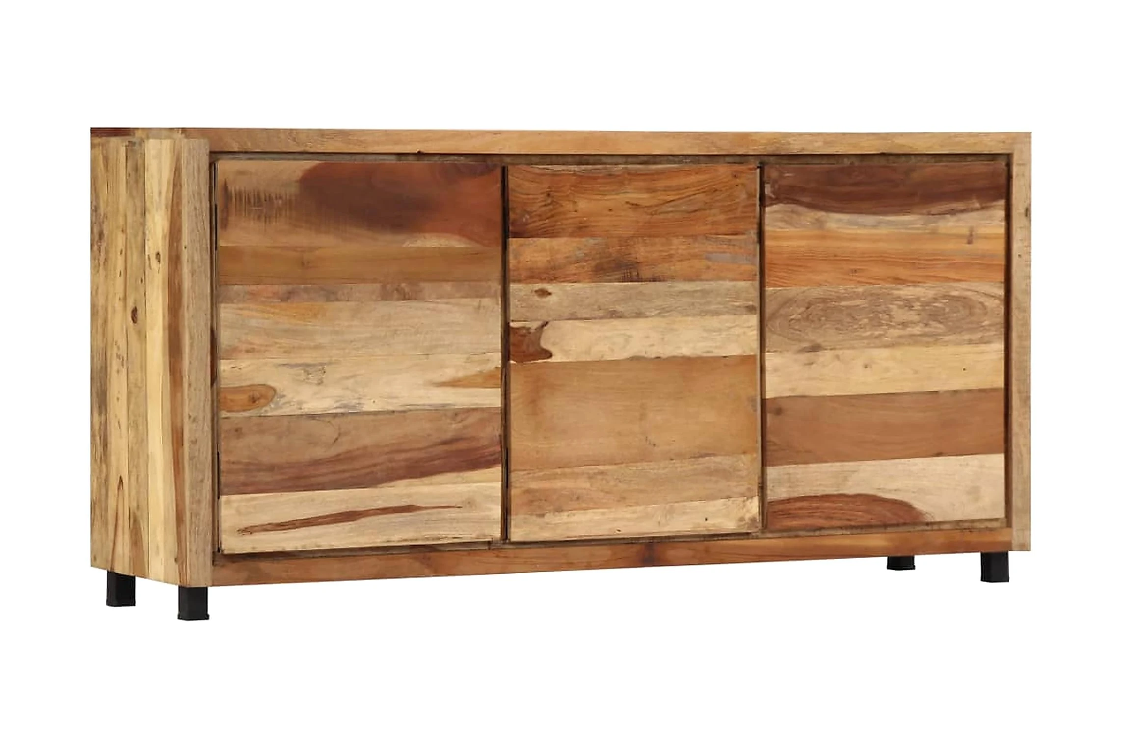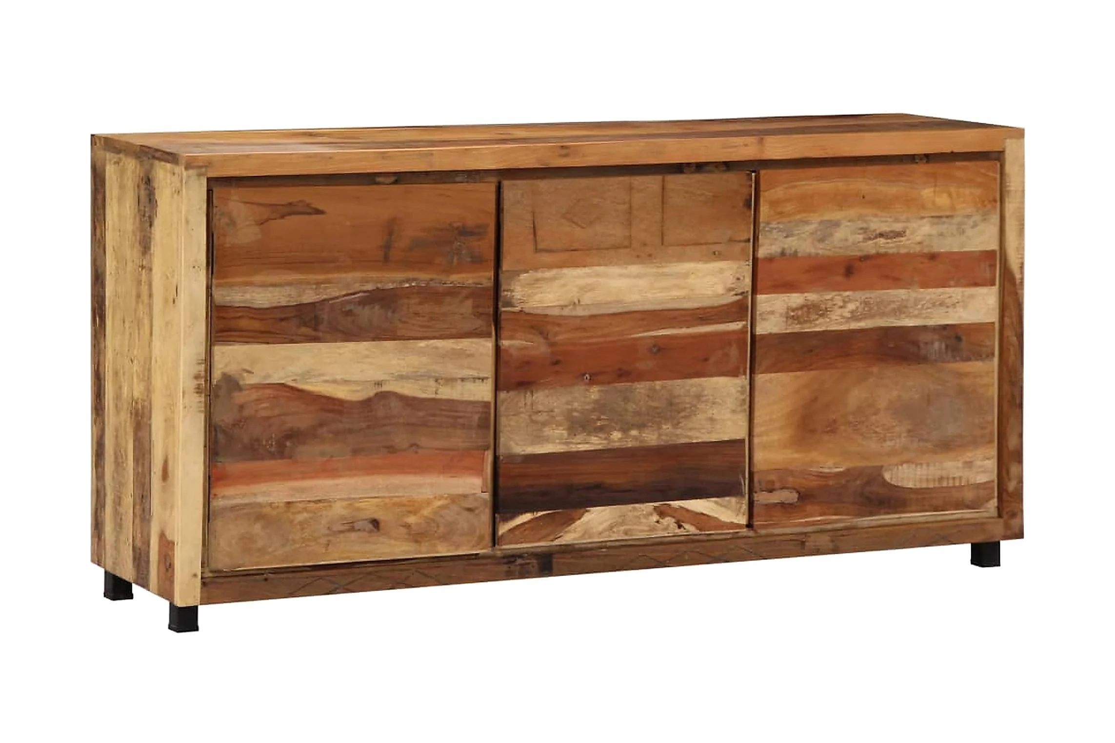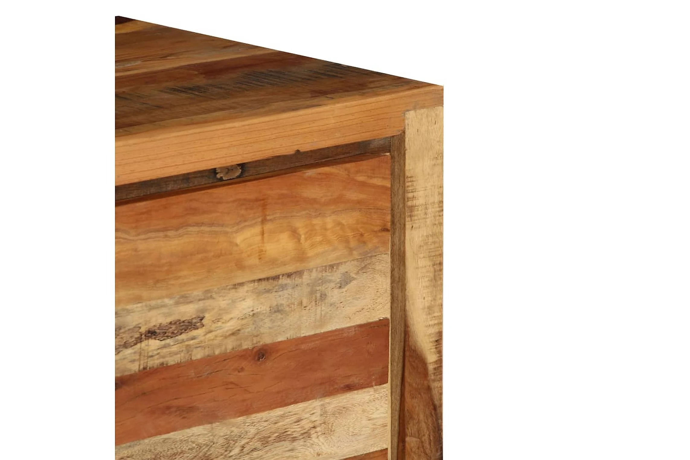 Detta skåp är tillverkat i massivt återvunnet trä som gör det högst stabilt och hållbart. Återvunnet trä har egenskaperna från olika träslag såsom teak, mangoträ, akacia o.s.v., som redan är åldrat, vittrat och torkat, så att det varken krymper eller böjs. Varje steg i processen utförs med största omsorg, från polering till lackering. Den förstärkta järnramen ger skåpet extra stabilitet. Det har dessutom gott om plats för att förvara saker och hålla dem organiserade. Konsolskåpet är lätt att montera.