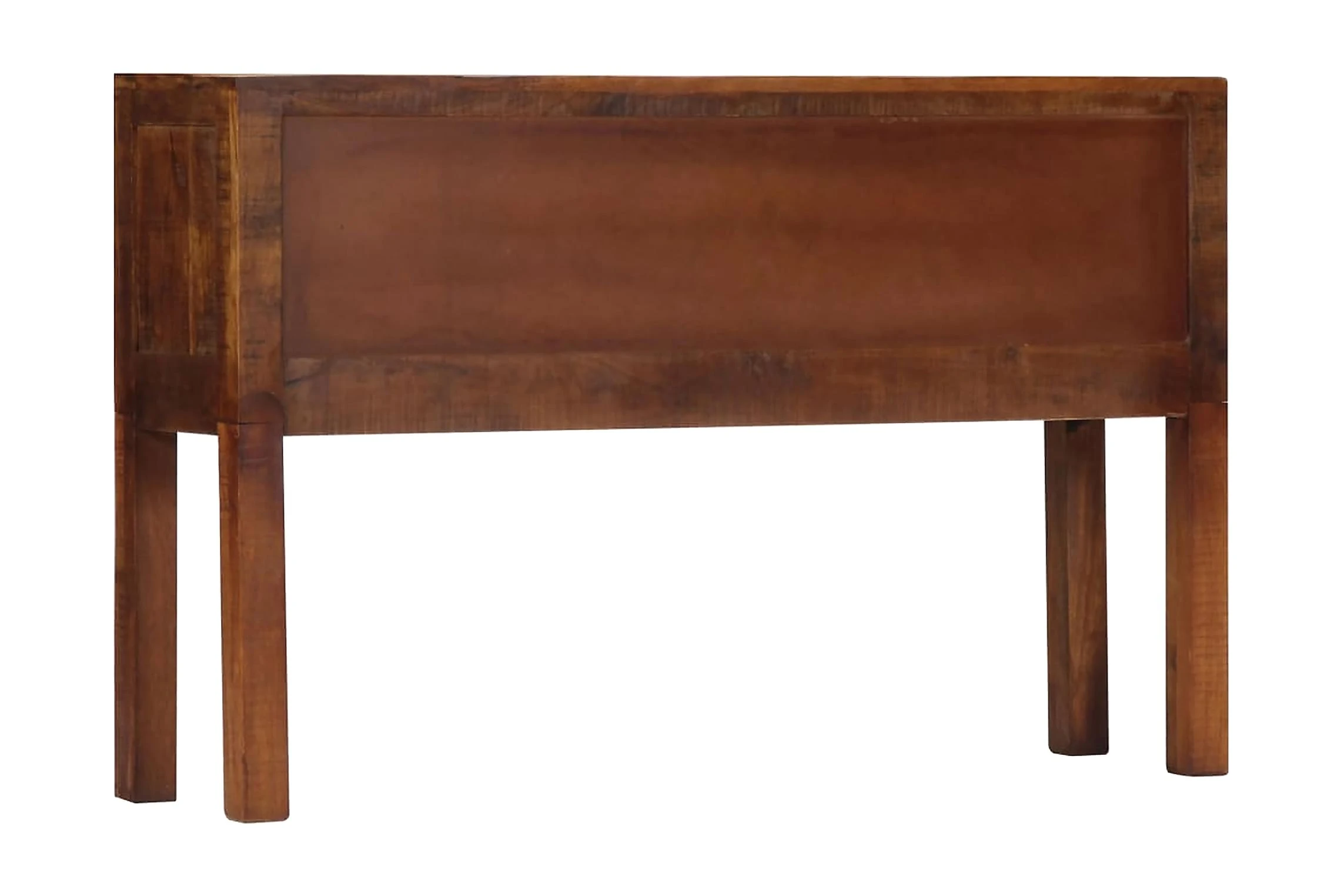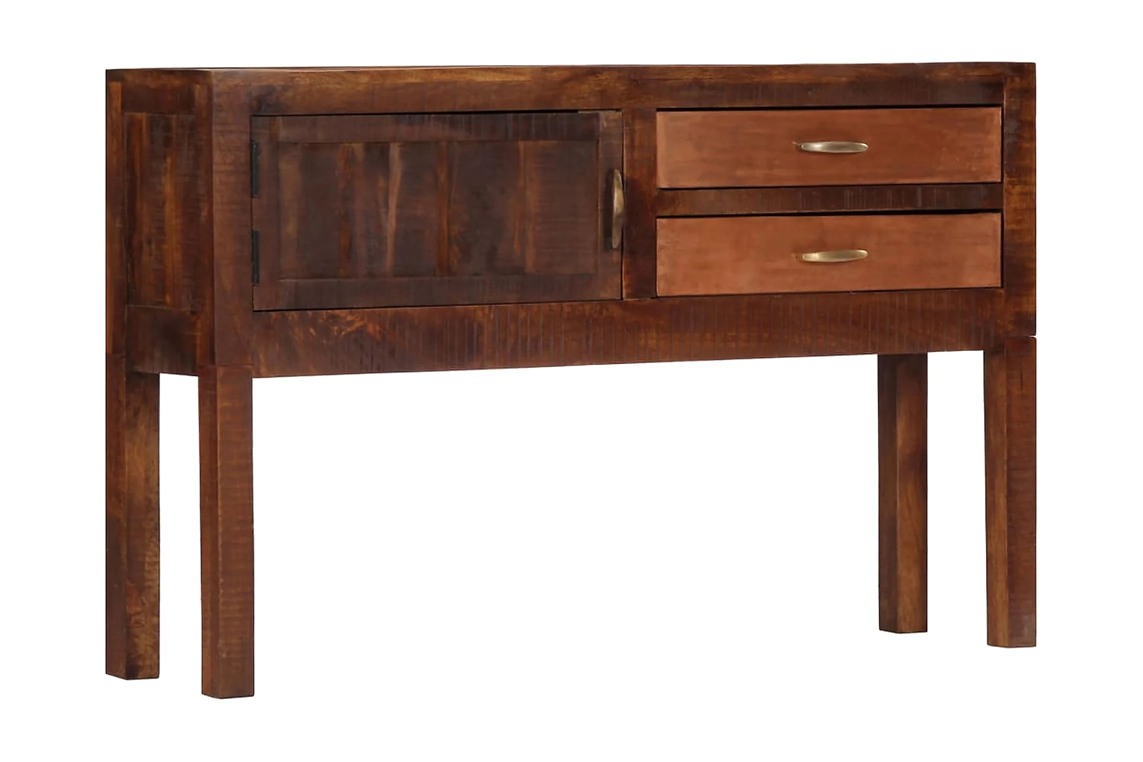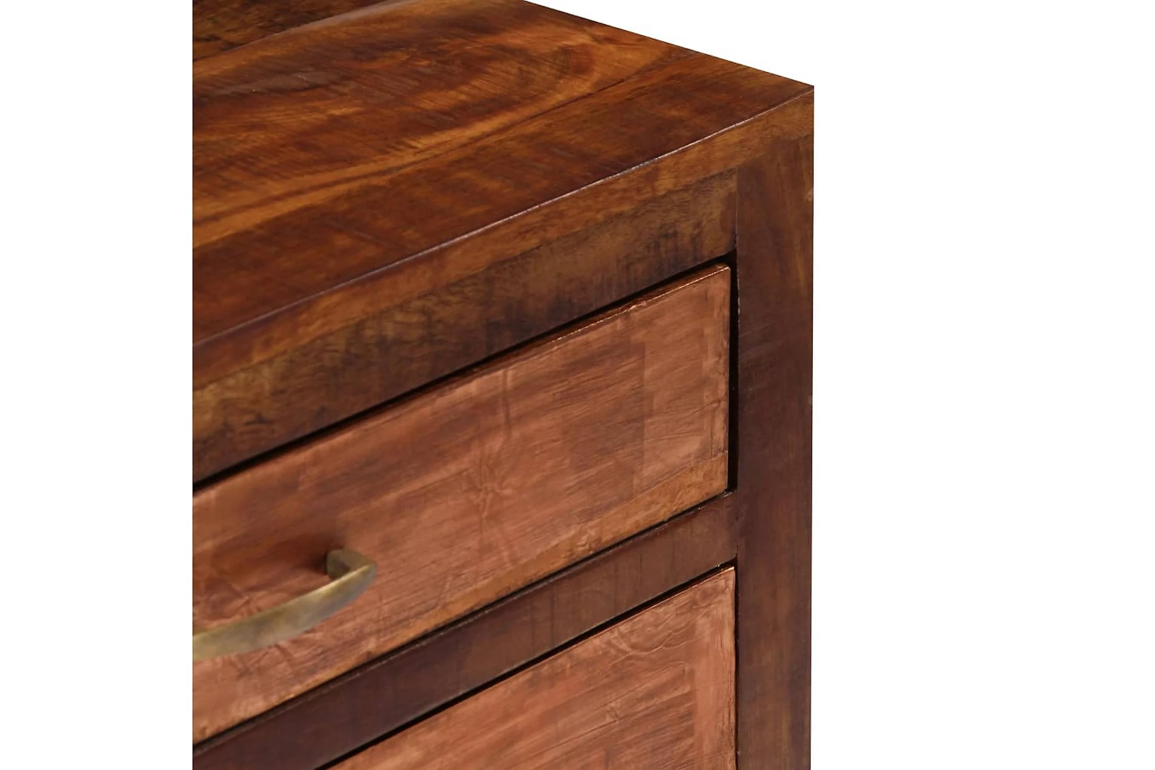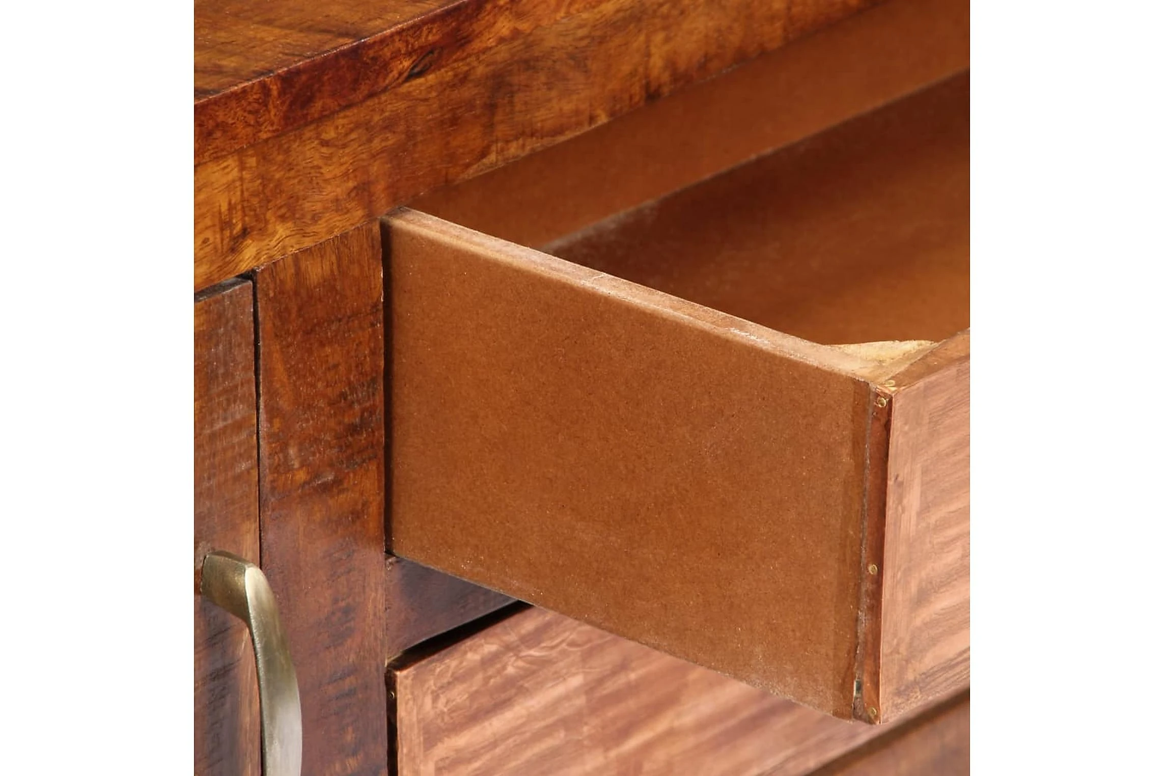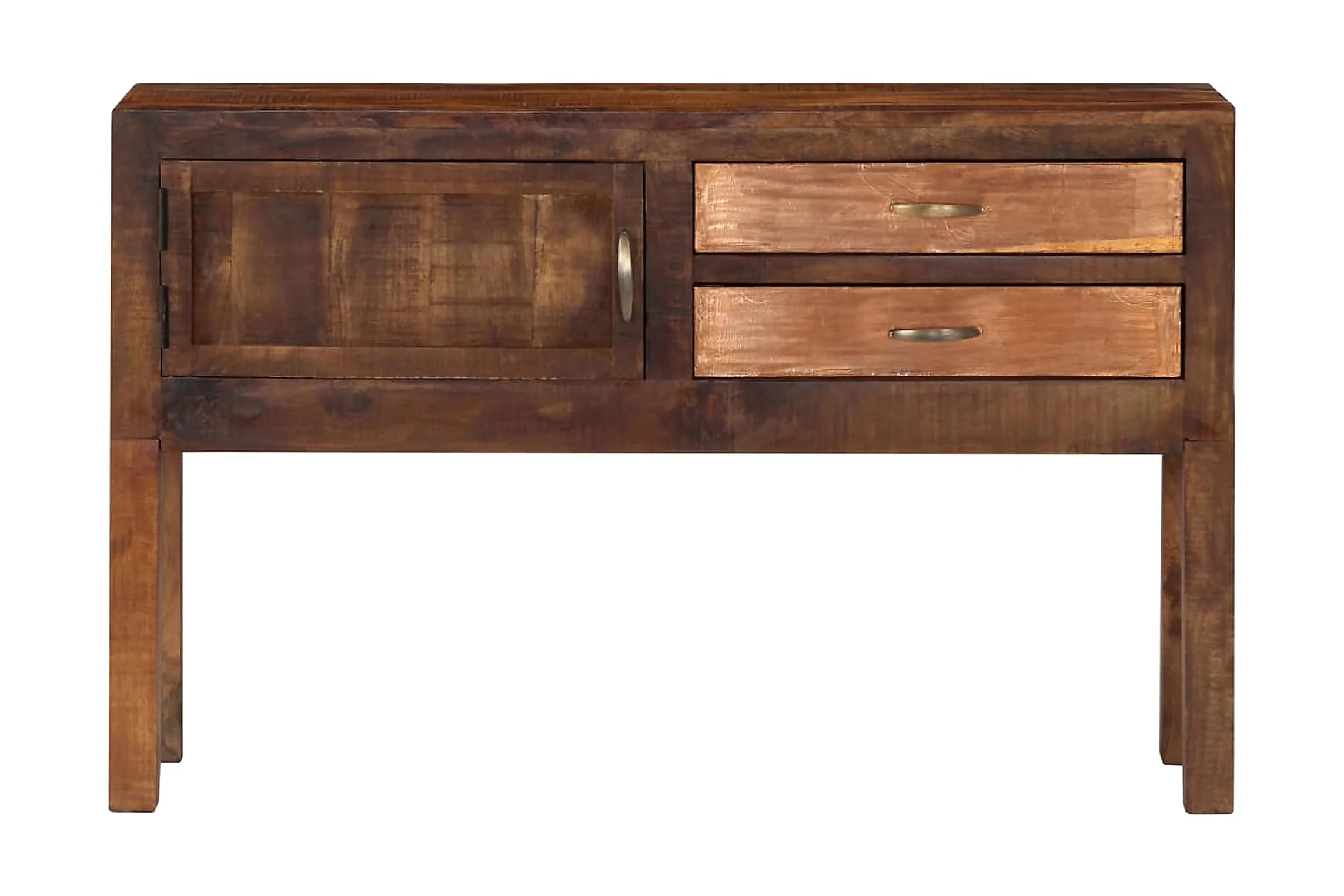 Detta vintageskåp är tillverkat av massivt mangoträ, ett lövträ med täta ådringar. Grovt mangoträ har inte bara styrkan att bära vikten, utan behåller även sin hållbarhet under många år. Därför är detta skåp ytterst stabilt, hållbart och iögonfallande. Det förstklassiga hantverket och de eleganta träådringarna gör varje möbel distinkt och något annorlunda än nästa. Detta träskåp har 2 lådor och 1 skåp med dörr, som har gott om förvaringsutrymme för dina kläder, böcker och andra saker.