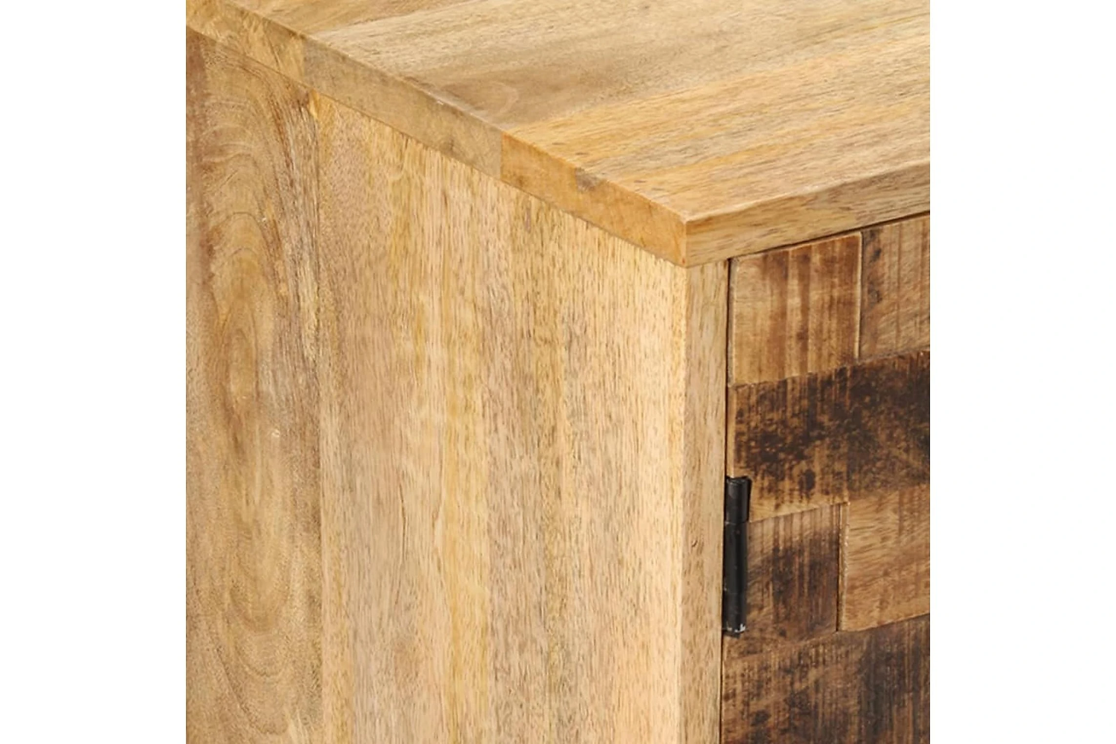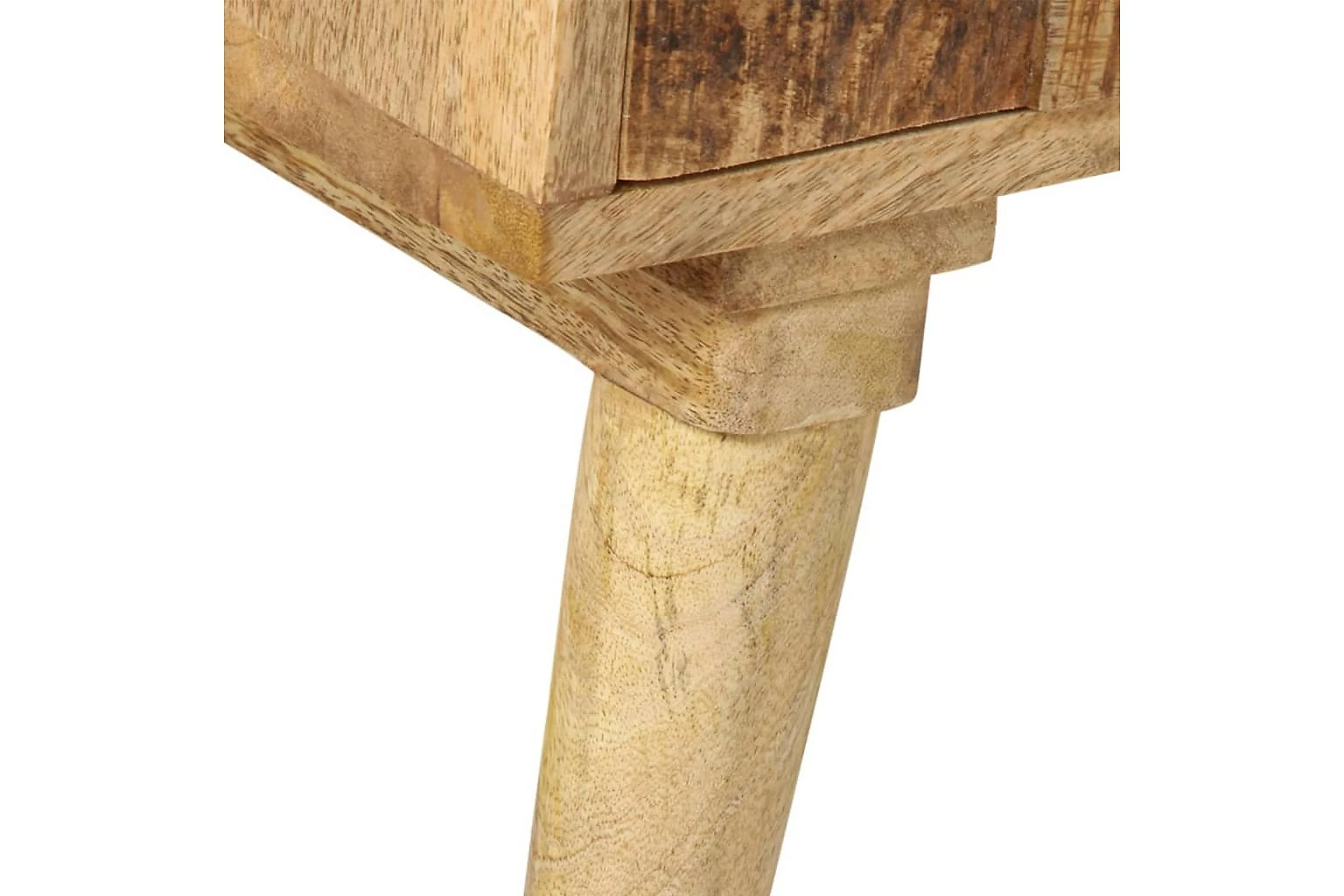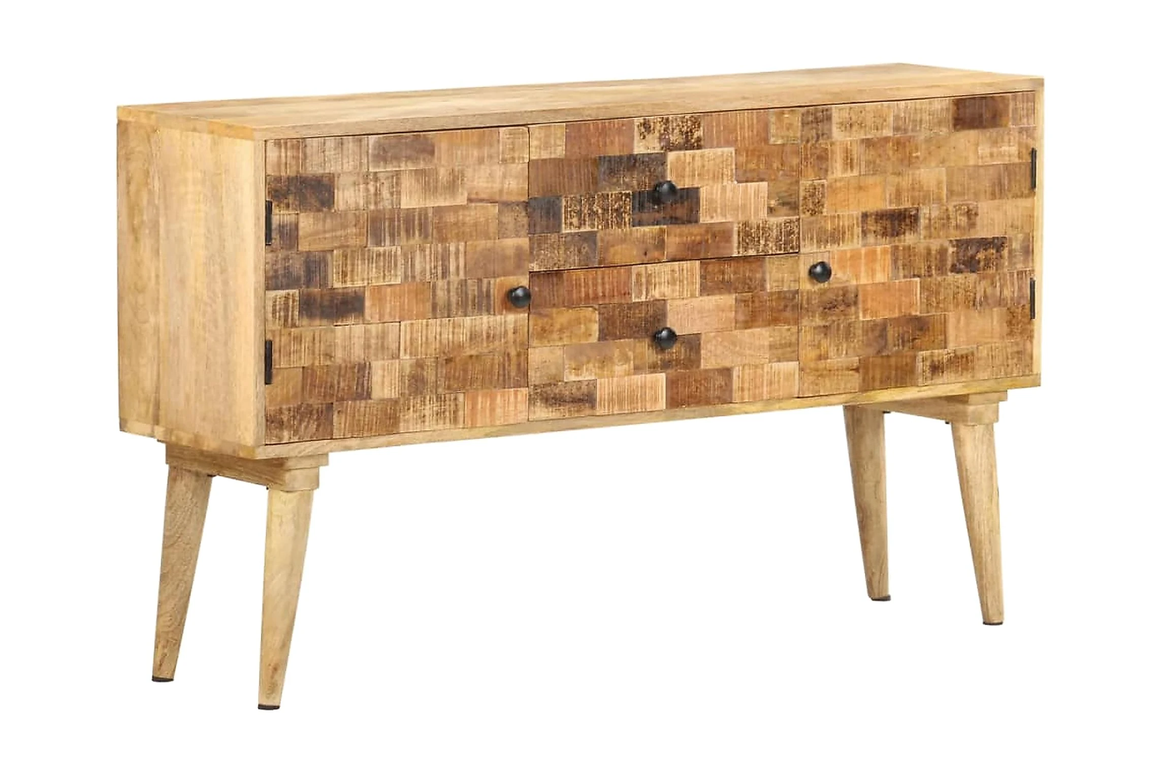 Skänken är tillverkad i massivt mangoträ, ett tropiskt lövträ som är starkt nog att bära vikten. Det står även emot tidens tand, vilket gör det stabilt och hållbart. Den tåliga ovansidan är perfekt att ställa dekorativa föremål, såsom vaser och fotoramar på. Skänken har även 2 dörrar och 2 lådor med gott om förvaringsplats för att hålla viktiga saker i ordning och inom räckhåll.
