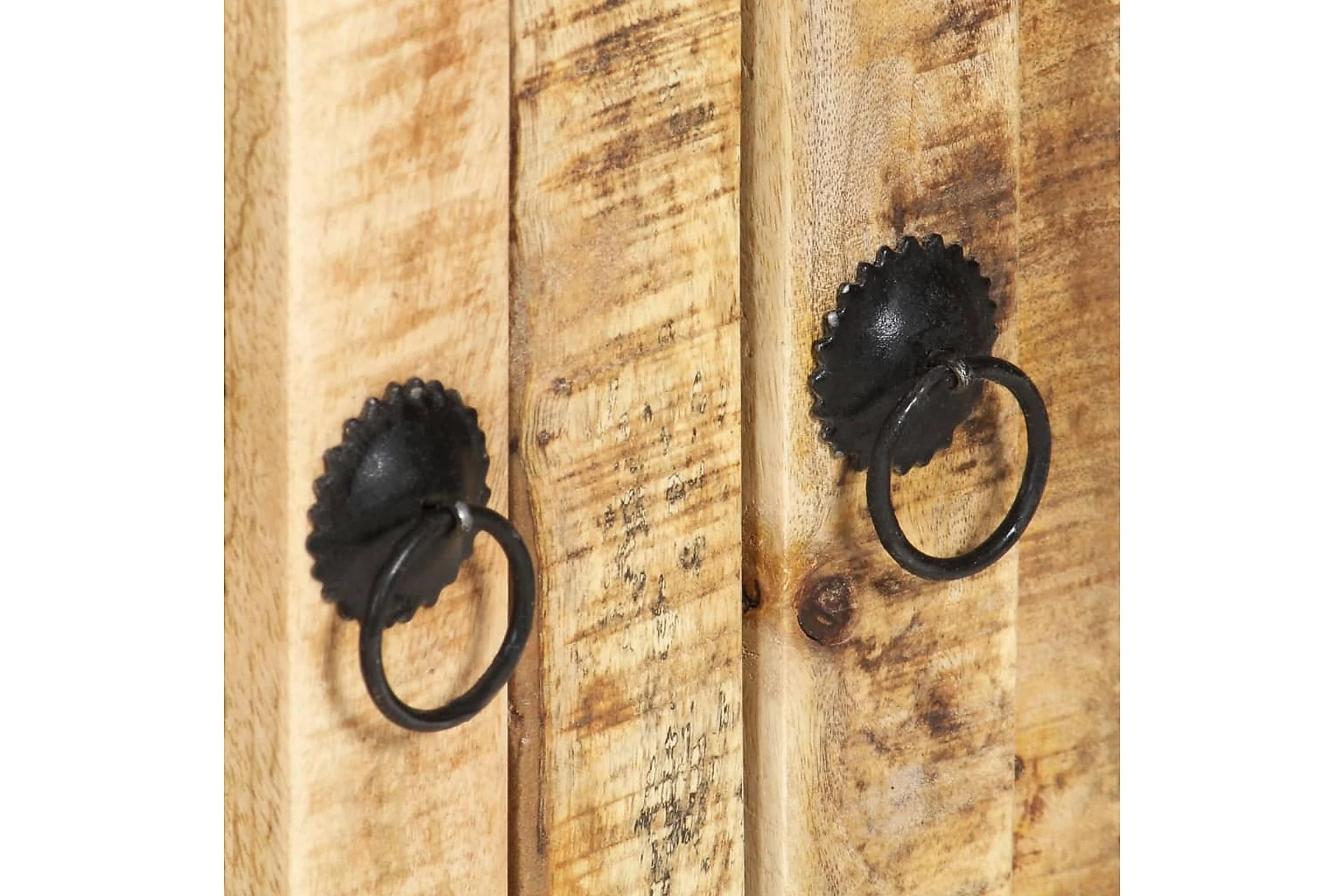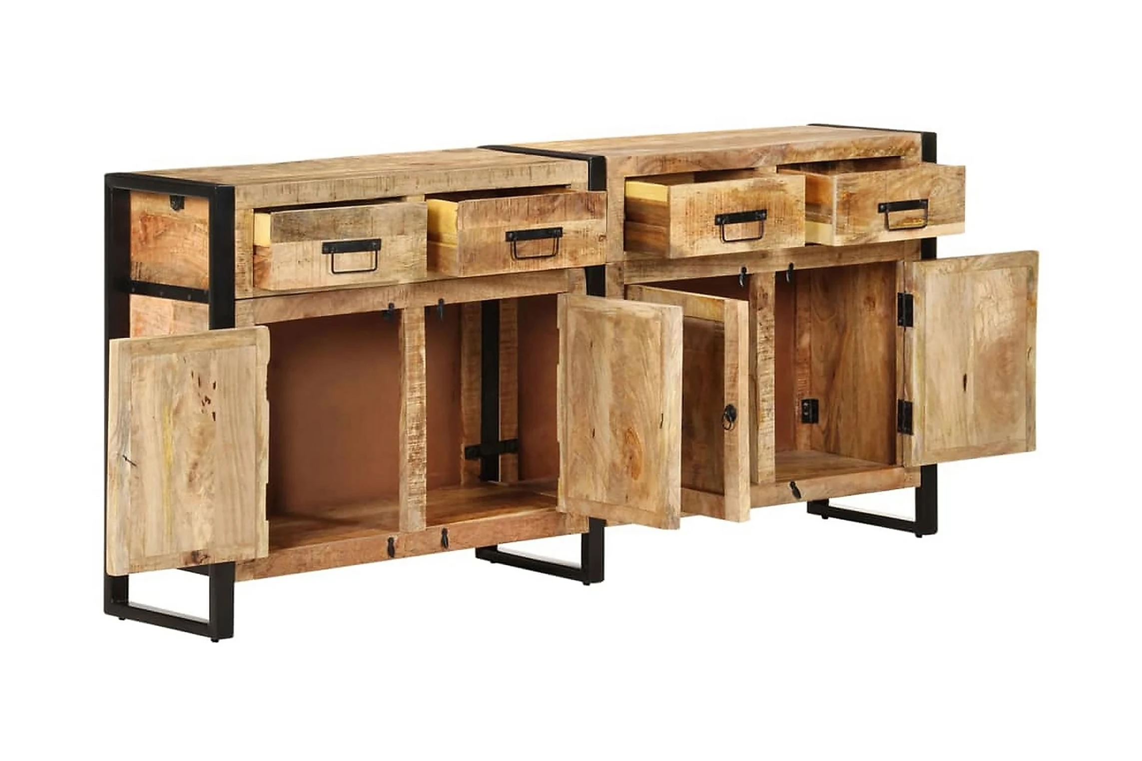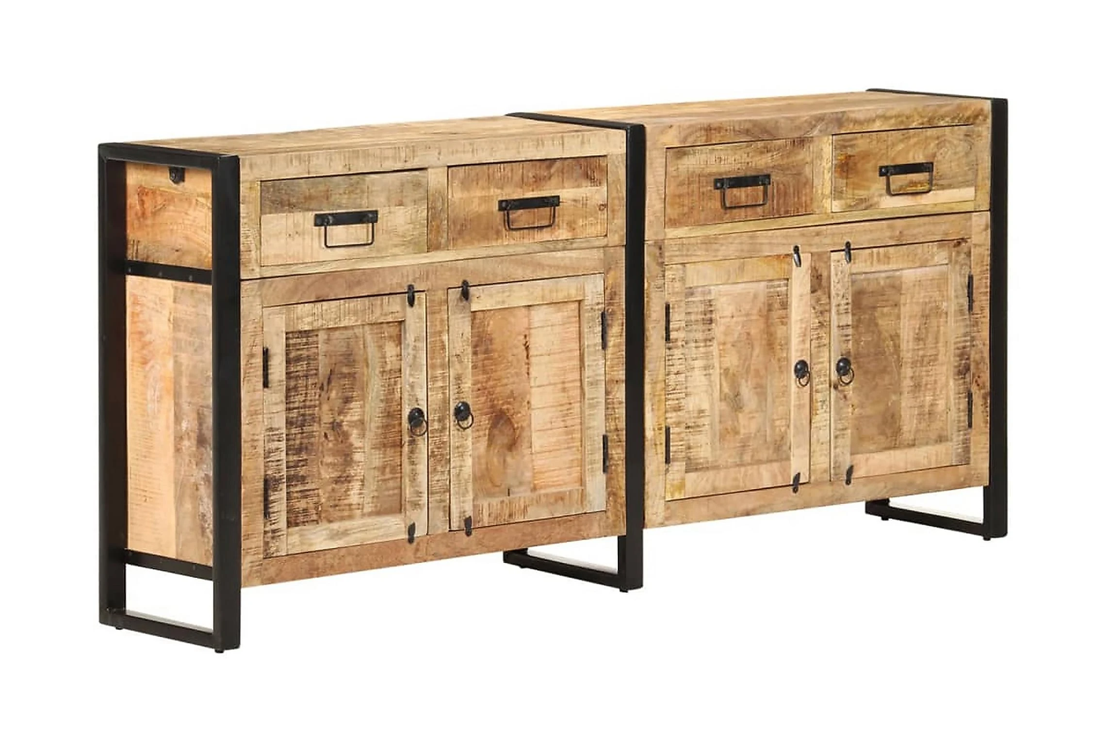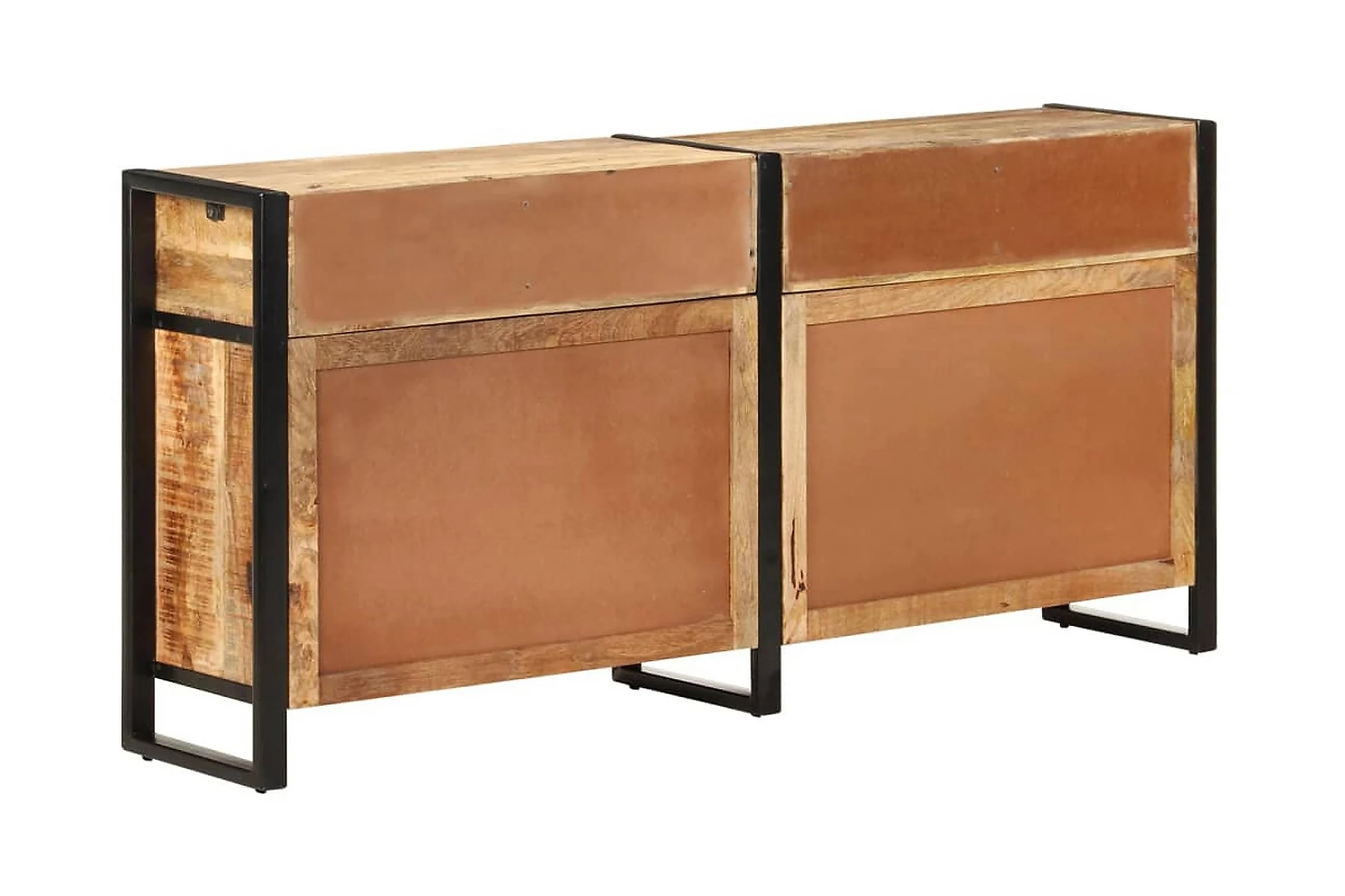 Denna skänk är tillverkad i massivt mangoträ, ett tropiskt lövträ. Den är stark nog att bära vikten och är även mycket hållbar. Dessutom gör det fina hantverket och de vackra träådringarna varje möbel unik och något olik nästa. Den pulverlackerade stålramen bidrar till den stabila och stadiga strukturen. Skänken har 2 skåp med dörrar och 4 lådor, vilket ger den gott om förvaringsplats för dina föremål.