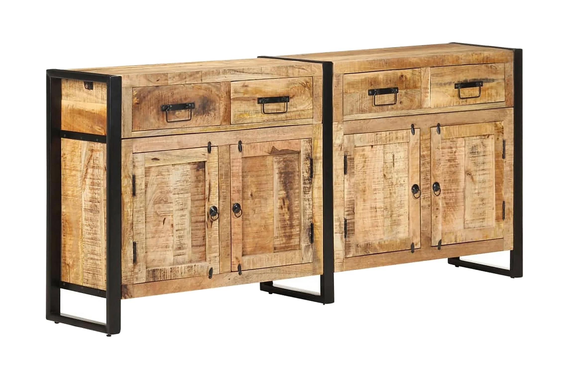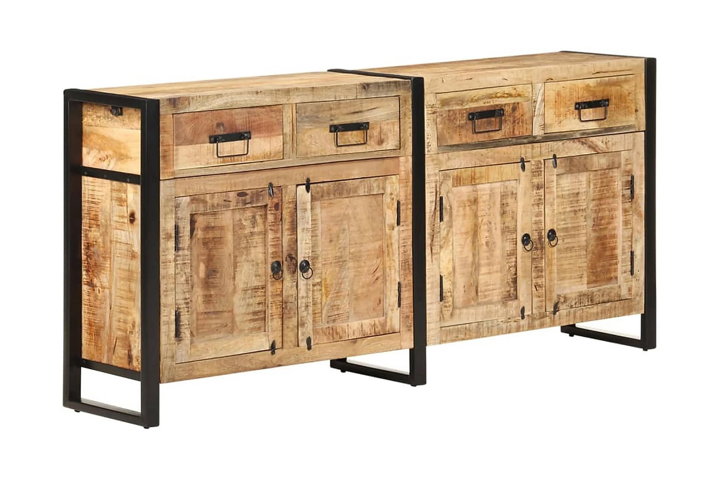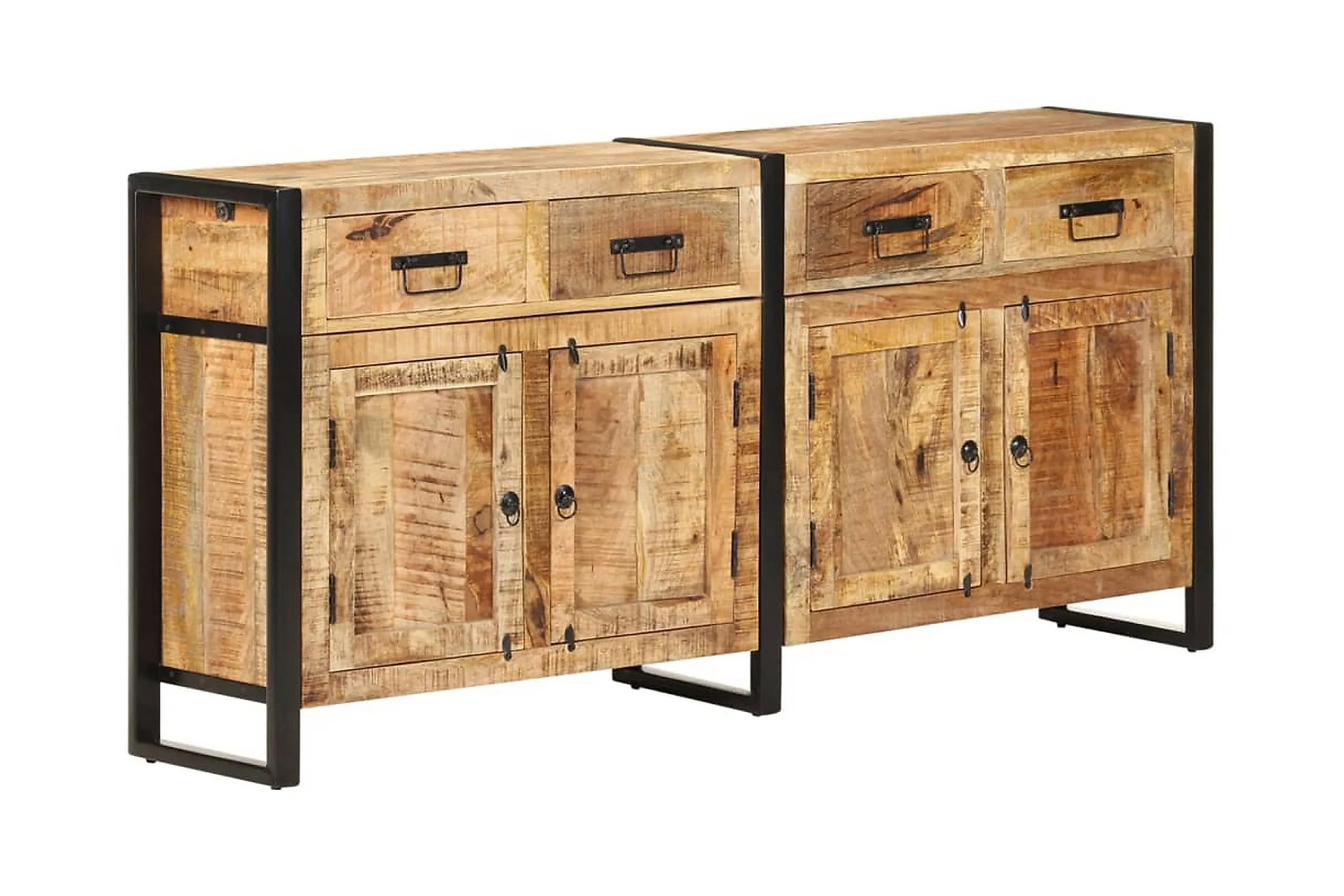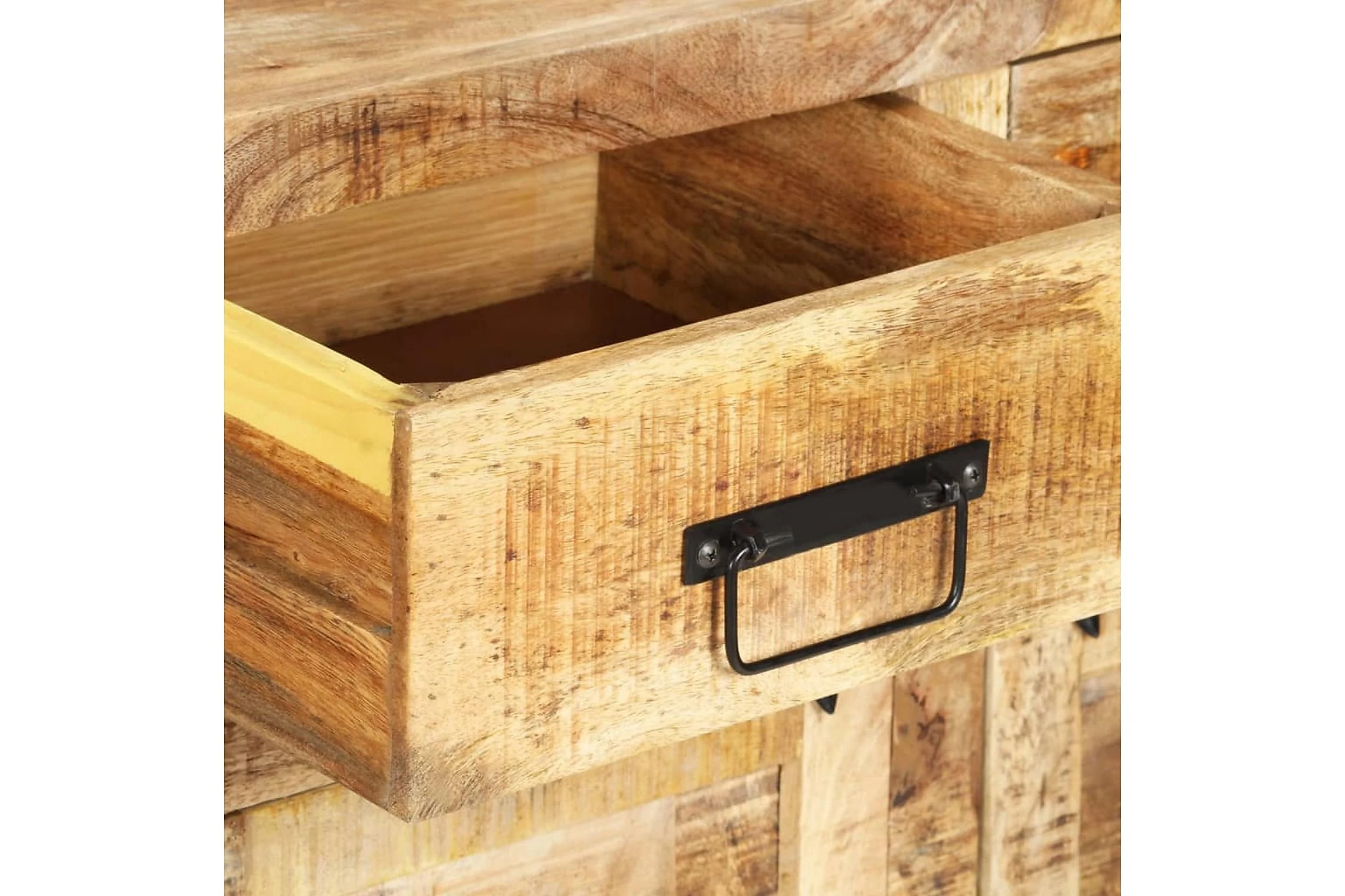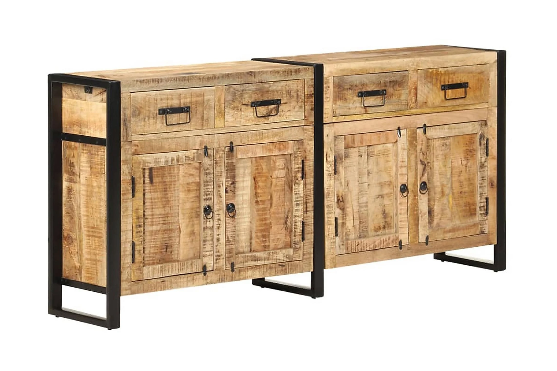 Denna skänk är tillverkad i massivt mangoträ, ett tropiskt lövträ. Den är stark nog att bära vikten och är även mycket hållbar. Dessutom gör det fina hantverket och de vackra träådringarna varje möbel unik och något olik nästa. Den pulverlackerade stålramen bidrar till den stabila och stadiga strukturen. Skänken har 2 skåp med dörrar och 4 lådor, vilket ger den gott om förvaringsplats för dina föremål.