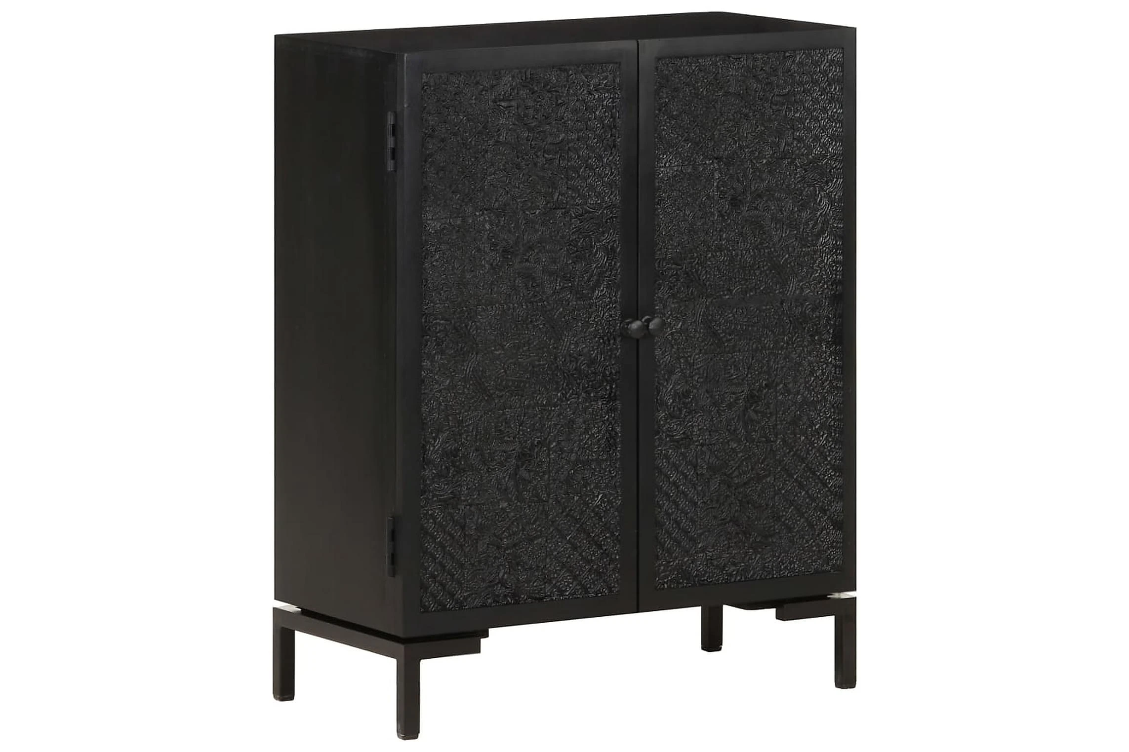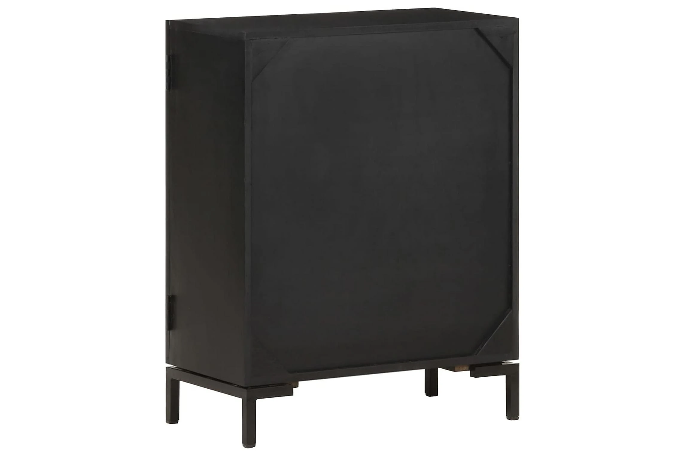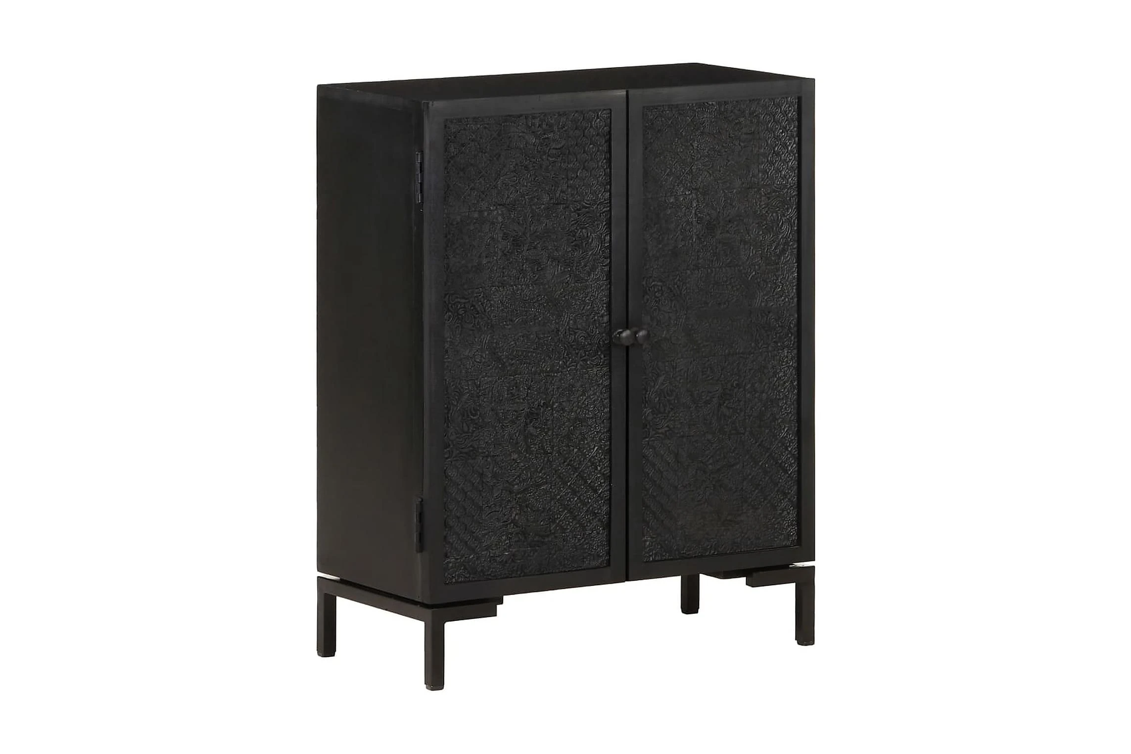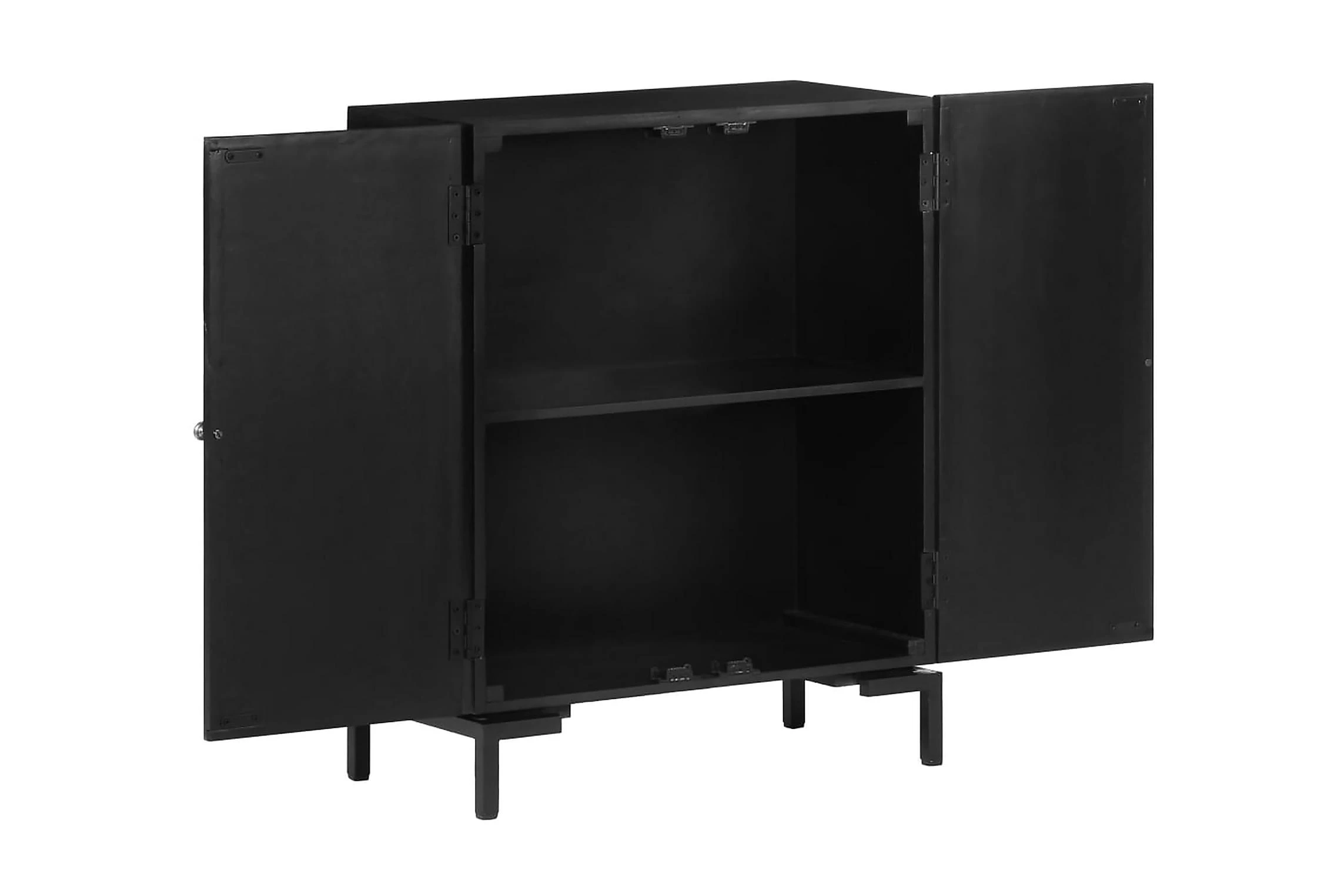 Skänken är tillverkad av massivt mangoträ, ett tropiskt lövträ som är starkt nog att bära vikten. Det är även mycket tåligt, vilket gör den stabil och hållbar. Den pulverlackerade järnramen gör den stabil. Skåpet har även 2 dörrar med gott om förvaringsutrymme. Dessutom kan den stadiga träytan användas för att visa upp prydnadssaker som fotoramar, krukväxter, vaser mm.