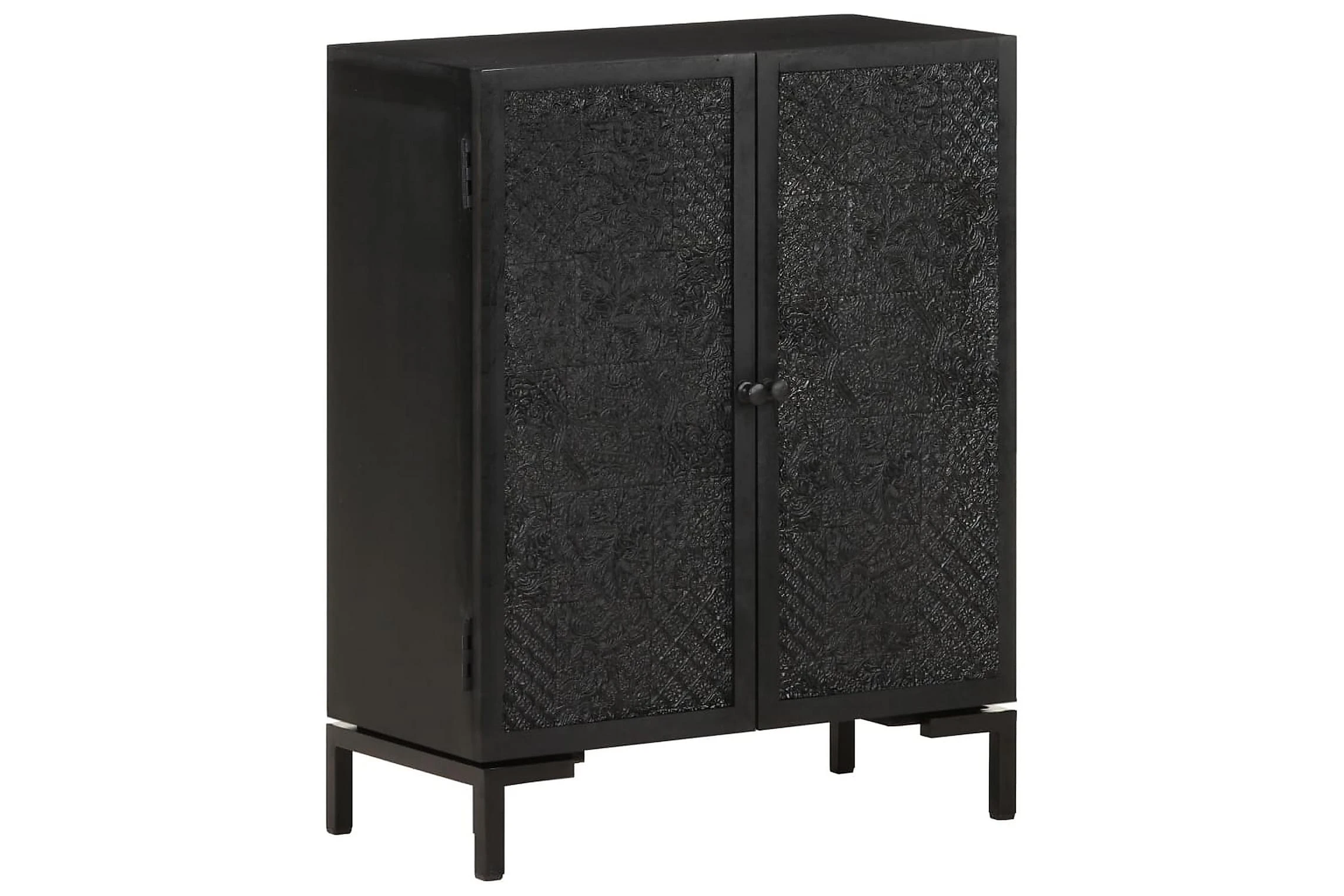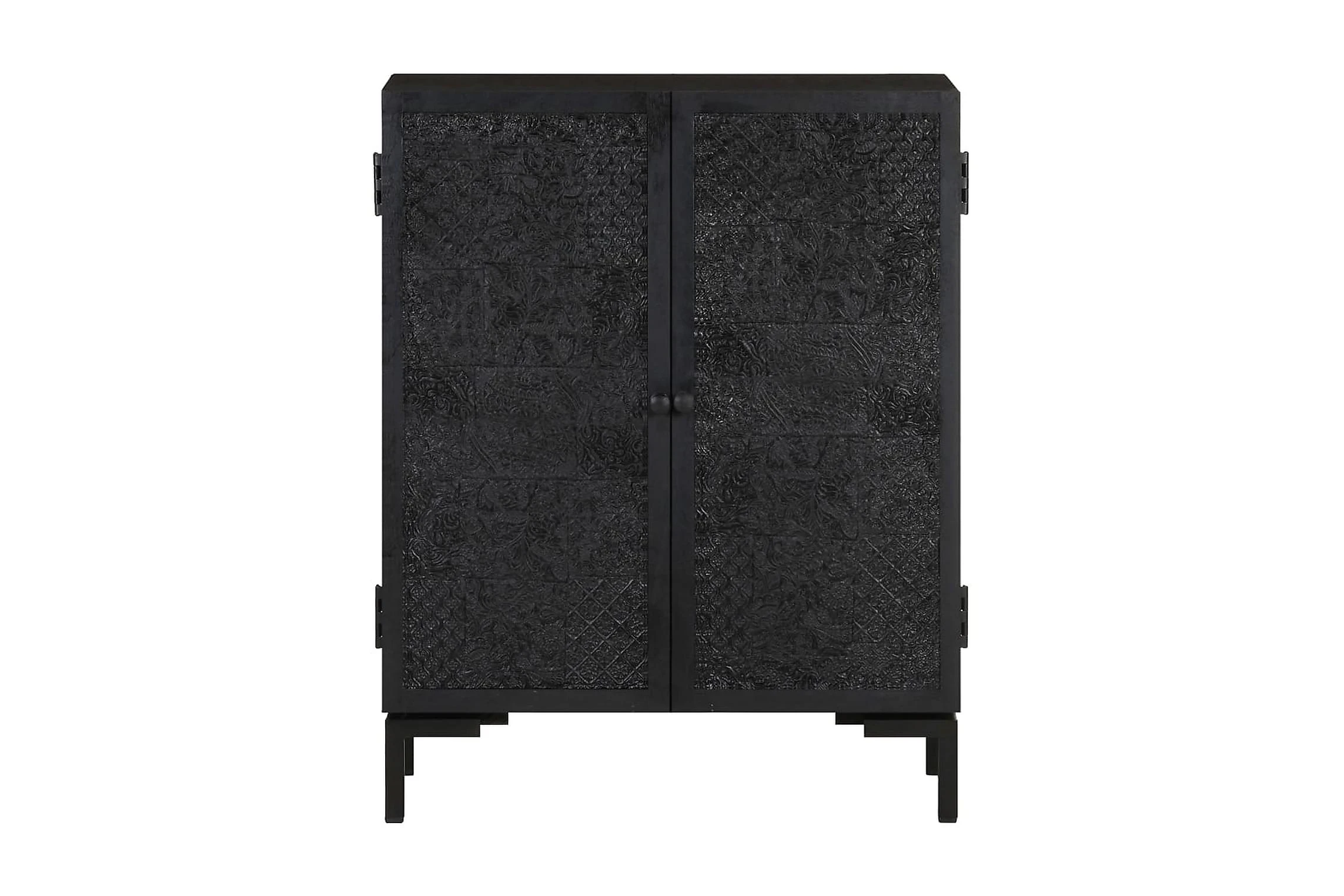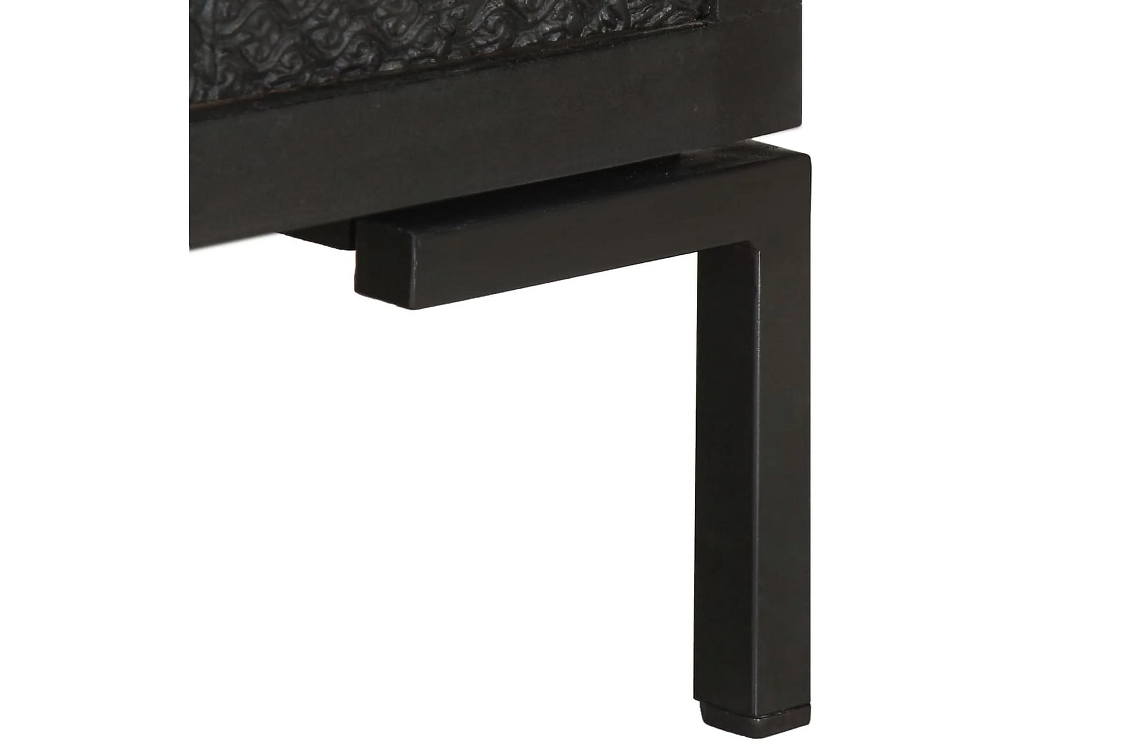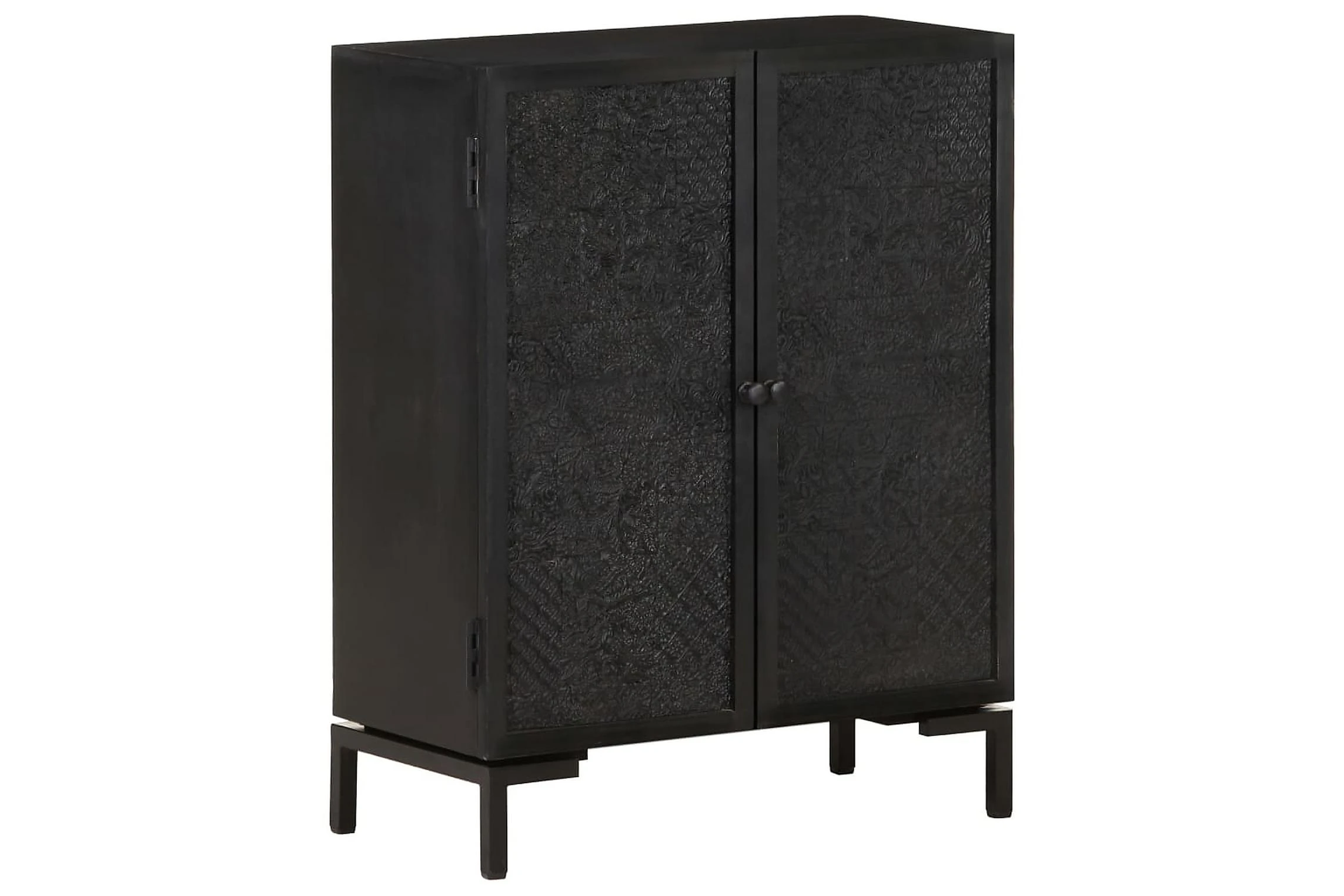 Skänken är tillverkad av massivt mangoträ, ett tropiskt lövträ som är starkt nog att bära vikten. Det är även mycket tåligt, vilket gör den stabil och hållbar. Den pulverlackerade järnramen gör den stabil. Skåpet har även 2 dörrar med gott om förvaringsutrymme. Dessutom kan den stadiga träytan användas för att visa upp prydnadssaker som fotoramar, krukväxter, vaser mm.