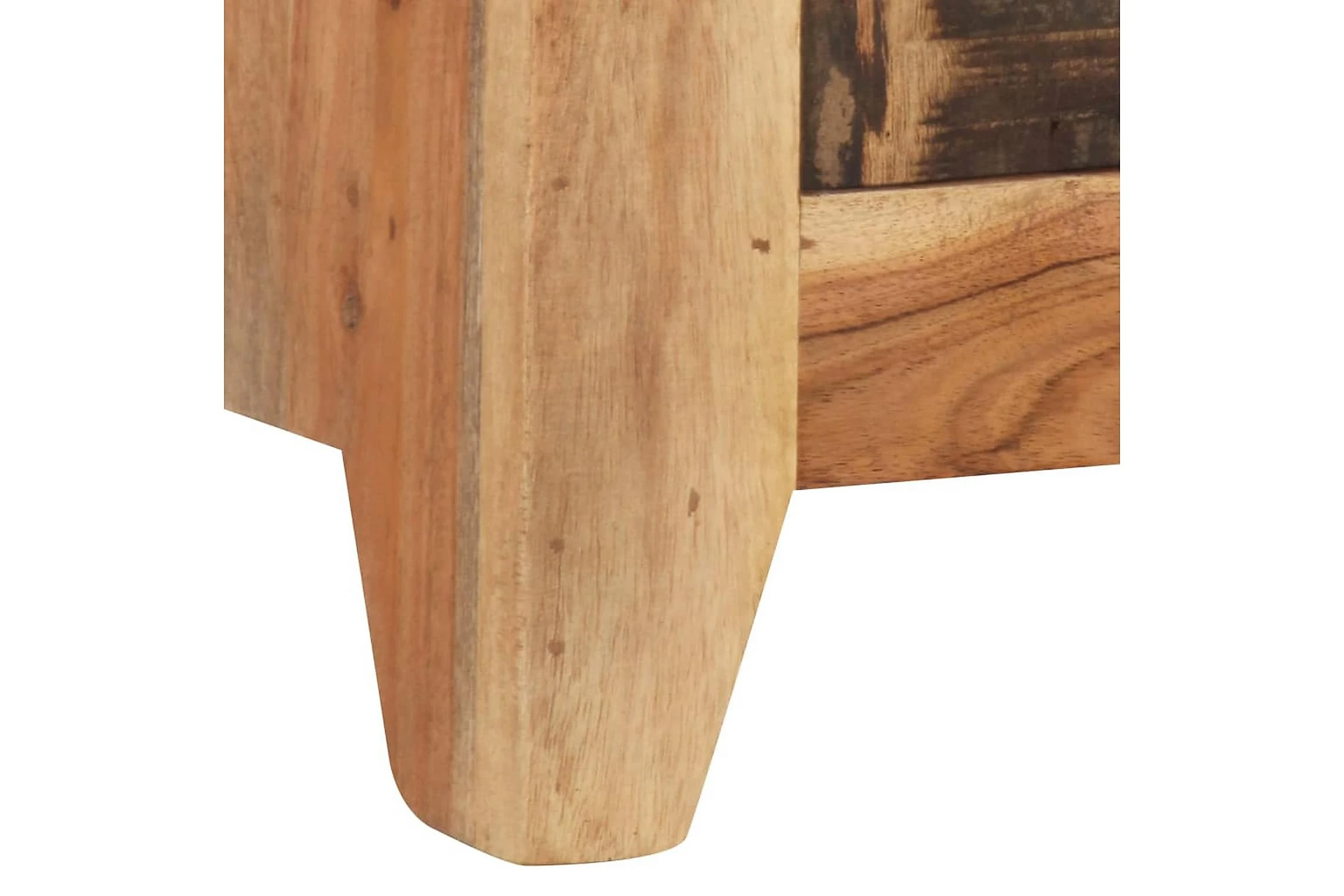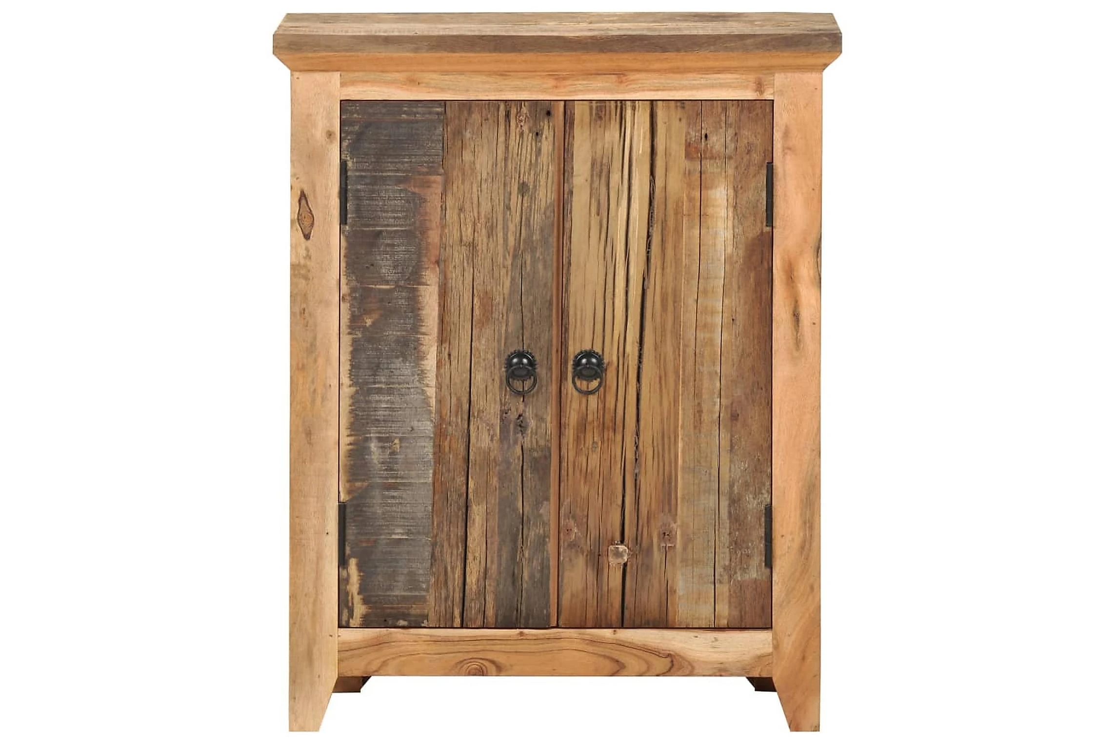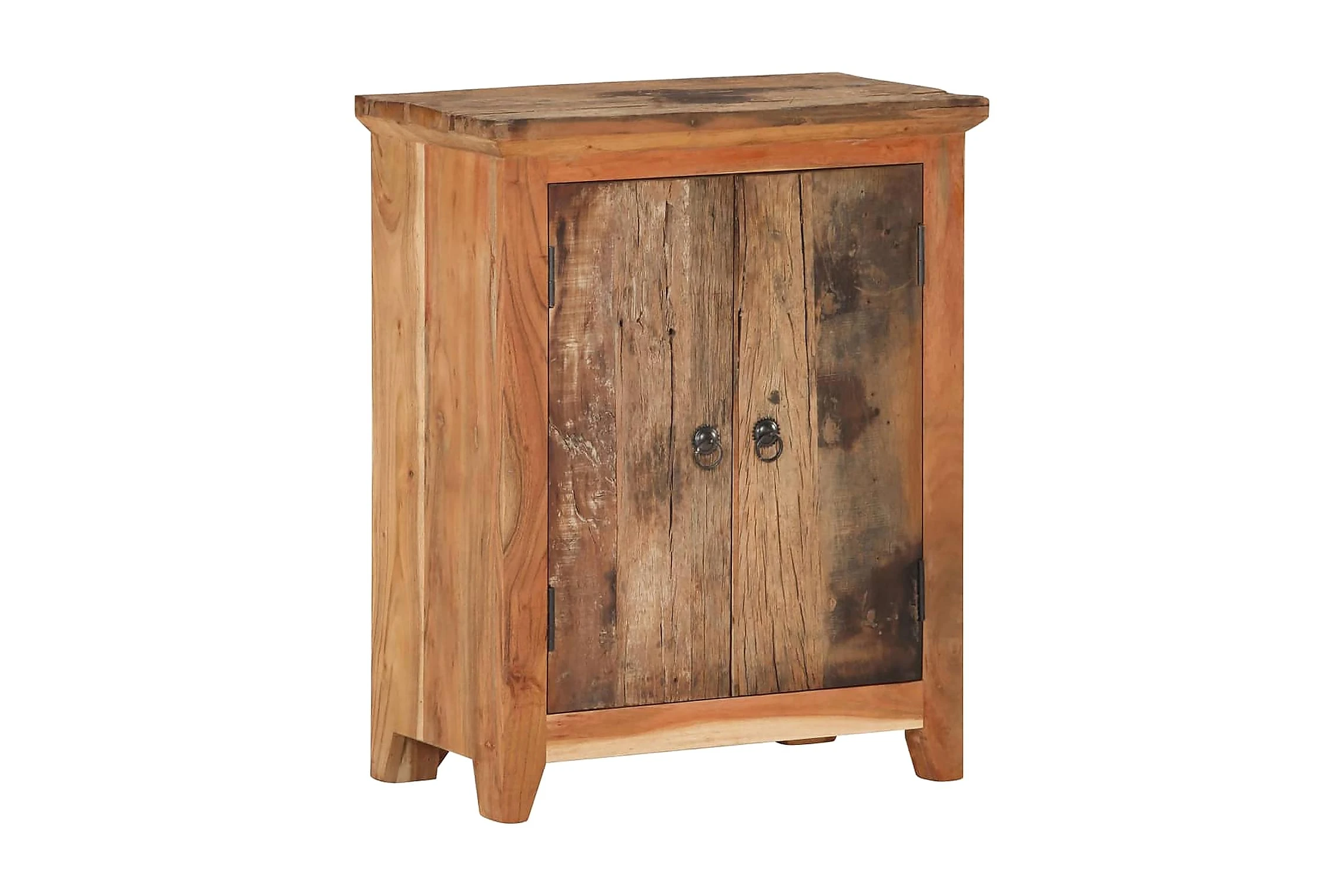 Skåpet är tillverkat i massivt akaciaträ och massivt återvunnet trä. Återvunnet trä samlas in från reglar, golv och balkar från gamla byggnader som rivits och kan bestå av olika typer av trä såsom furu, teak, ek, mangoträ, akacia mm. Detta innebär att det återvunna träet behåller egenskaperna hos dessa olika träslag. Återvunnet trä är redan åldrat, vittrat och torkat, så det varken krymper eller böjs. Skänken har 2 utrymmen med gott om förvaringsutrymme för att organisera saker.
