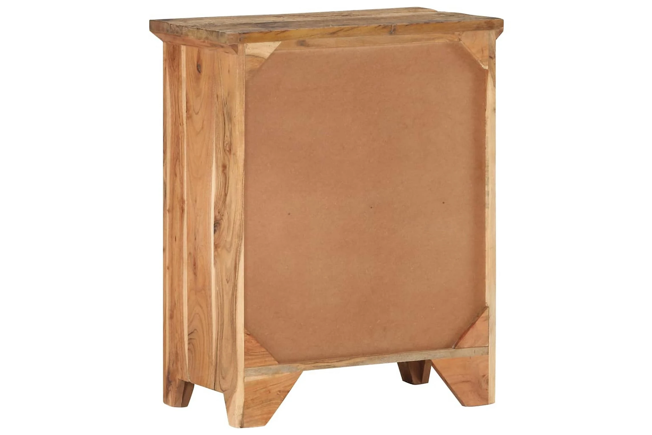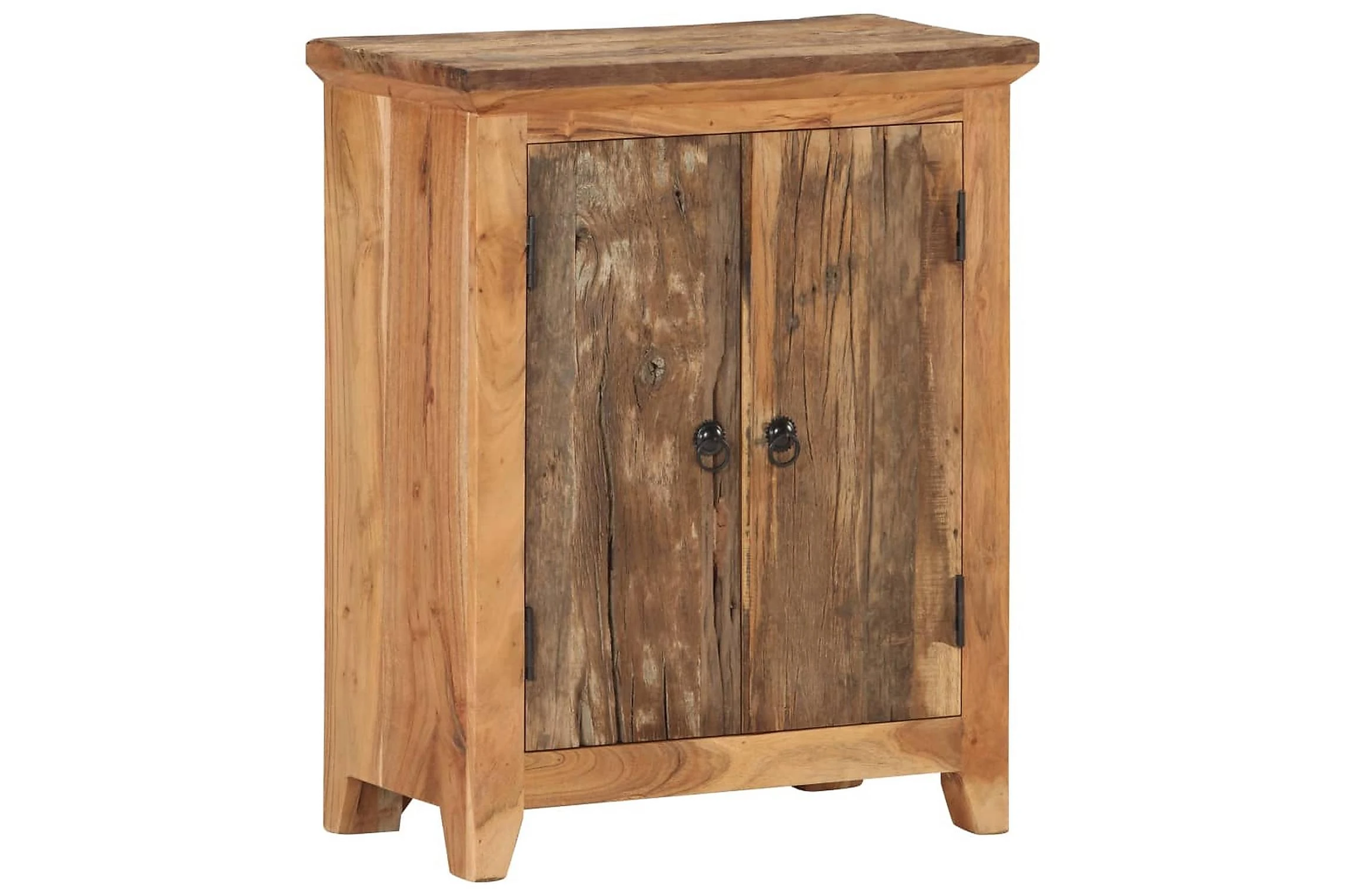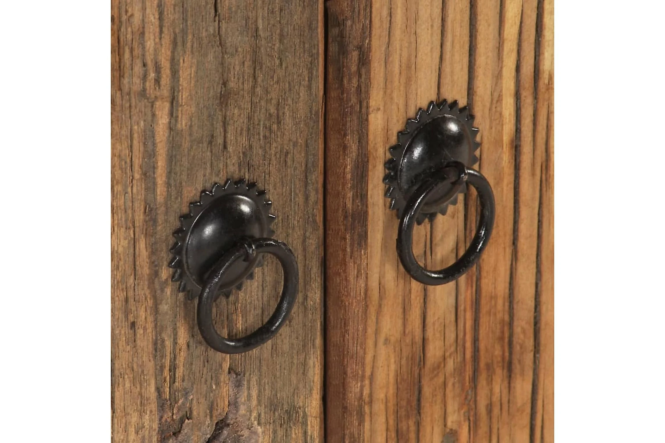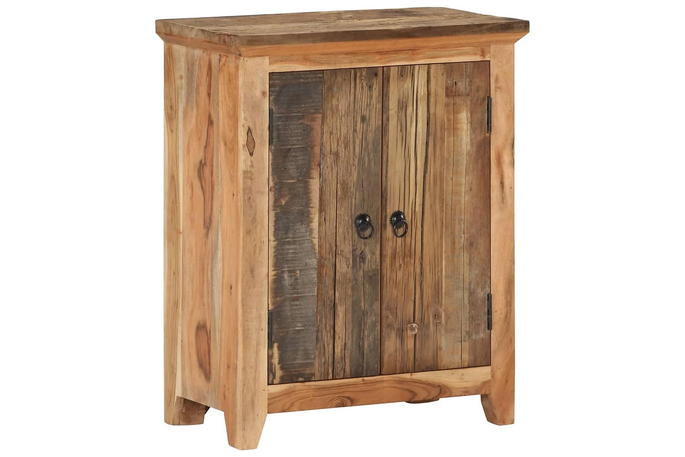 Skåpet är tillverkat i massivt akaciaträ och massivt återvunnet trä. Återvunnet trä samlas in från reglar, golv och balkar från gamla byggnader som rivits och kan bestå av olika typer av trä såsom furu, teak, ek, mangoträ, akacia mm. Detta innebär att det återvunna träet behåller egenskaperna hos dessa olika träslag. Återvunnet trä är redan åldrat, vittrat och torkat, så det varken krymper eller böjs. Skänken har 2 utrymmen med gott om förvaringsutrymme för att organisera saker.