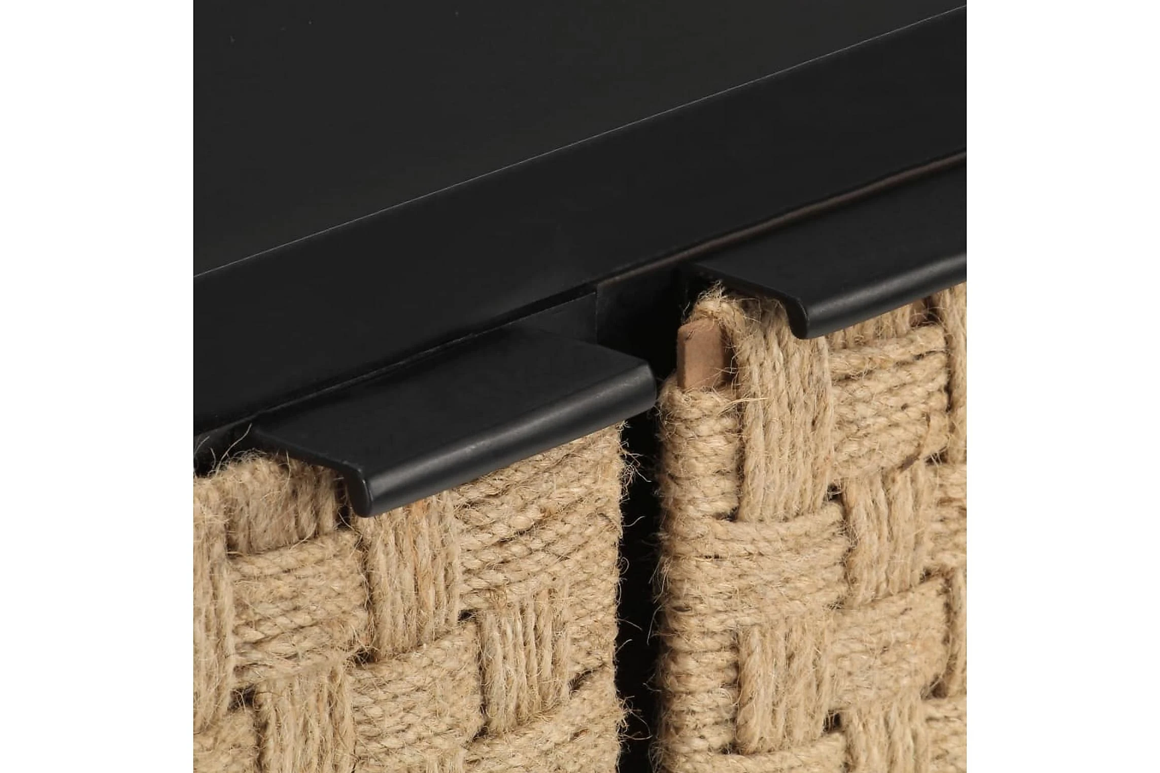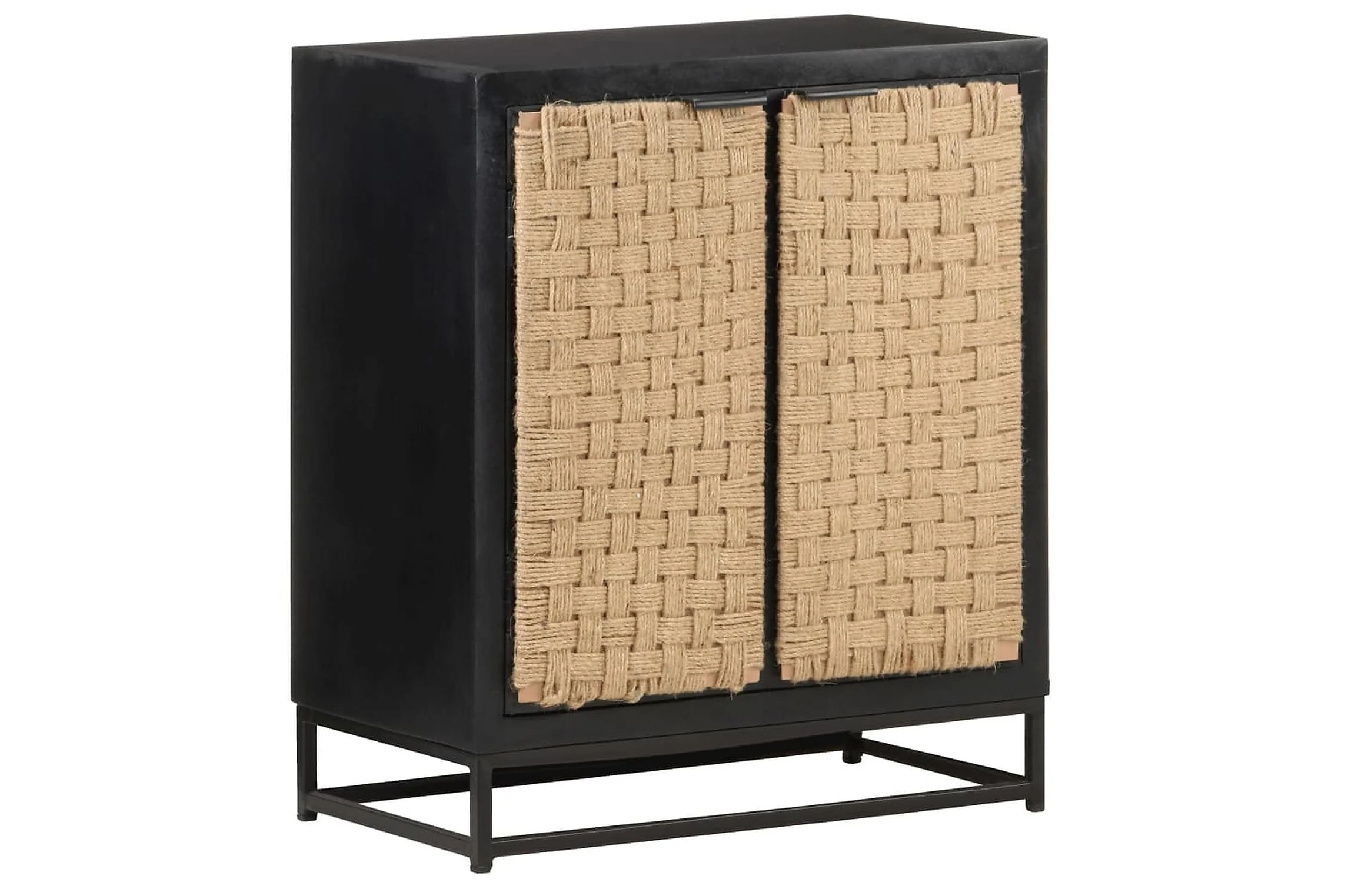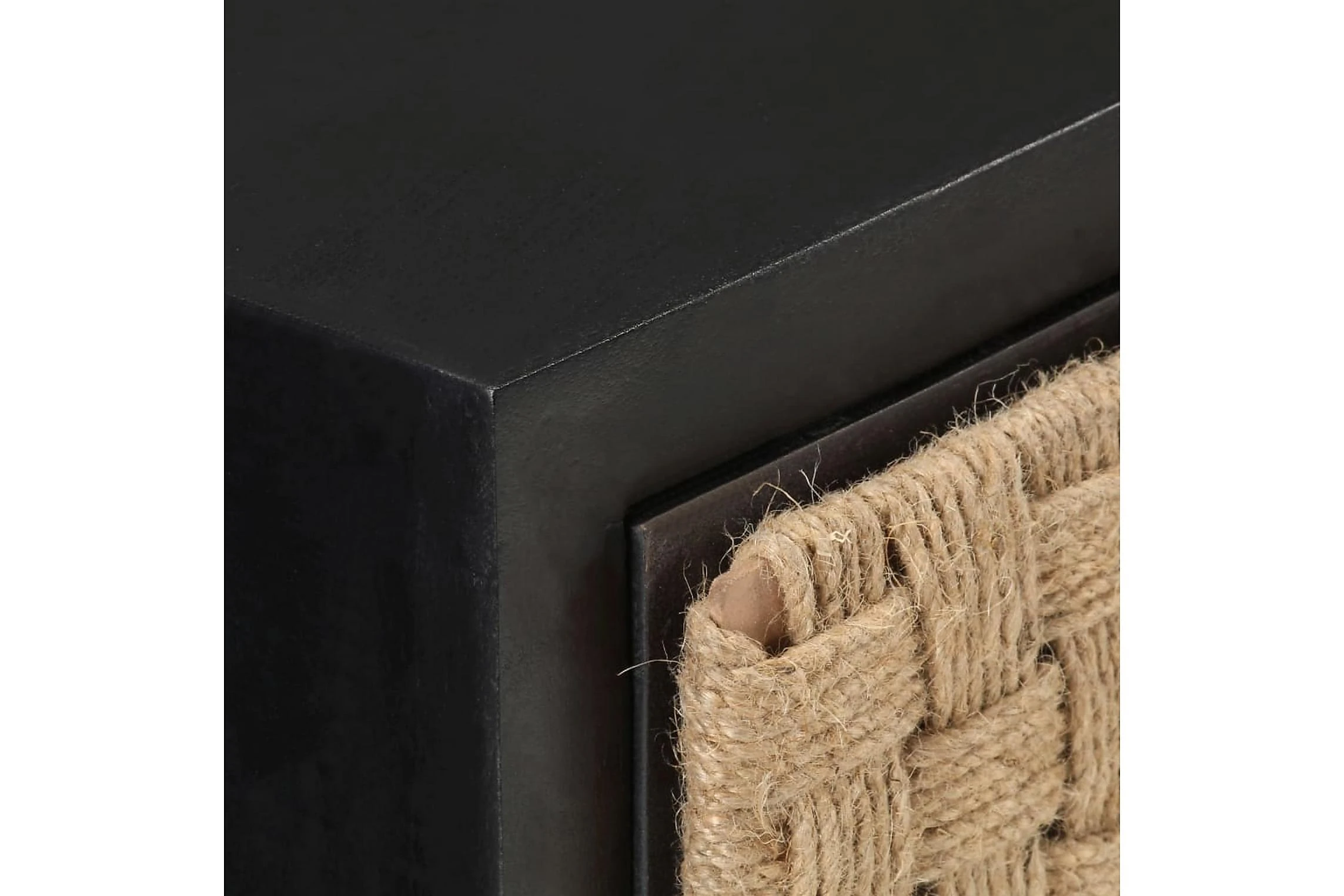 - Material: Massivt mangoträ med svart yta, järn med svart pulverlackering, jute