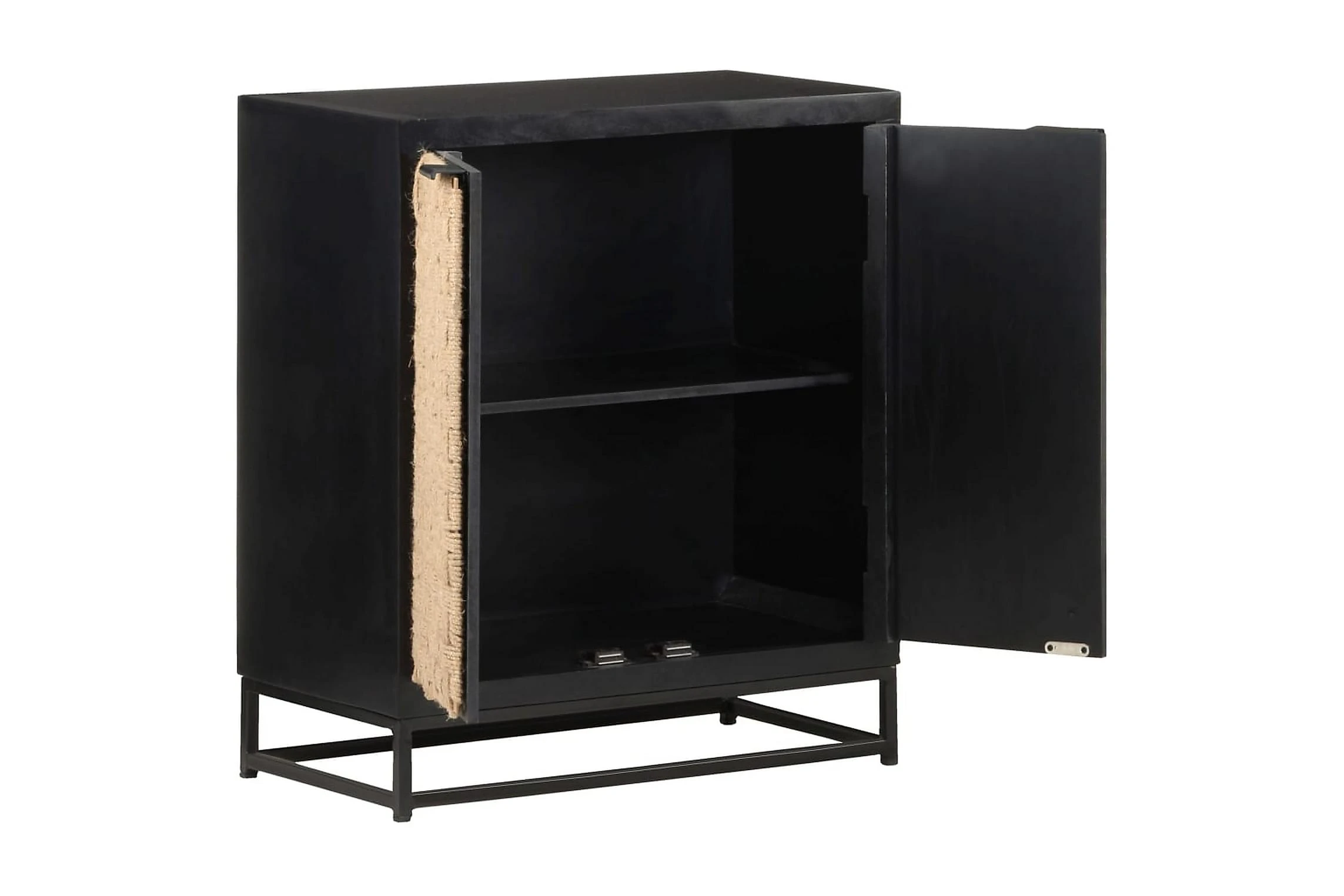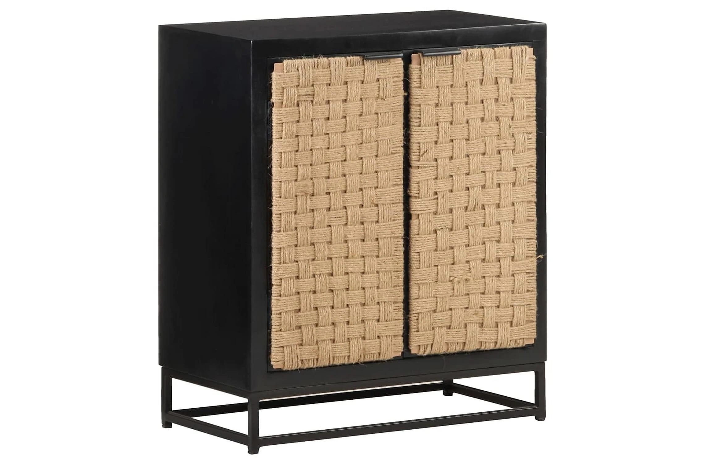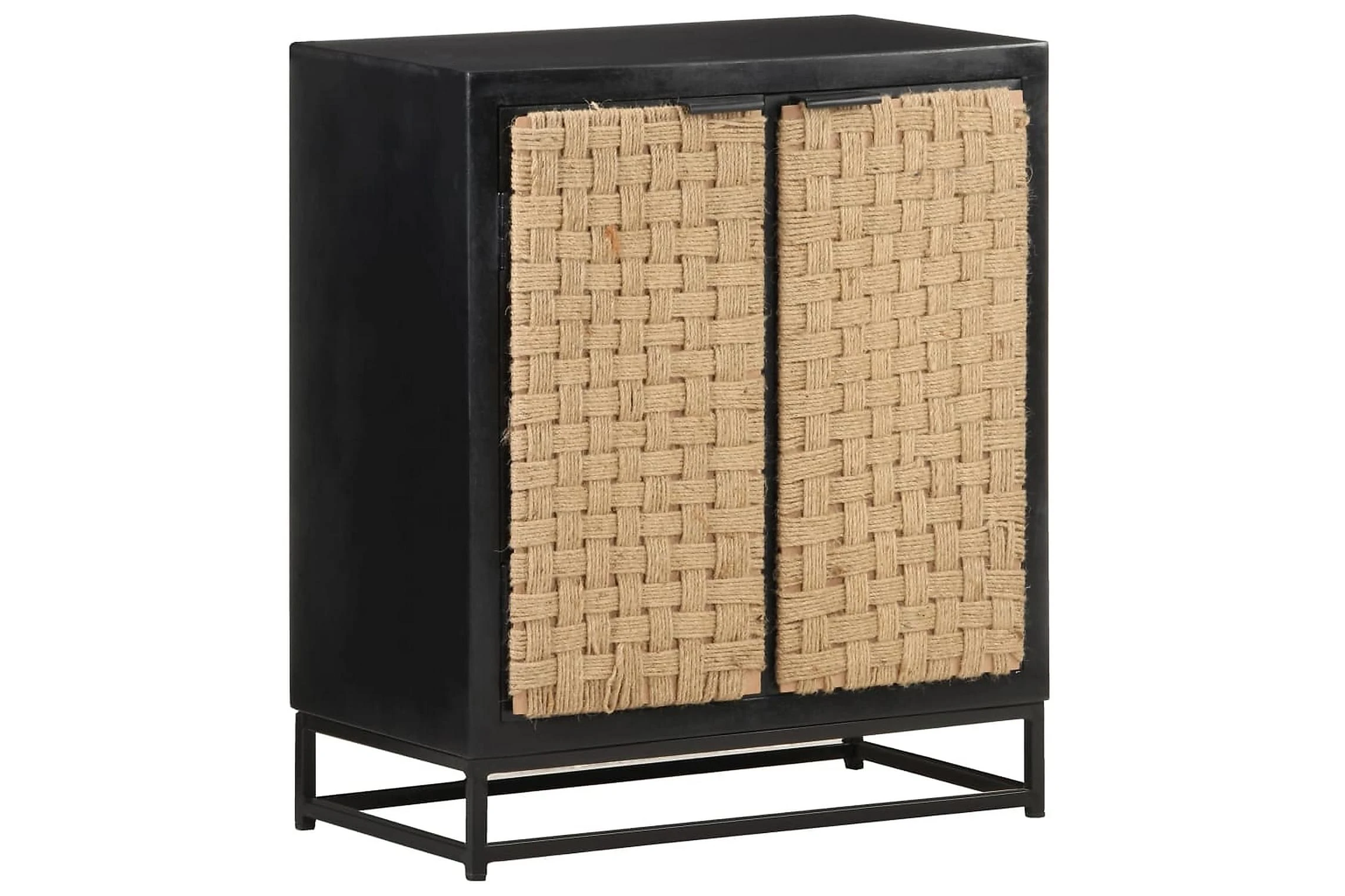- Material: Massivt mangoträ med svart yta, järn med svart pulverlackering, jute