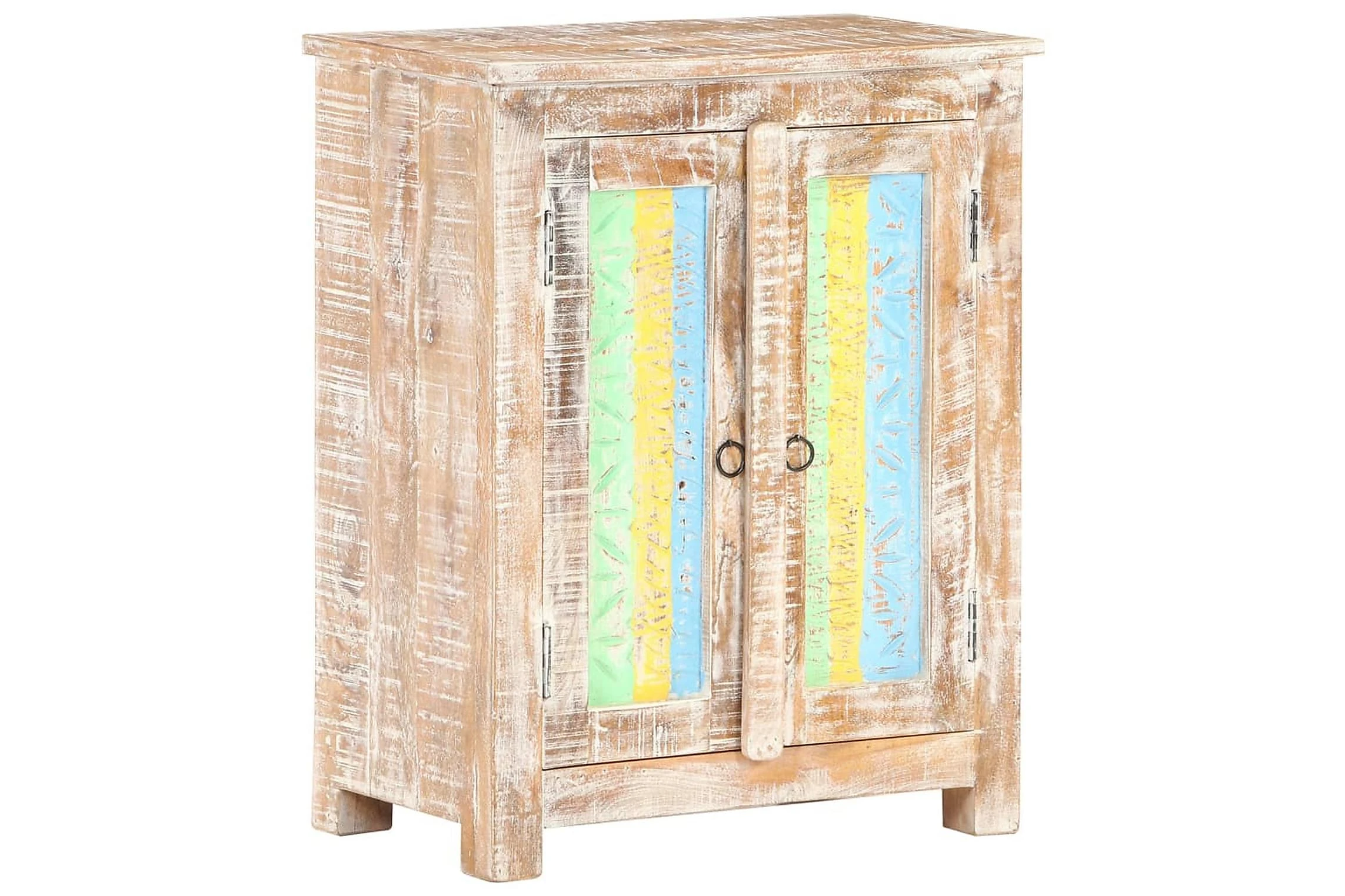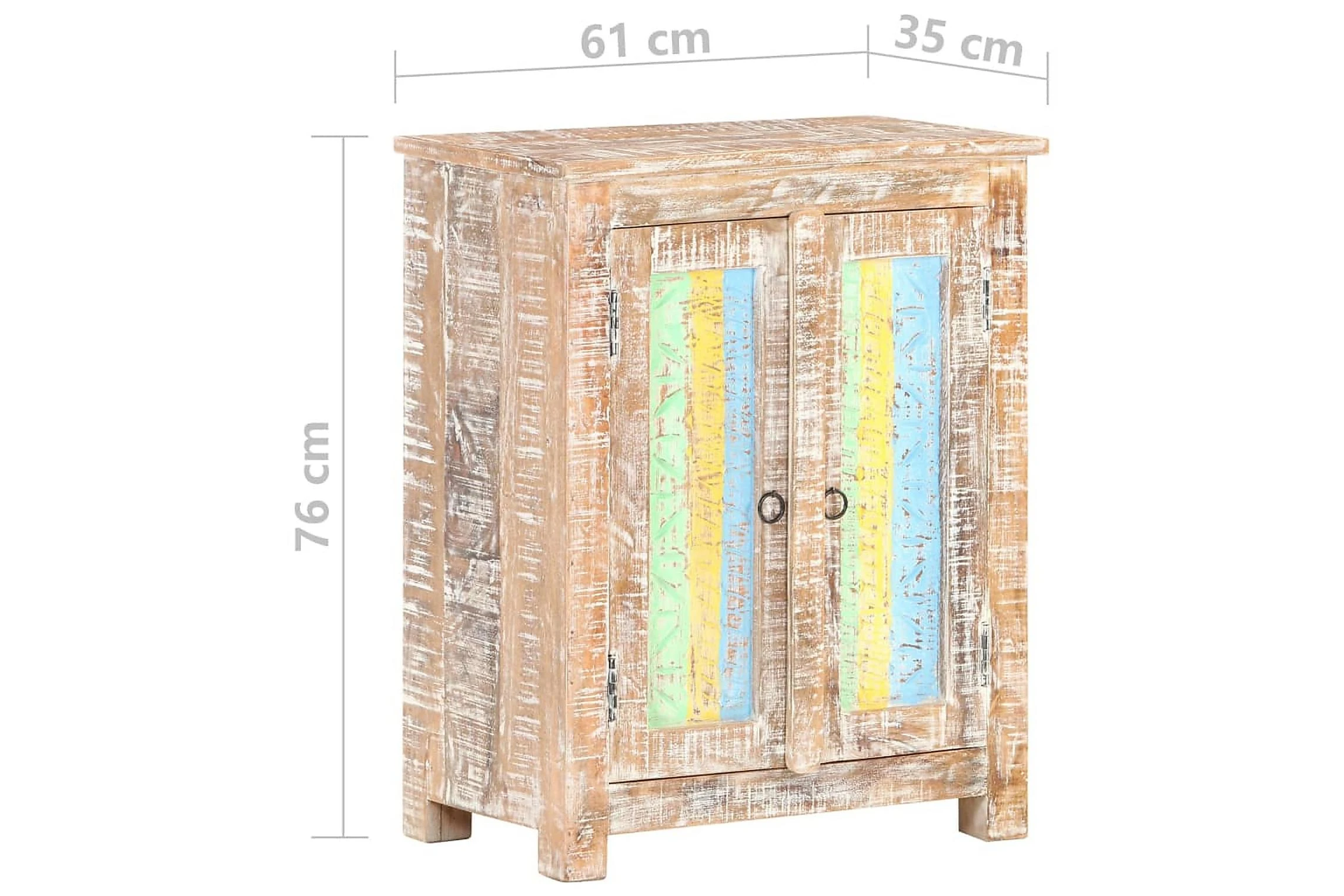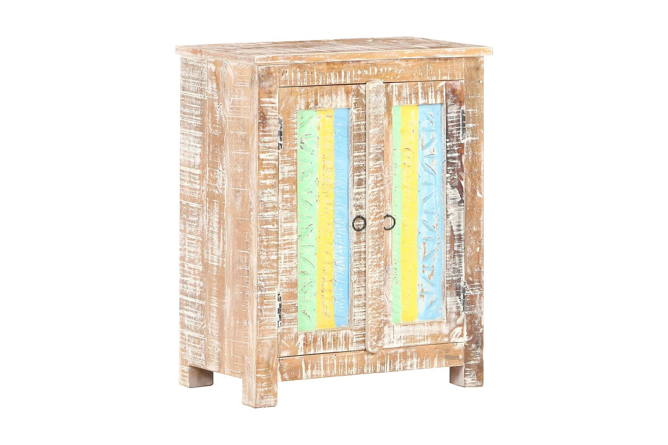 Skänken är tillverkad av grovt akaciaträ, vilket gör den stabil och hållbar. Hantverksskickligheten och de vackra träådringarna gör varje möbel unik och lite annorlunda från nästa. Detta skåp har också 2 dörrar, med gott om utrymme för att hålla dina viktiga saker organiserade och inom räckhåll.