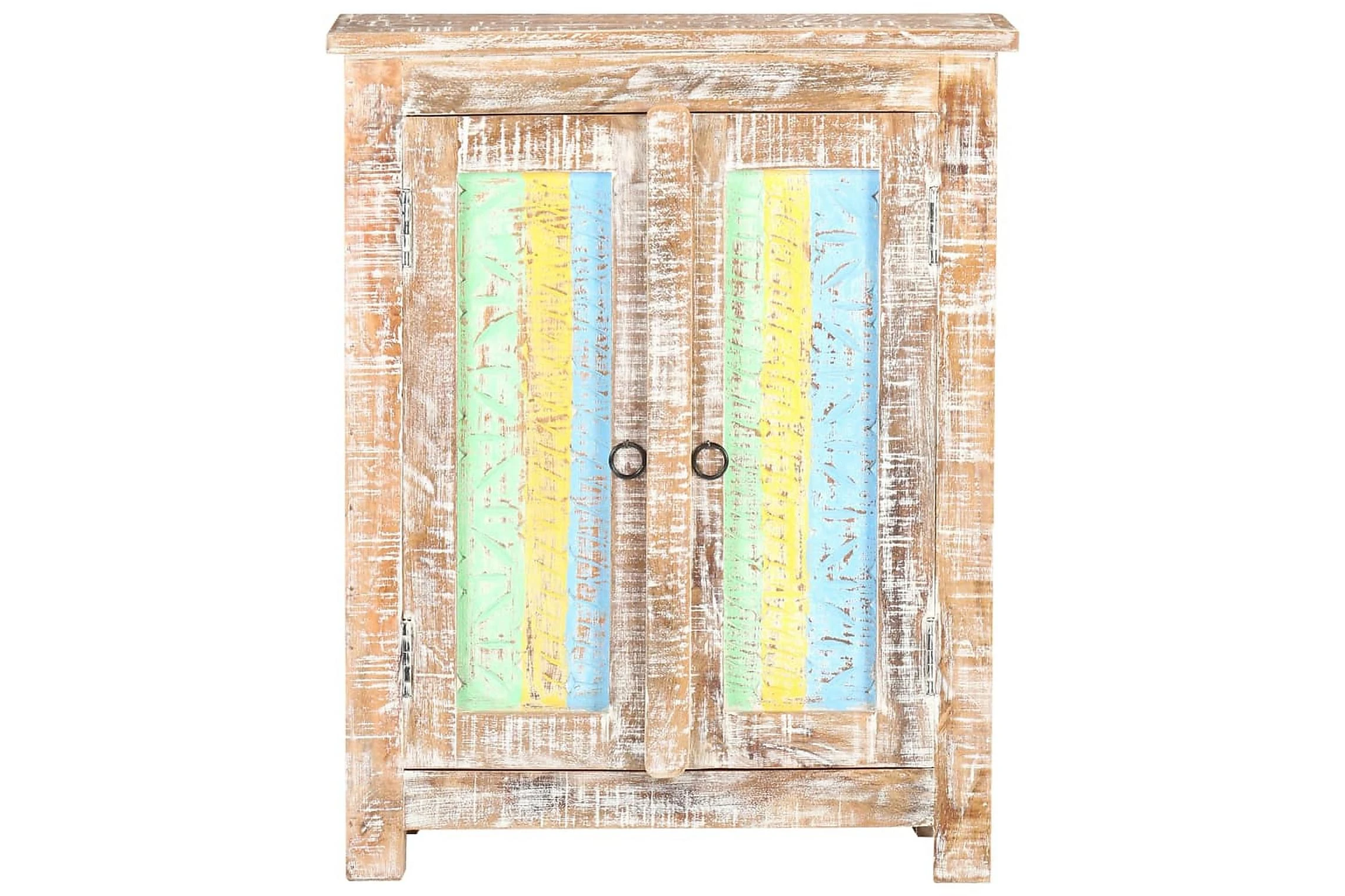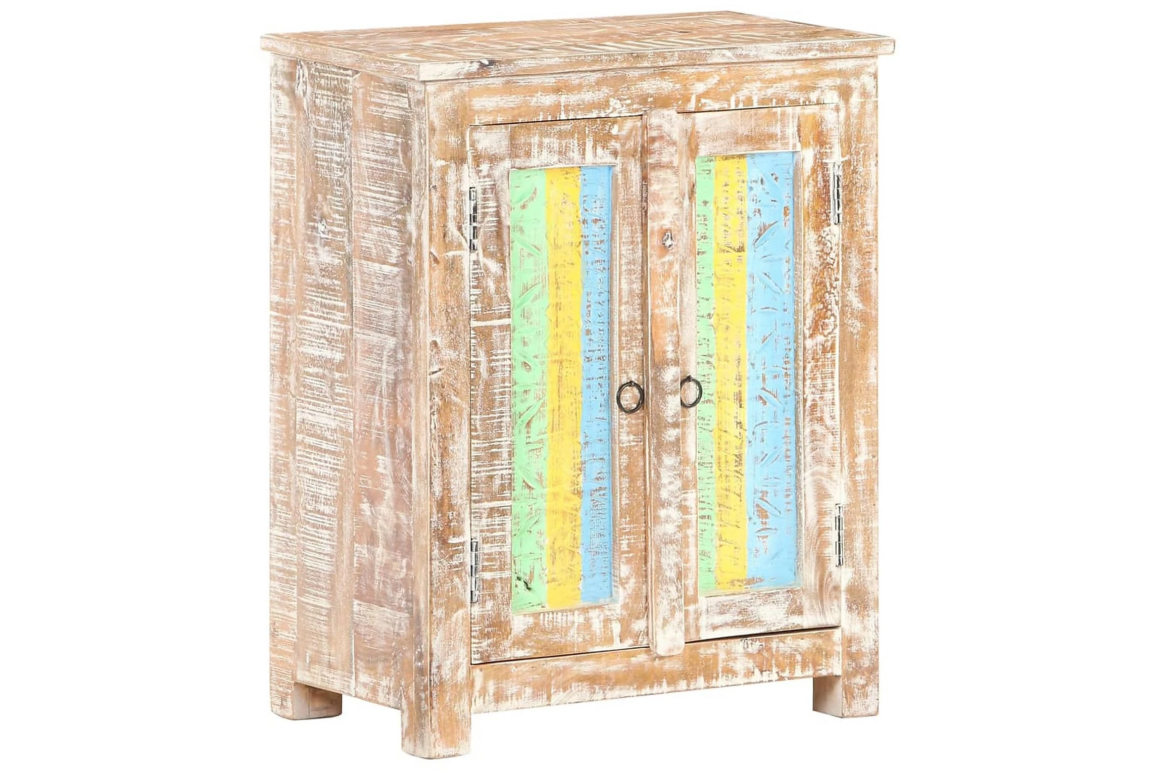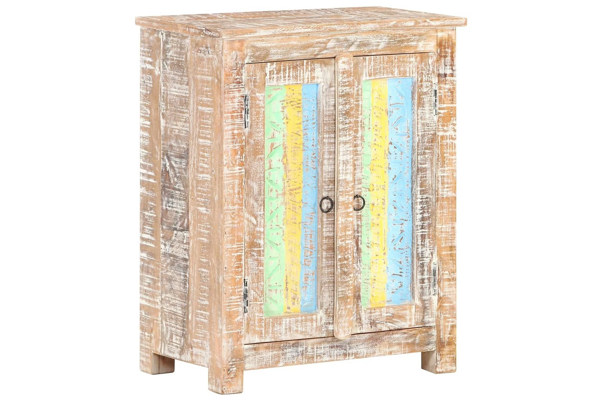 Skänken är tillverkad av grovt akaciaträ, vilket gör den stabil och hållbar. Hantverksskickligheten och de vackra träådringarna gör varje möbel unik och lite annorlunda från nästa. Detta skåp har också 2 dörrar, med gott om utrymme för att hålla dina viktiga saker organiserade och inom räckhåll.