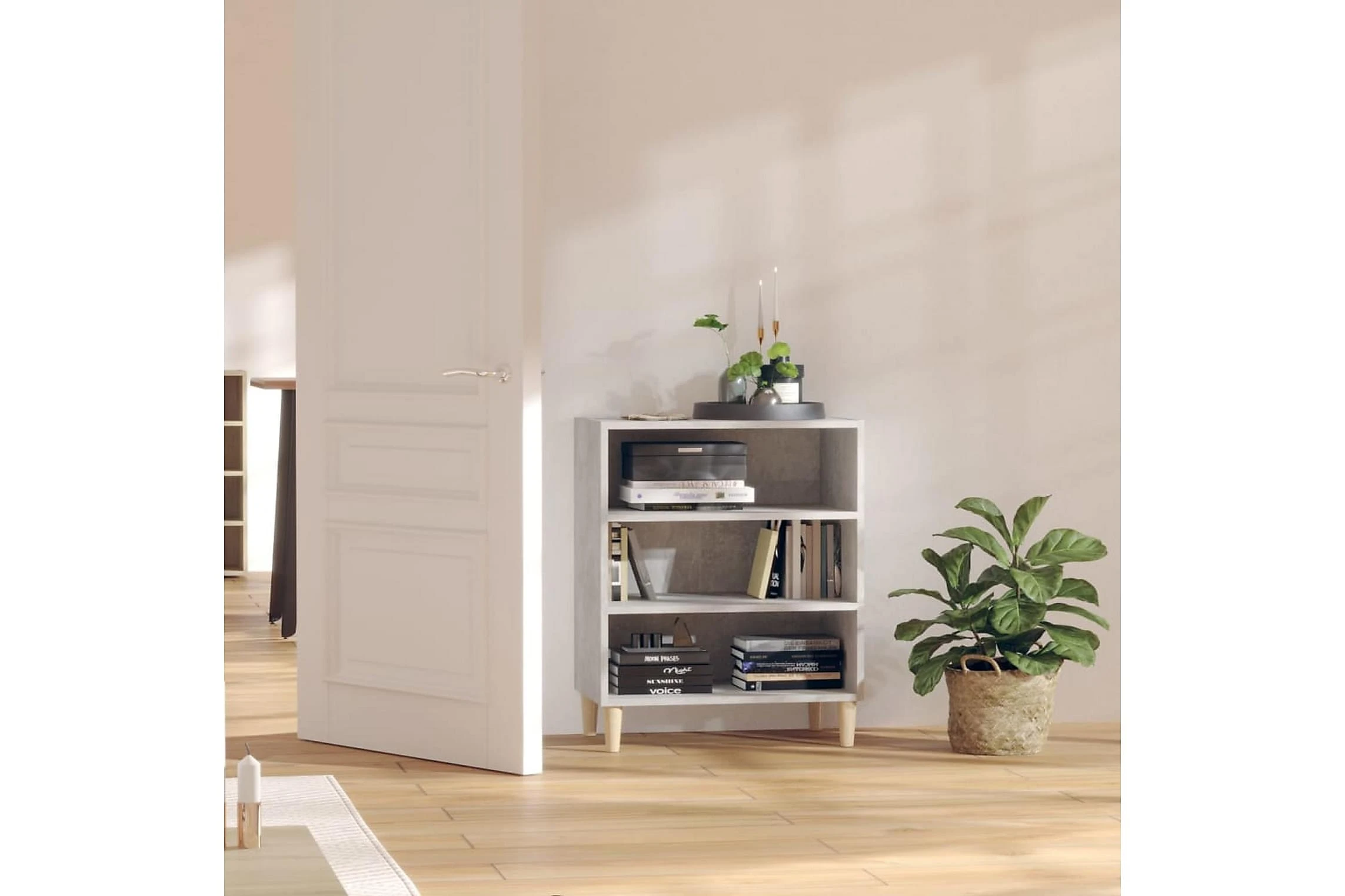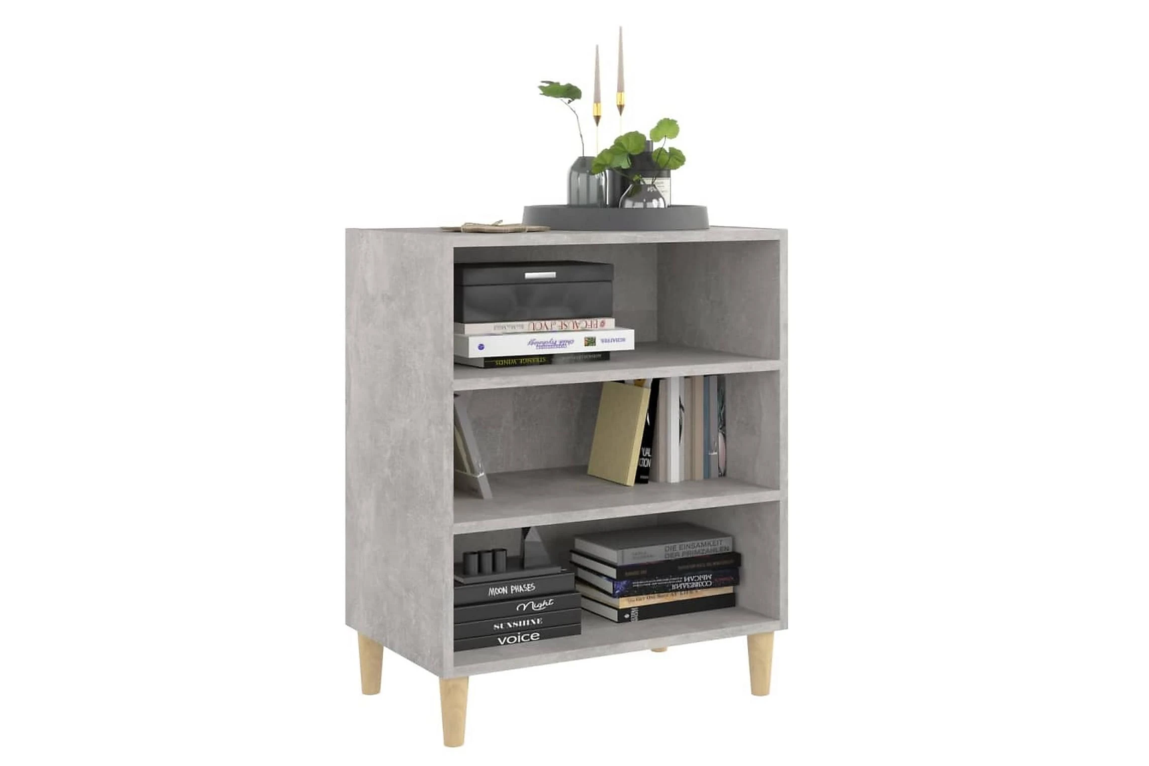 Skänken/bokhyllan är tillverkad av spånskiva, vilket gör den robust och hållbar för många års användning. Benen i trä bidrar till extra stabilitet. Skänken har 3 hyllor med gott om förvaringsplats. Den robusta skivan är en perfekt plats att ställa prydnadssaker, fotoramar eller krukväxter på. Skänken kan enkelt torkas av med en fuktig trasa.