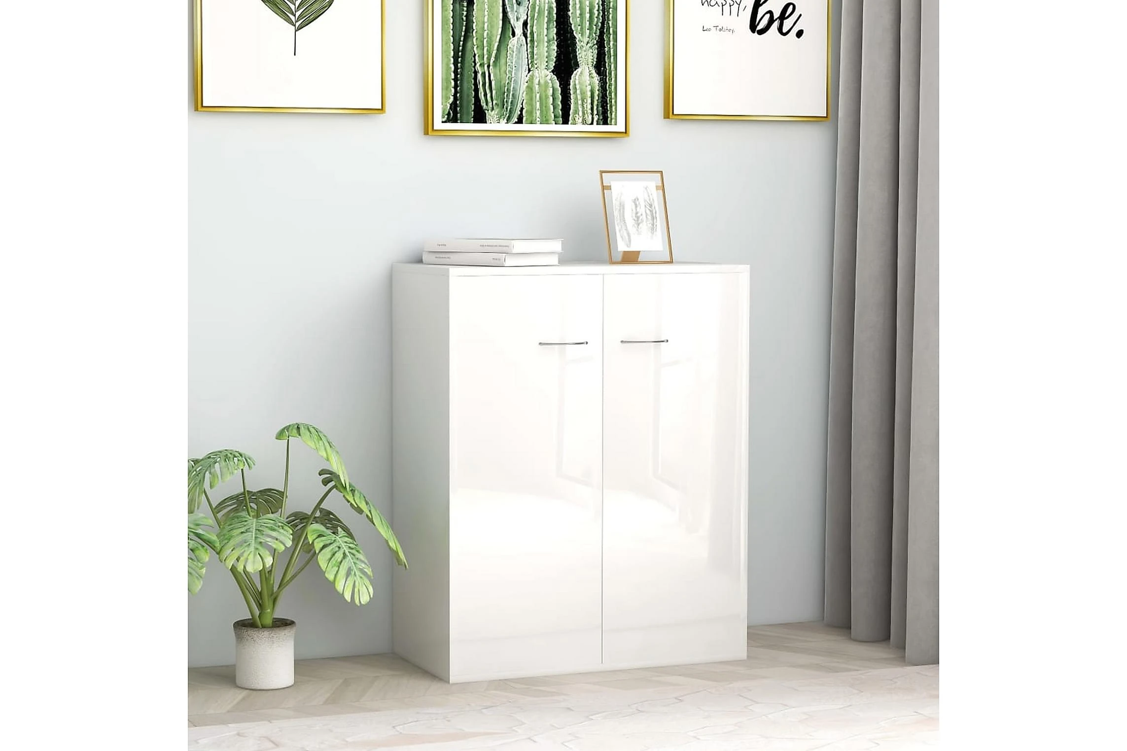 Skänken har 2 luckor med gott om förvaringsutrymme för böcker, mediaenheter och andra föremål. Den stadiga ovansidan är perfekt för att visa upp dekorativa föremål, fotoramar eller krukväxter. Den kan även användas som avlastningsbord, sidoskåp, med mera. Tack vare sin högkvalitativa spånskiva är skänken mycket hållbar.