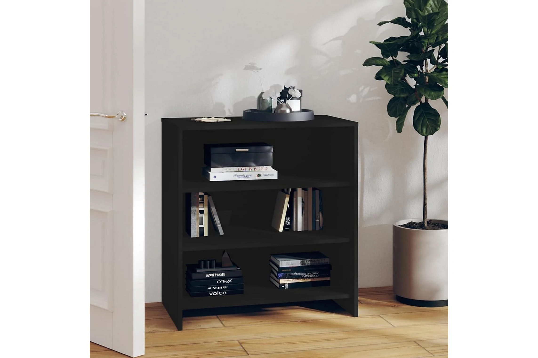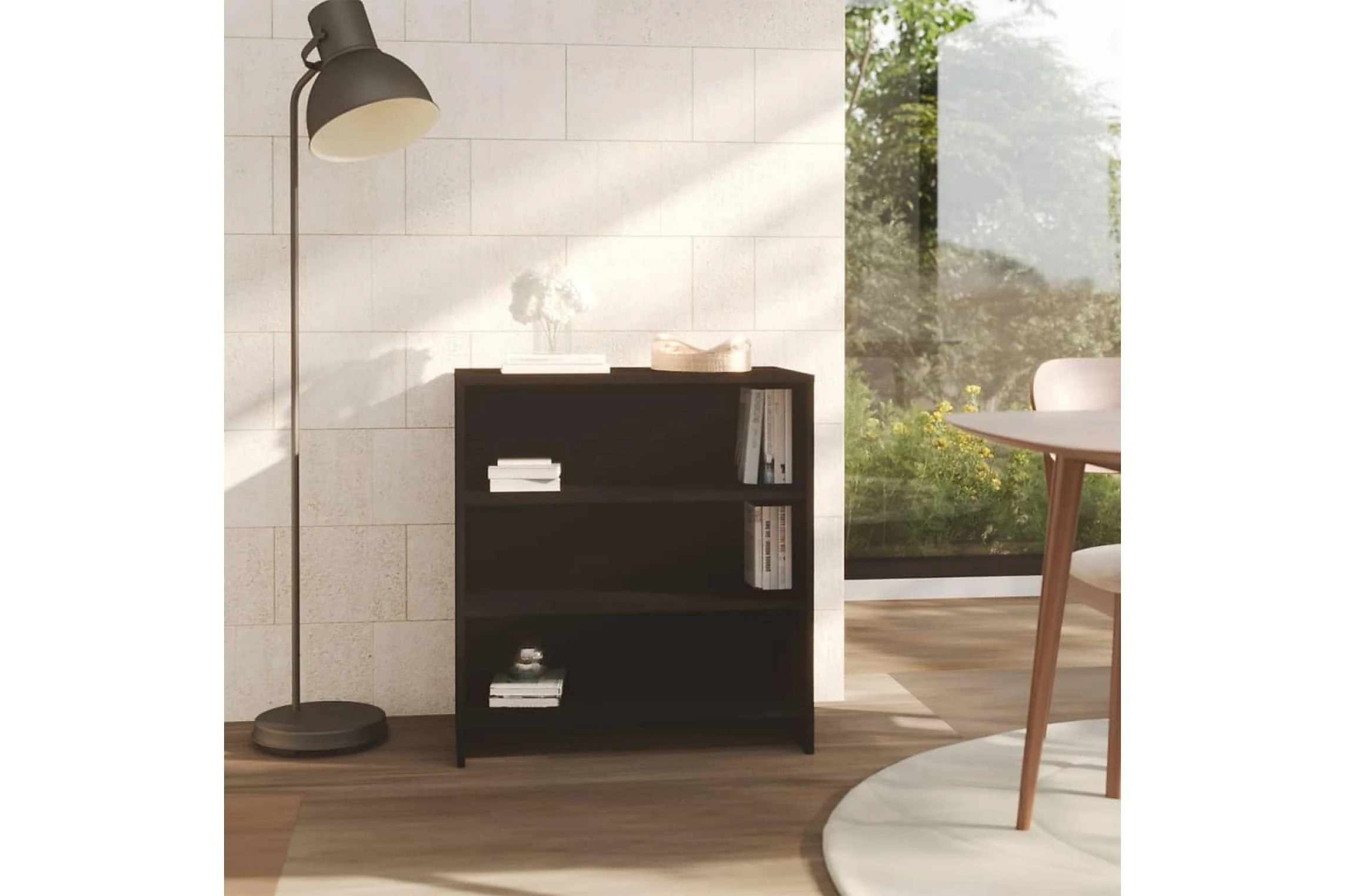 Denna skänk har en robust och hållbar konstruktion. Med 3 hyllplan har skåpet gott om förvaringsutrymme för böcker, multimedieapparater och andra föremål. Den robusta toppen är idealisk för att placera dekorativa föremål, fotoramar eller krukväxter på.