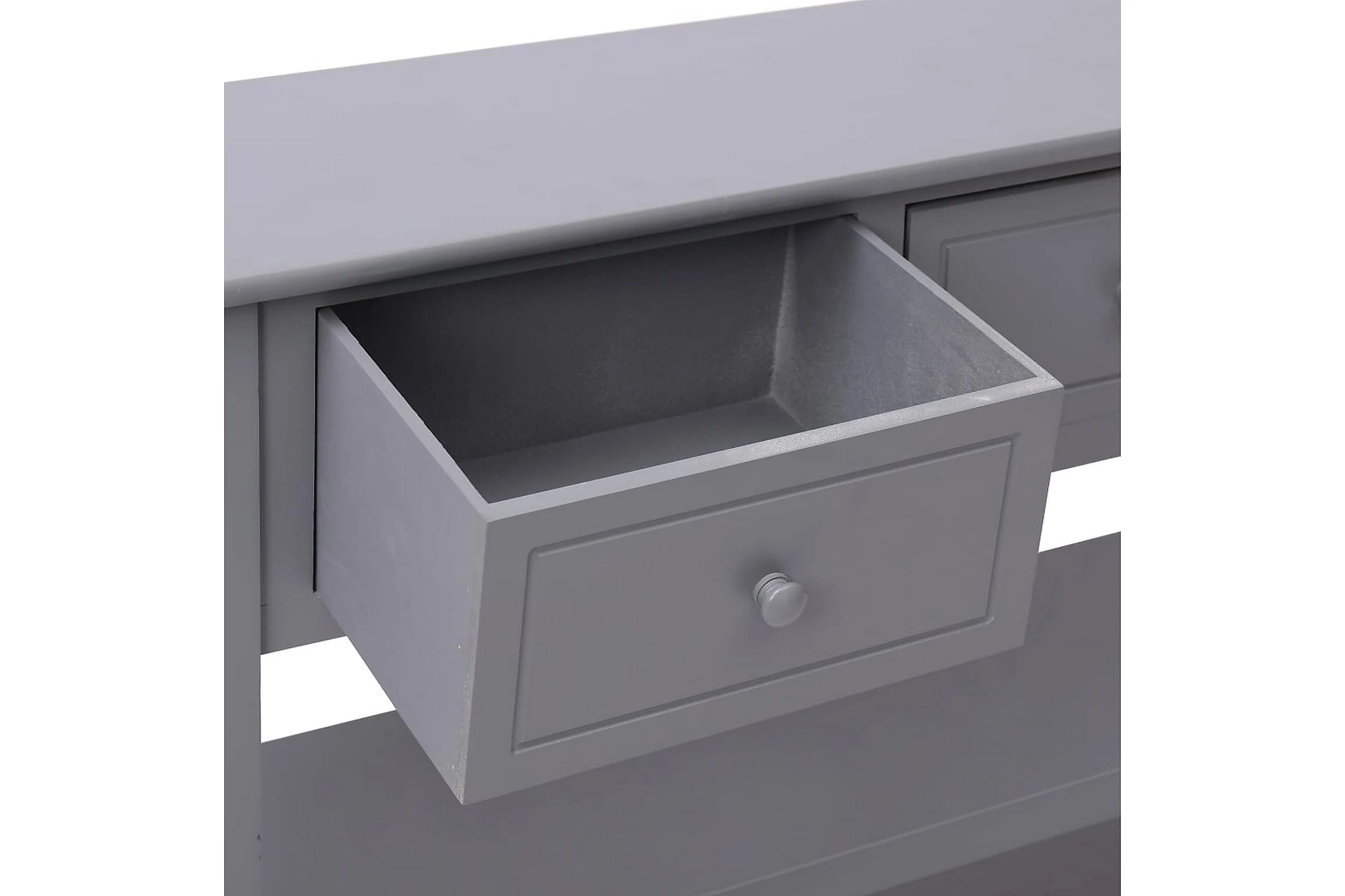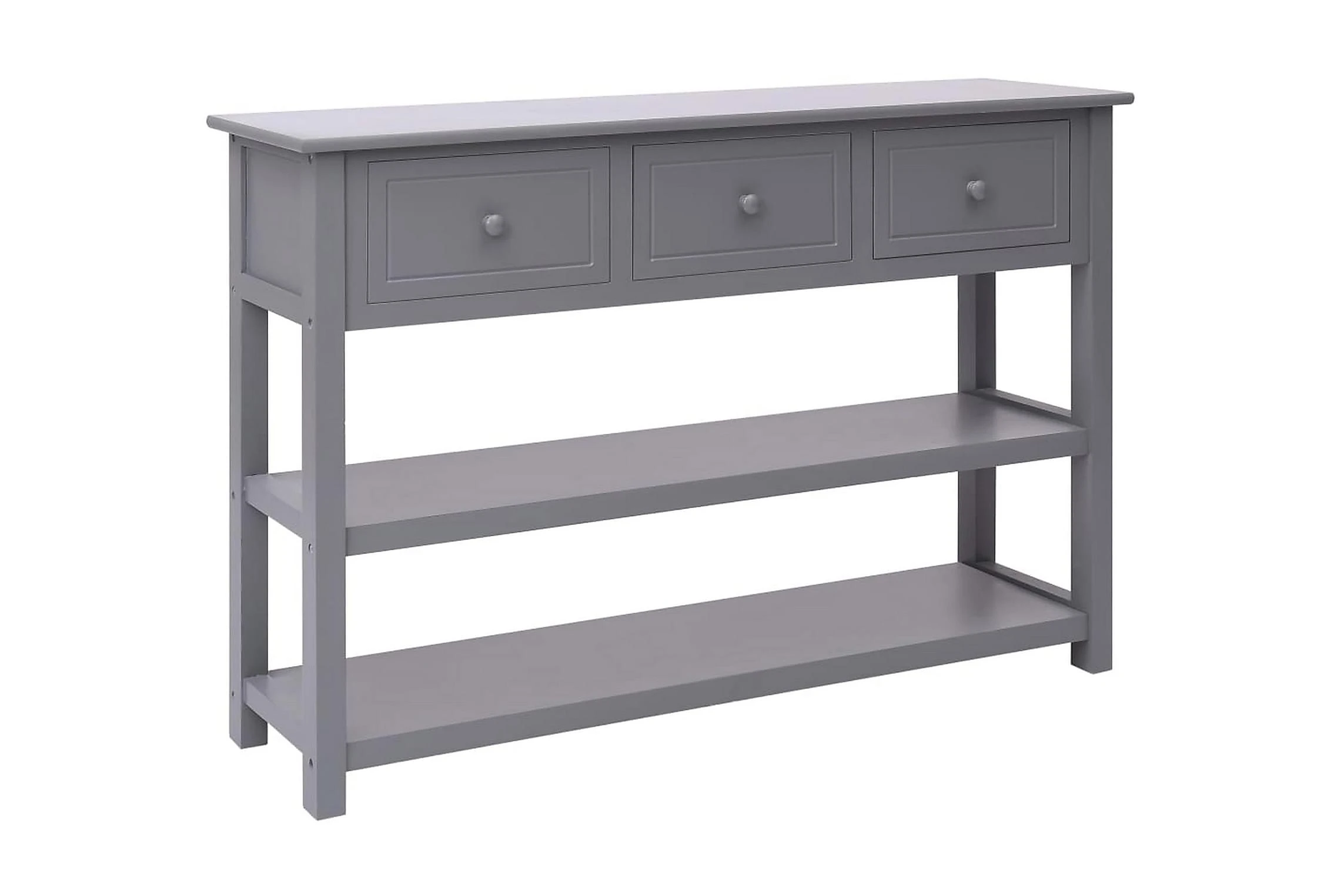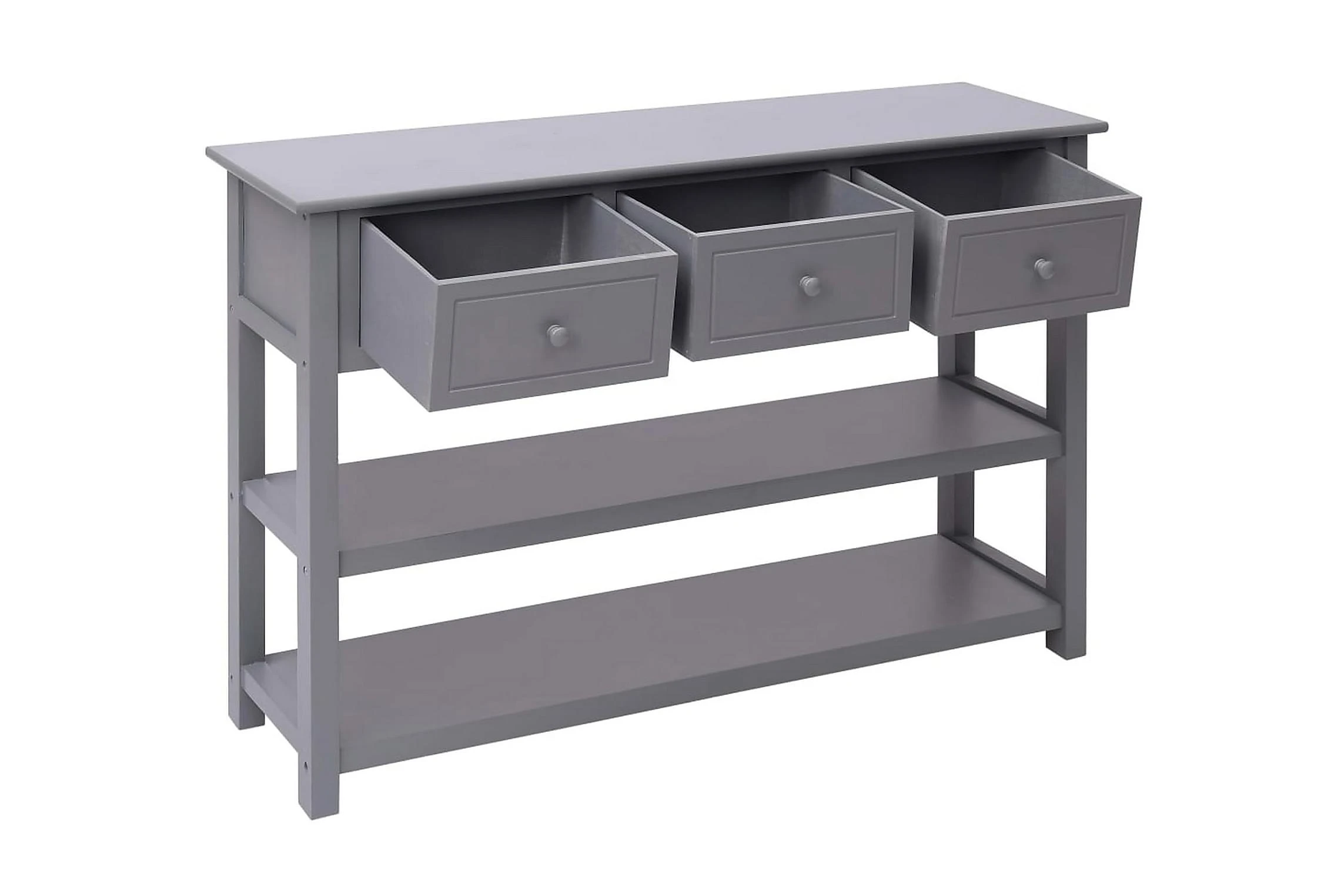 Denna skänk är tillverkad av kvalitativt kejsarträ, poppel och massiv MDF-skiva och är ytterst stadig och hållbar. Skänken har 3 lådor och 2 hyllor med gott om plats för att hålla saker som nycklar, anteckningsblock, pennor och andra småsaker organiserade och inom räckhåll. Den stora ovansidan är perfekt att ställa mediaapparater på eller för att visa upp prydnader.