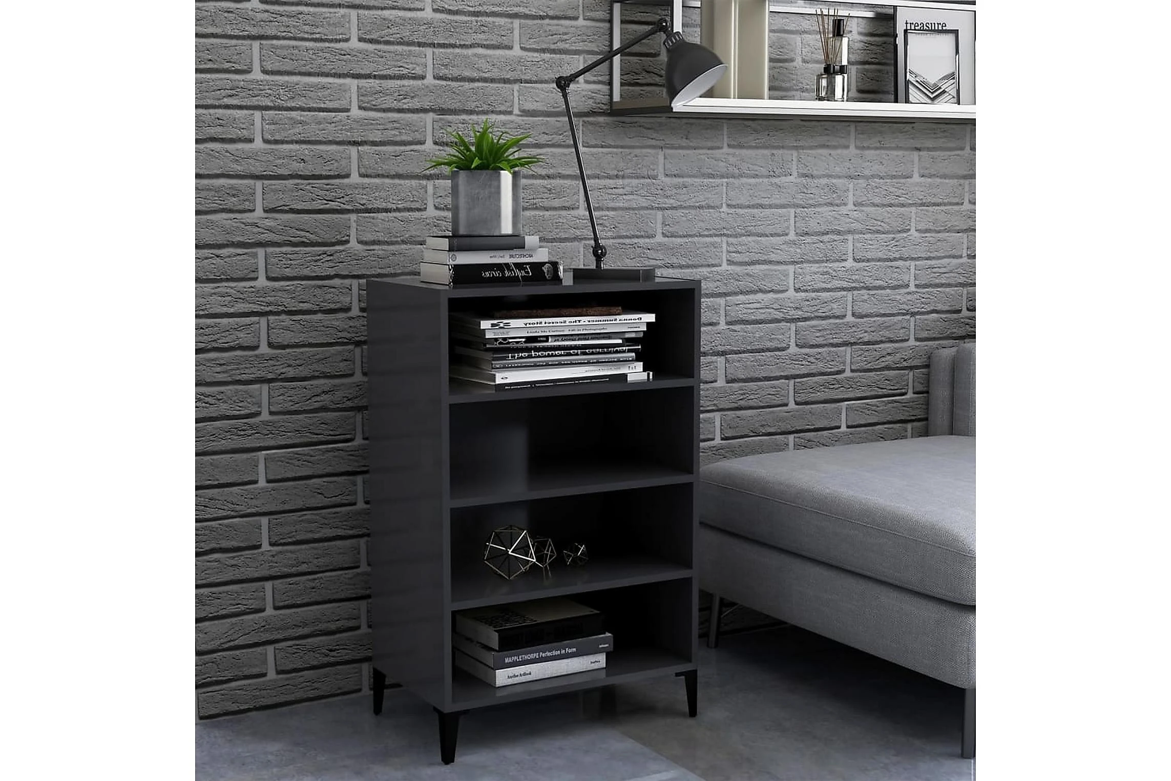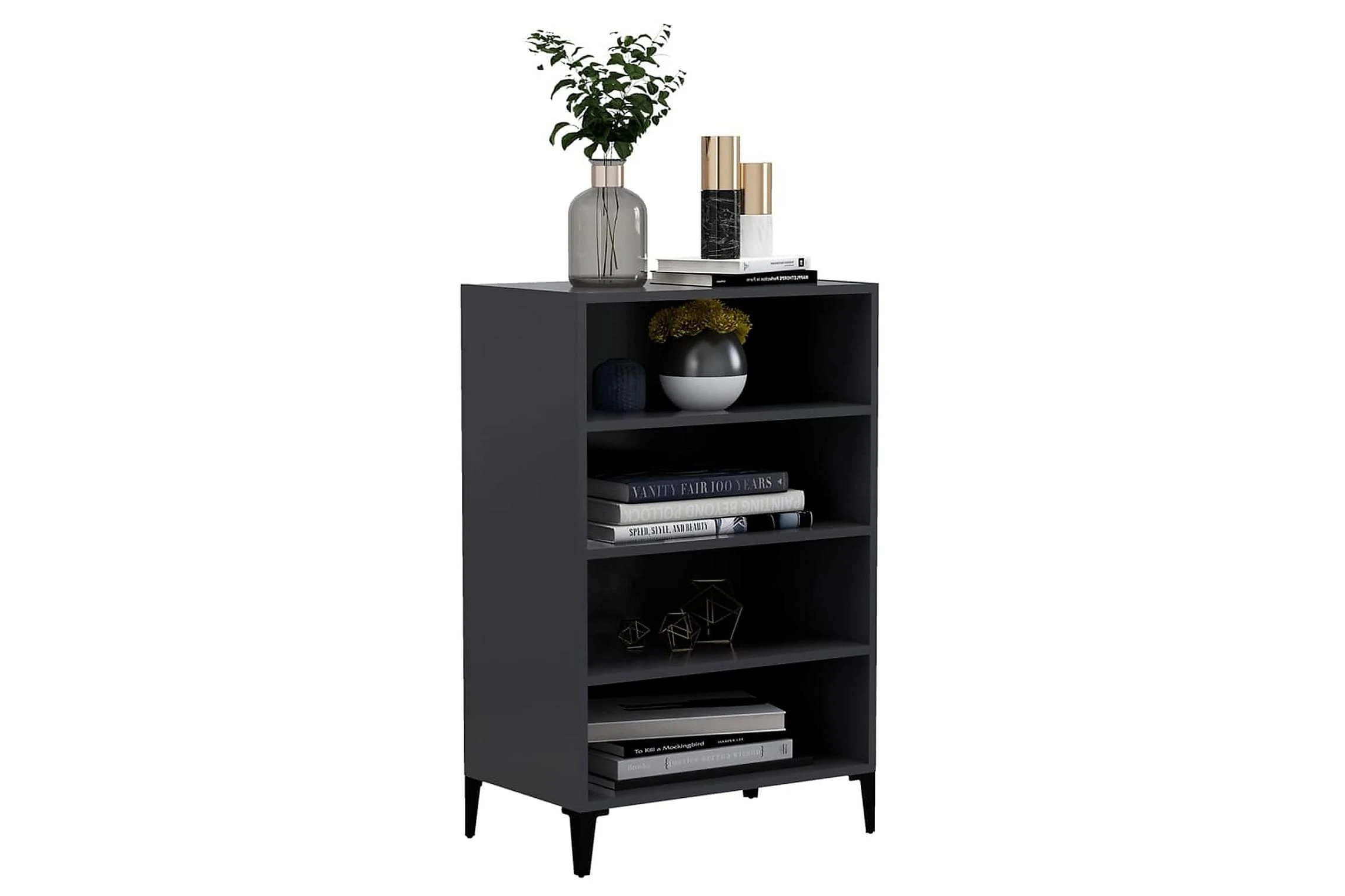 Skänken/bokhyllan är tillverkad av spånskiva, vilket gör den robust och hållbar för många års användning. Benen i metall bidrar till extra stabilitet. Skänken har 4 hyllor med gott om förvaringsplats. Den robusta skivan är en perfekt plats att ställa prydnadssaker, fotoramar eller krukväxter på. Skänken kan enkelt torkas av med en fuktig trasa.