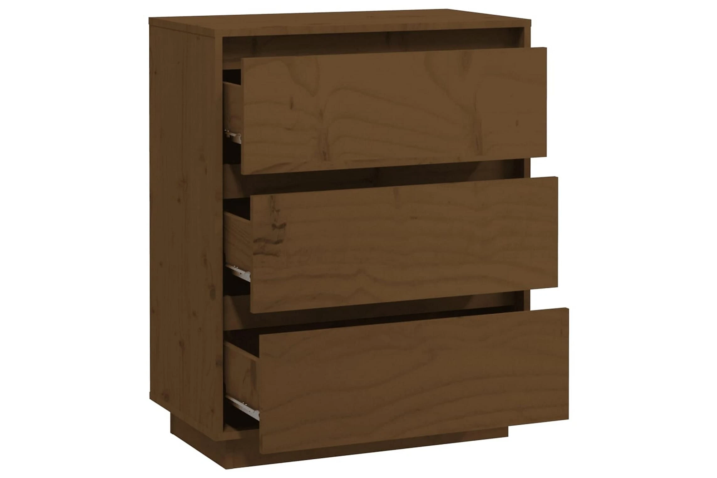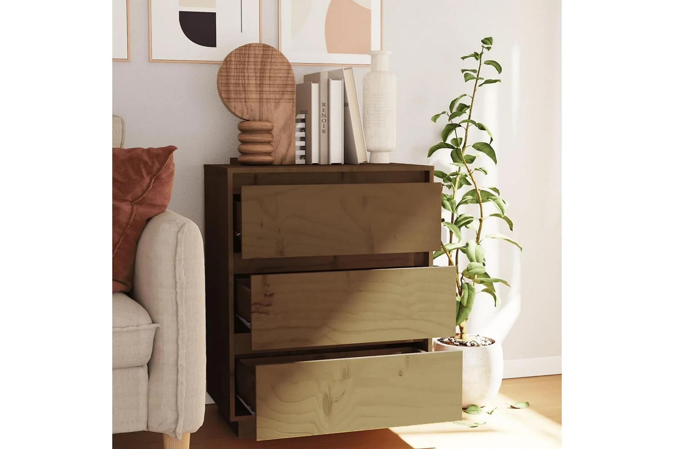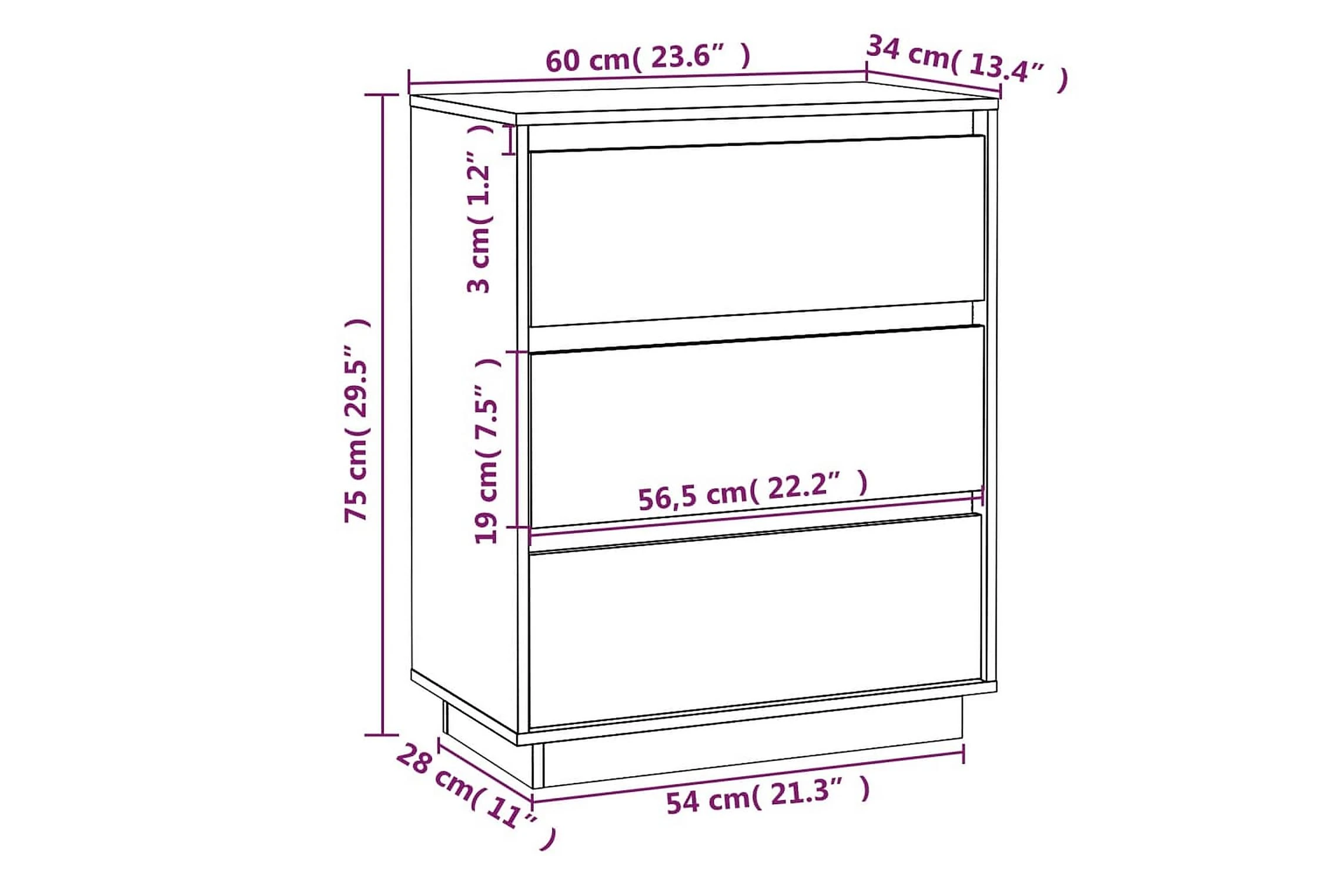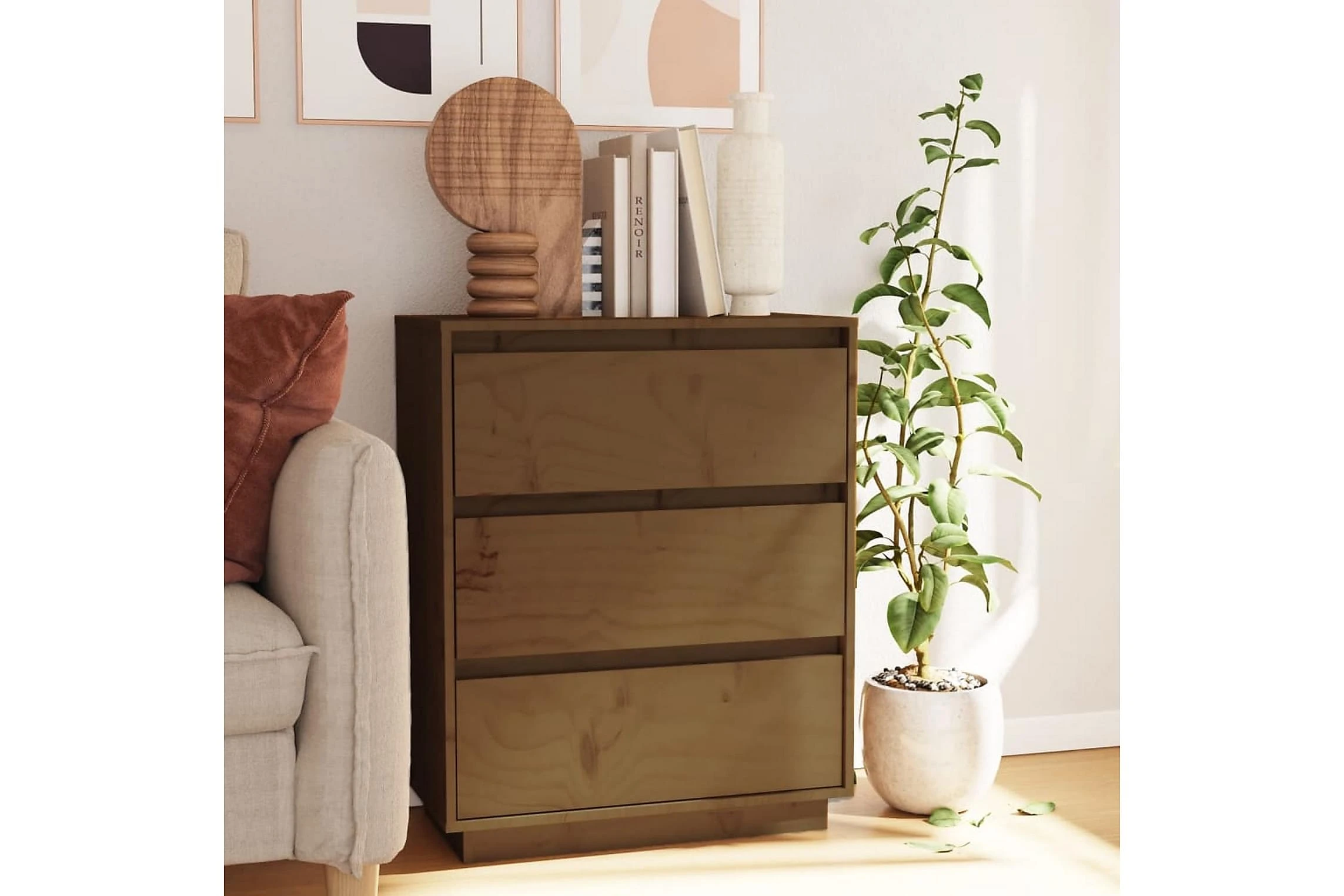Detta sidoskåp är tillverkat av massiv furu som säkerställer dess hållbarhet och stabilitet. Skåpet har gott om förvaringsutrymme för böcker, multimediaapparater och andra föremål. Den stadiga bordsytan är perfekt för dekorativa objekt såsom inramade foton, krukväxter eller en vas.