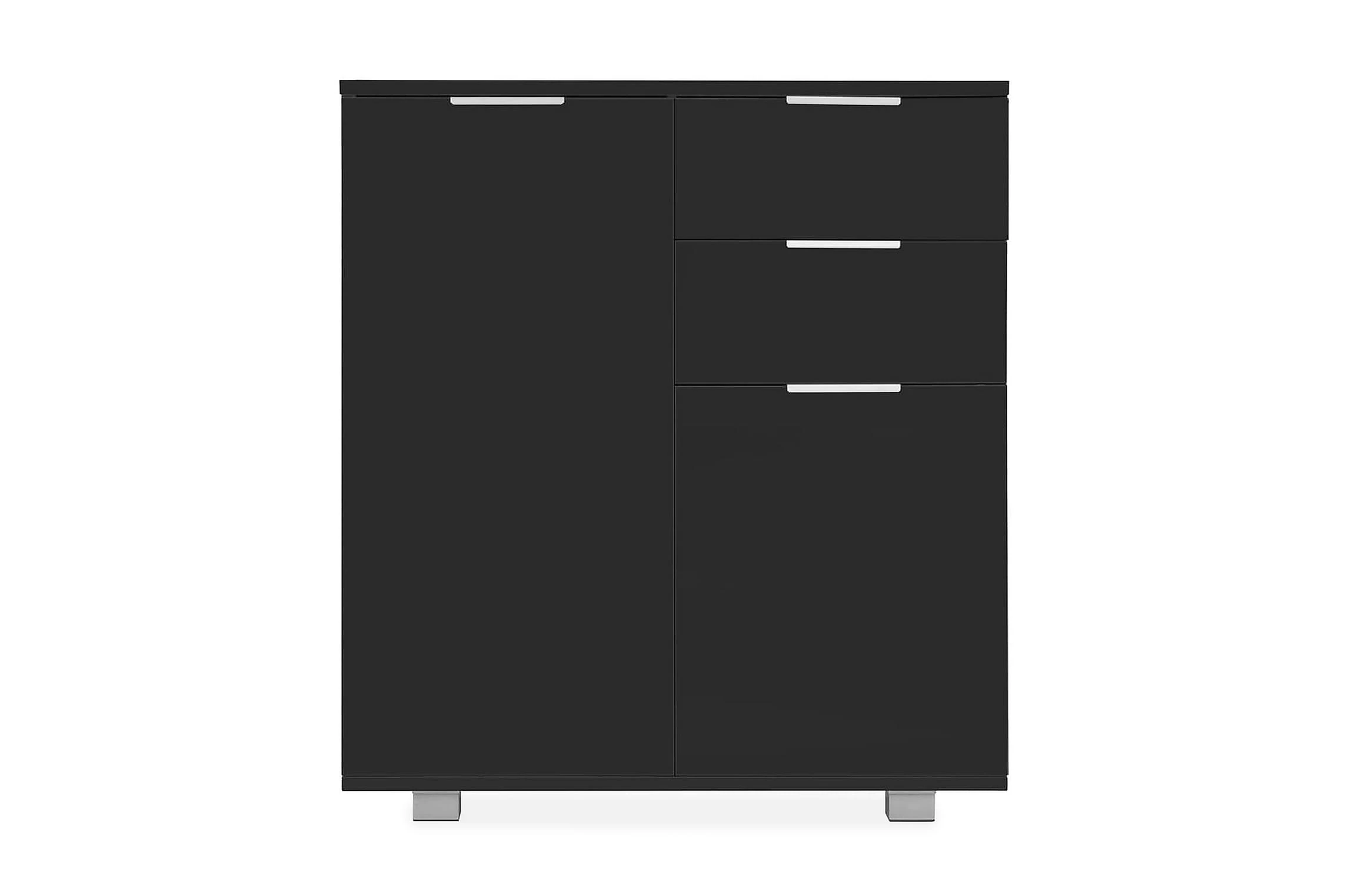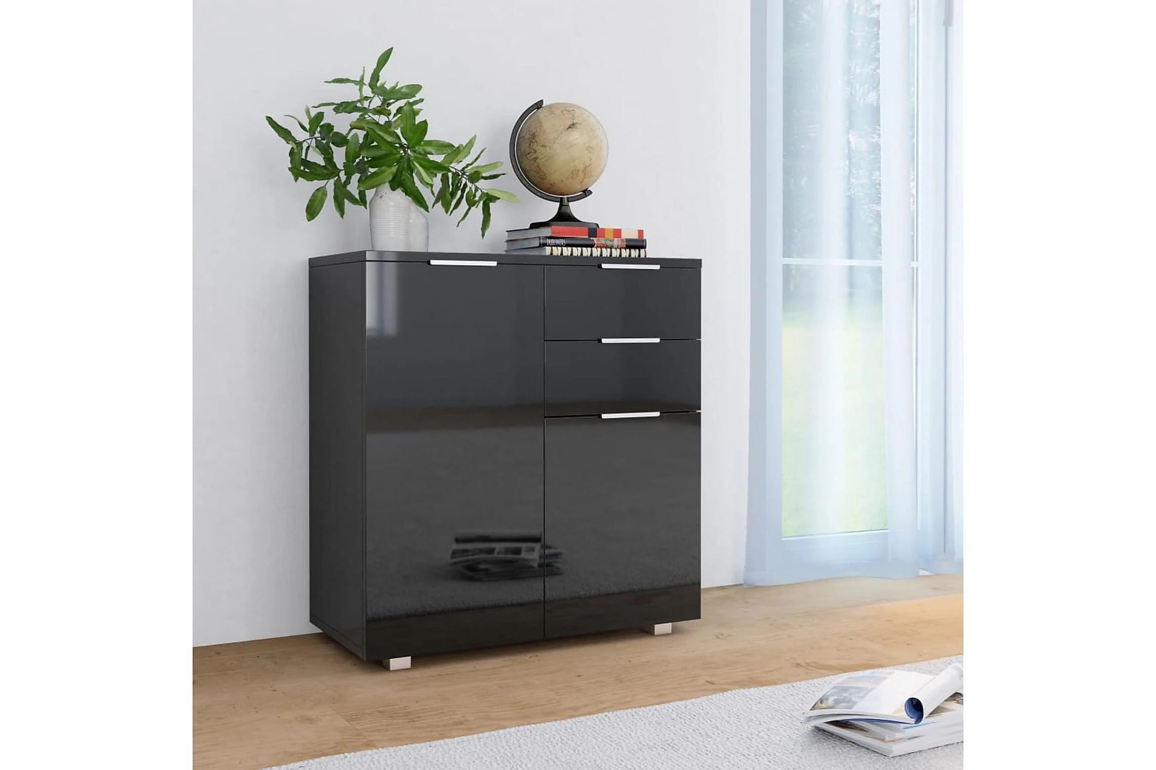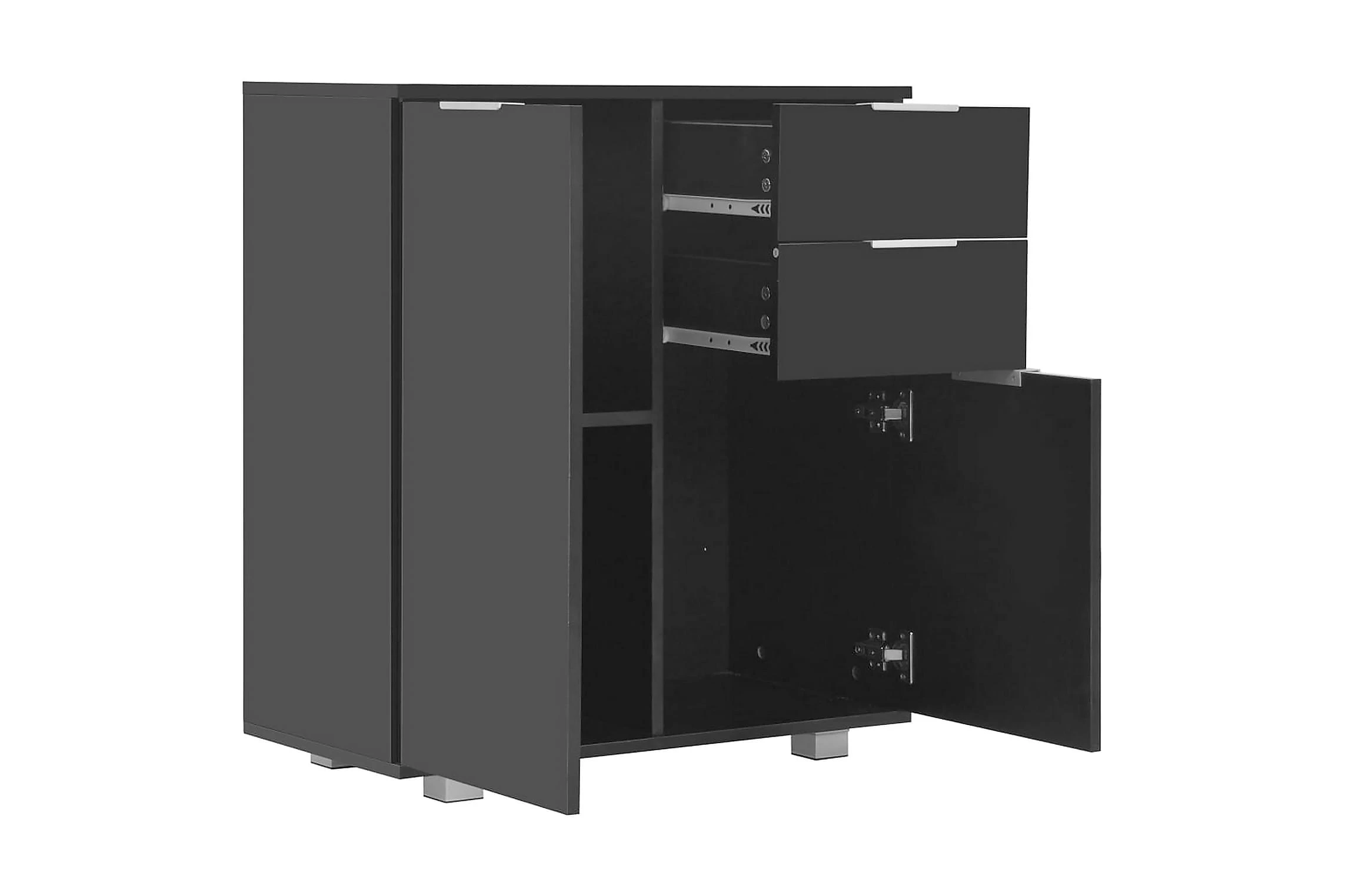 Eftersom den är tillverkad i spånskiva med en högglansig finish är byrån vacker och oerhört stadig och stabil. Dessutom är den utrustad med 2 lådor och har gott om plats för dina olika prylar, så att du kan hålla ditt rum städat. Detta förvaringsskåp i högglans är enkelt att rengöra.
