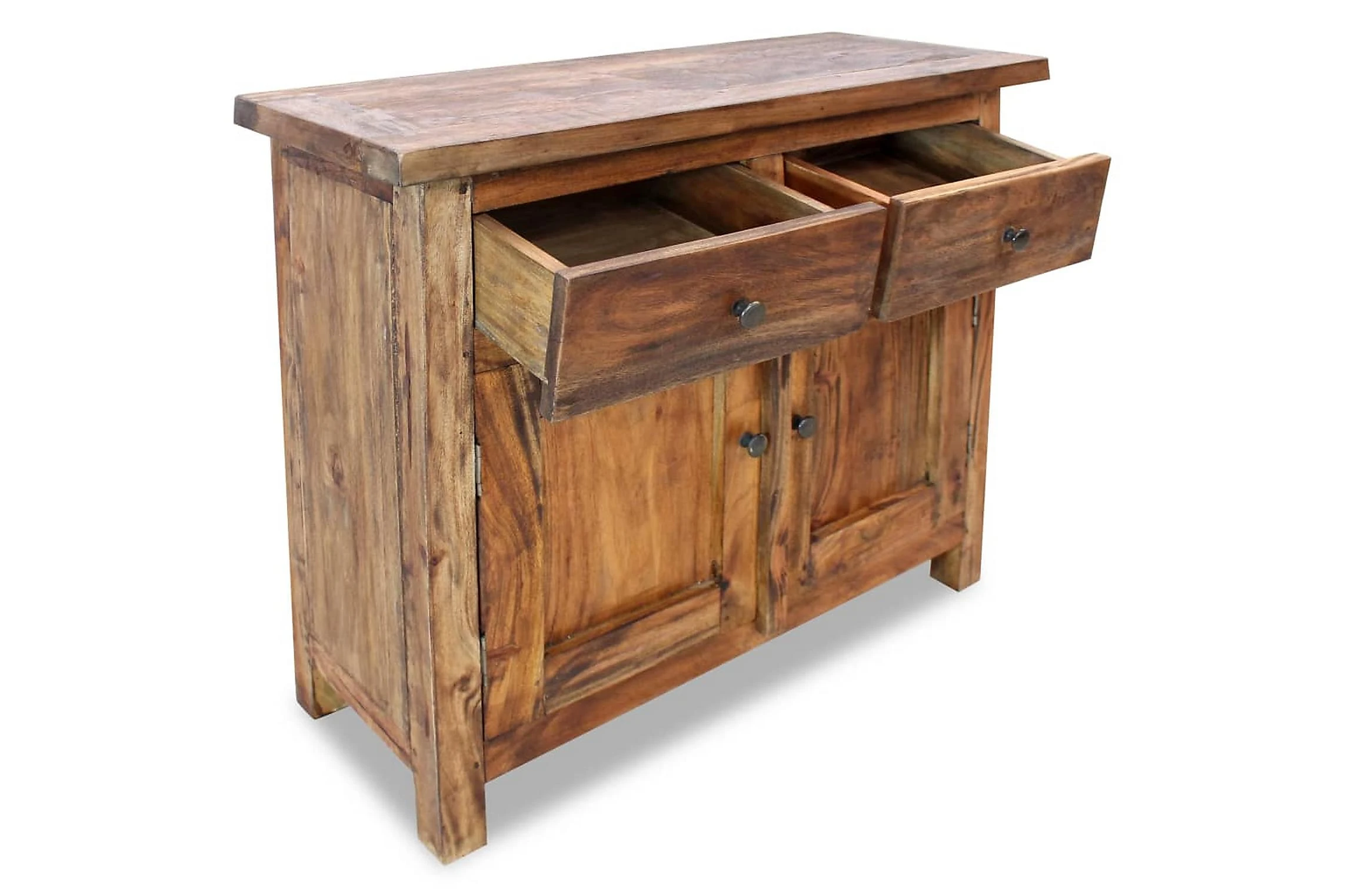 Denna träskänk är perfekt när du vill få till en rustik charm i din heminredning. Förvaringsskåpet är tillverkat i massivt återvunnet trä vilket har kännetecken från olika träslag såsom mahogny, teak, mangoträ, akacia, etc.