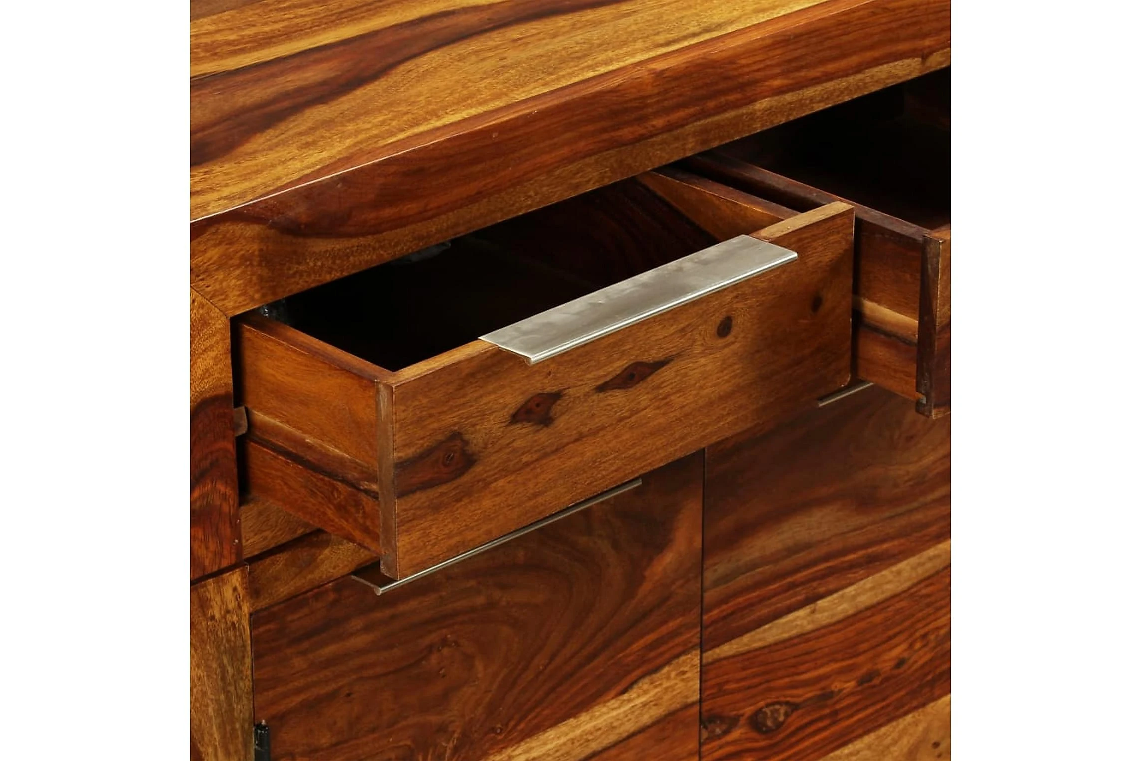 Denna träskänk i sheeshamträ är både snygg och praktisk, och kommer att bli ett utmärkt tillskott till ditt vardagsrum, matsal eller hall. Det kan också användas som skänk, soffbord, byrå etc.