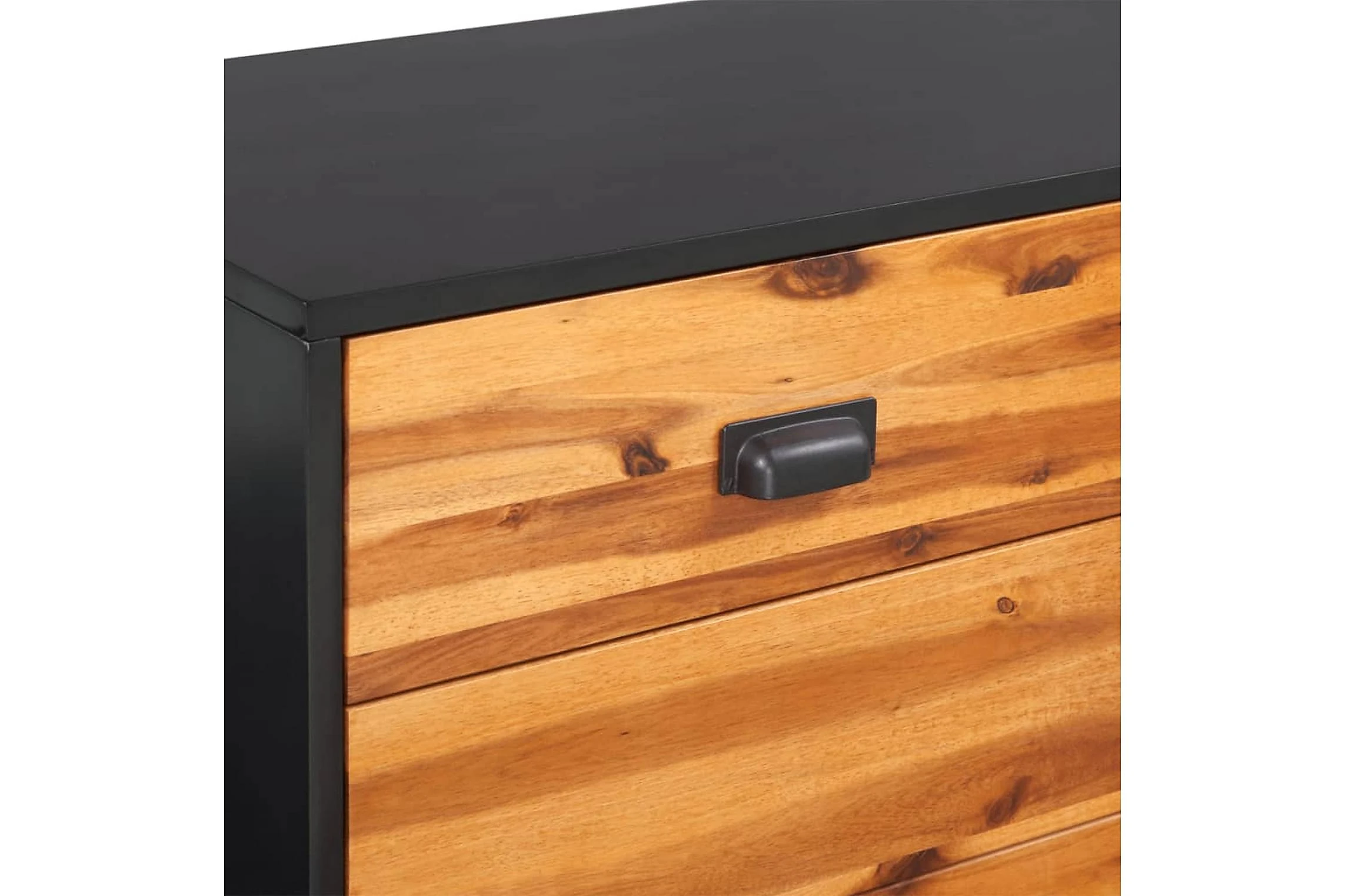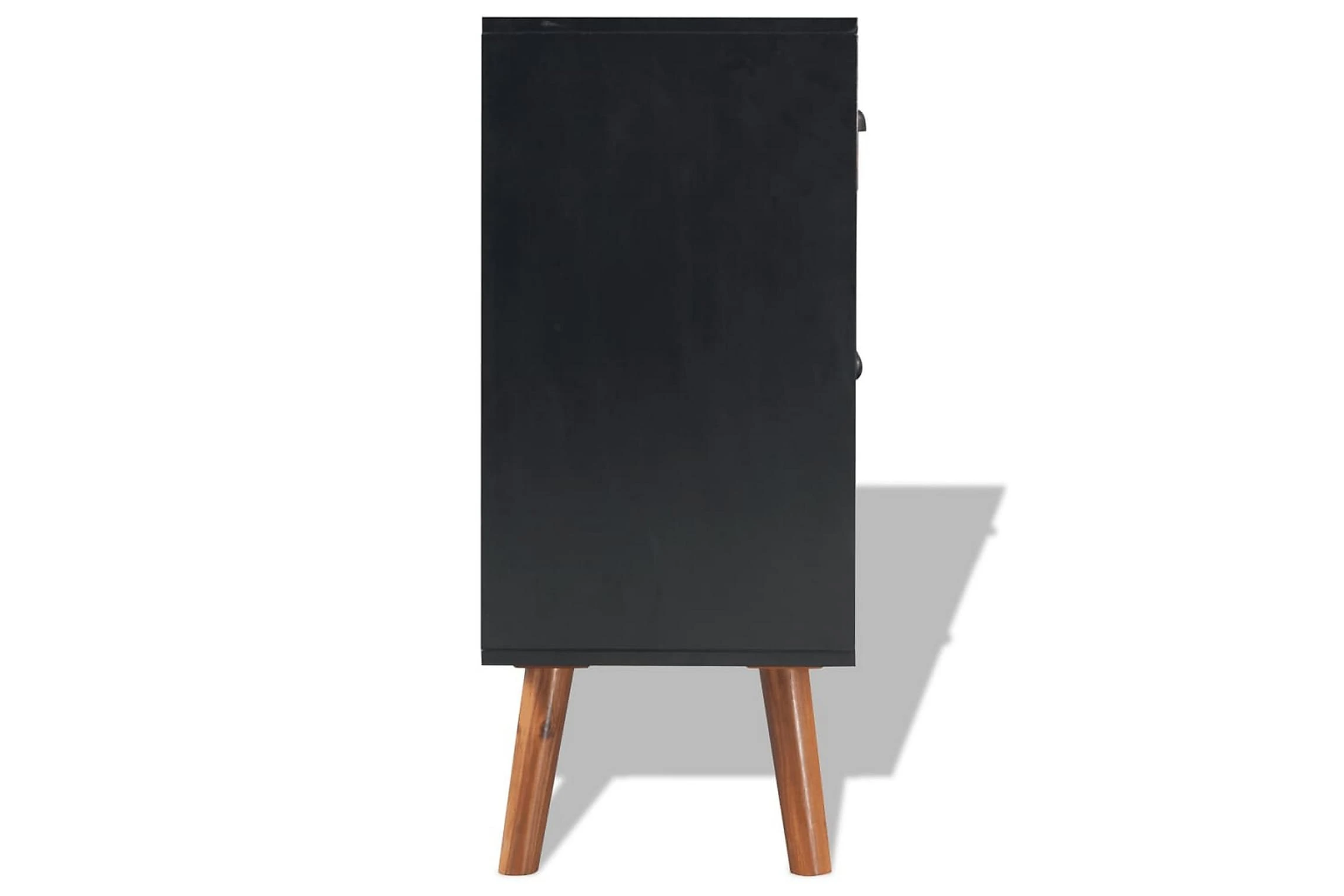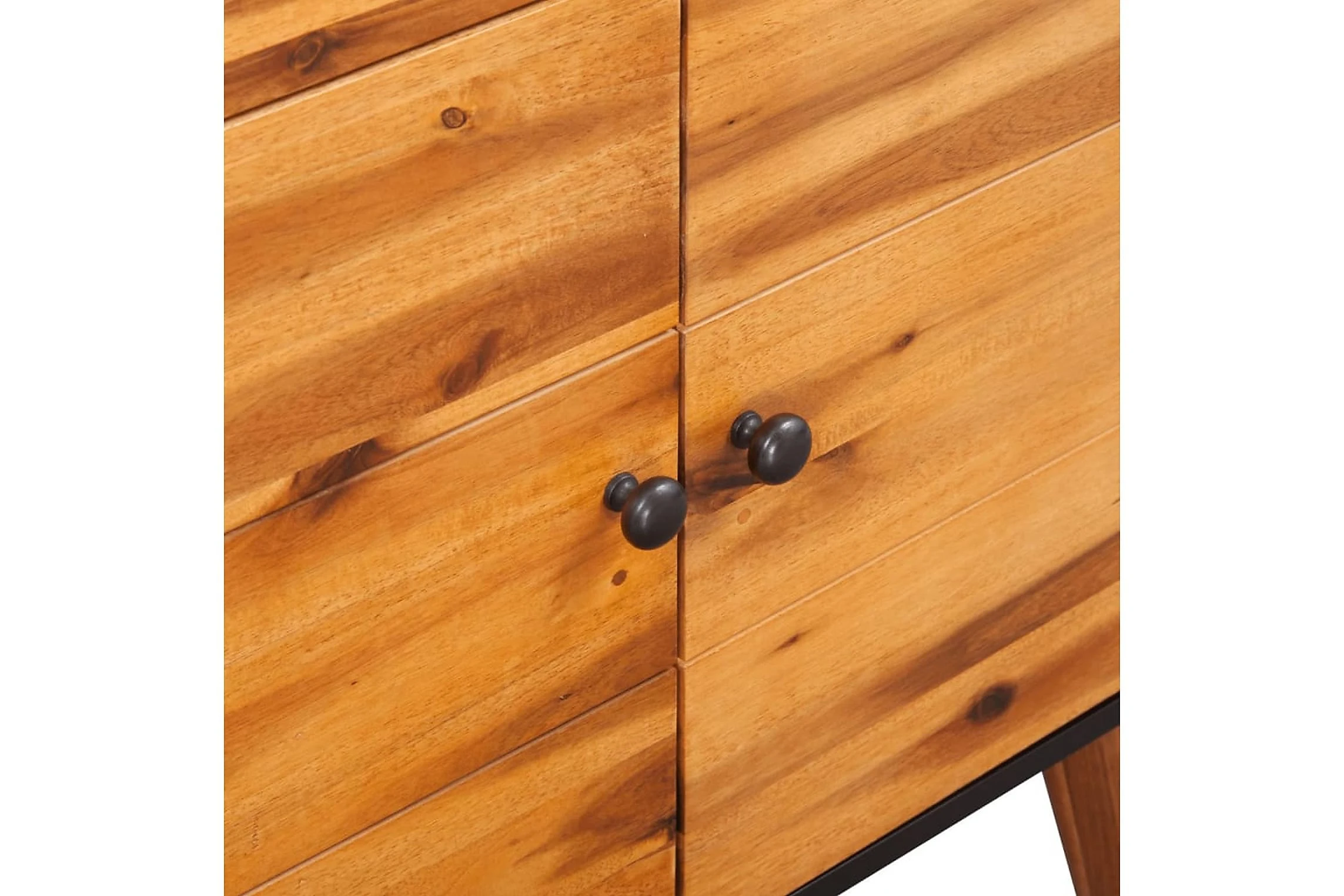 Skänken är tillverkad i massivt akaciaträ och högkvalitativ MDF, vilket gör den mycket stabil och slitstark. Den har två lådor och två skåp med dörrar, vilket ger gott om förvaringsutrymme för böcker, multimedia-enheter och andra saker. Bordsytan är en perfekt plats att ställa vackra föremål, fotoramar eller krukväxter.
