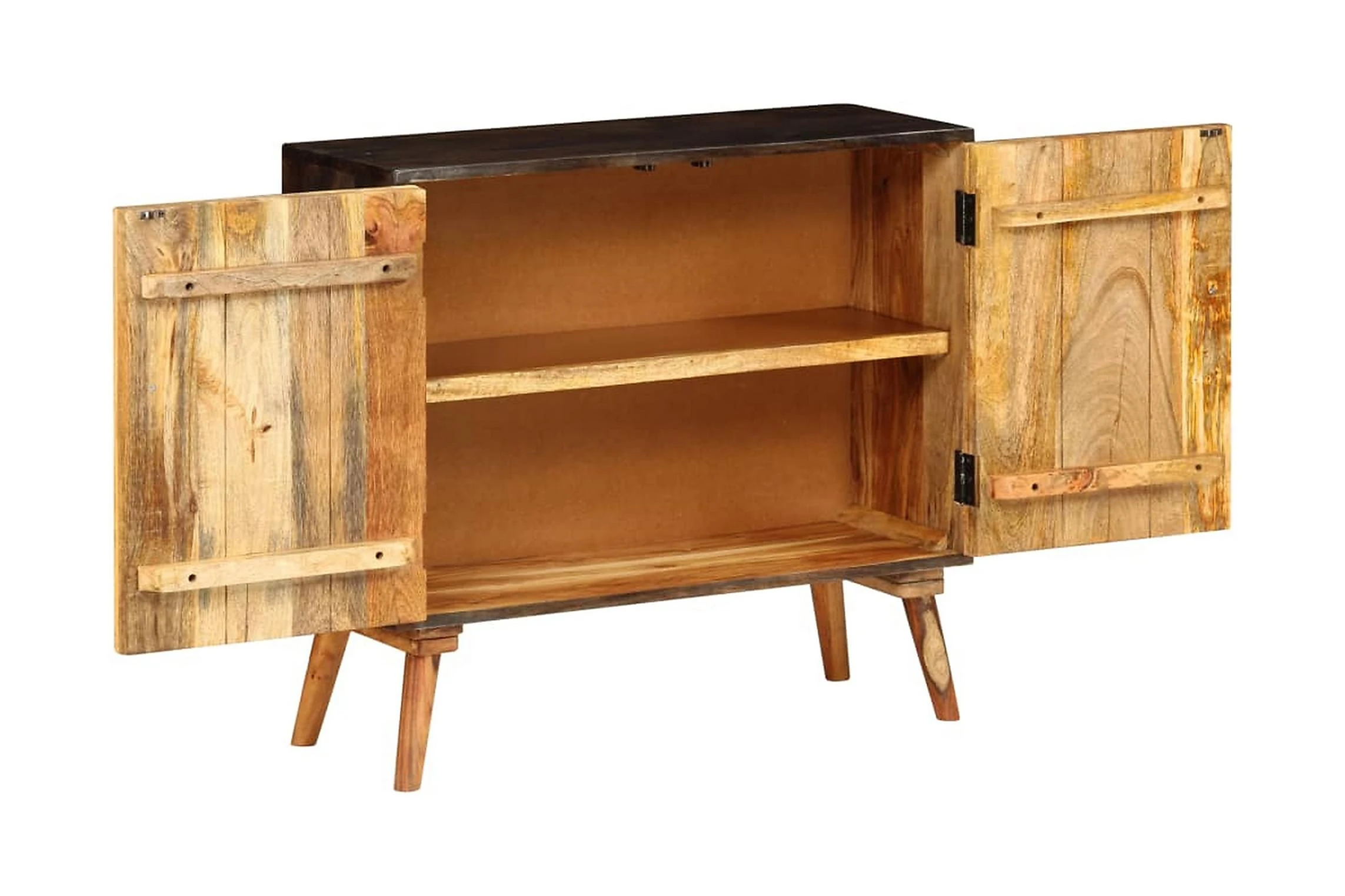 Skänken är tillverkad i massivt mangoträ och är mycket stabil och hållbar. Mangoträ är ett kompakt och robust lövträ som har vackra ådringar och konturer i brunt eller guld. Skåpet har gott om förvaringsplats för att hålla dina olika saker organiserade. Skänken ger din inredning en rustik charm. Varje steg i tillverkningsprocessen utförs med största omsorg, vare sig det är polering, målning och lackering. Monteringen är enkel.