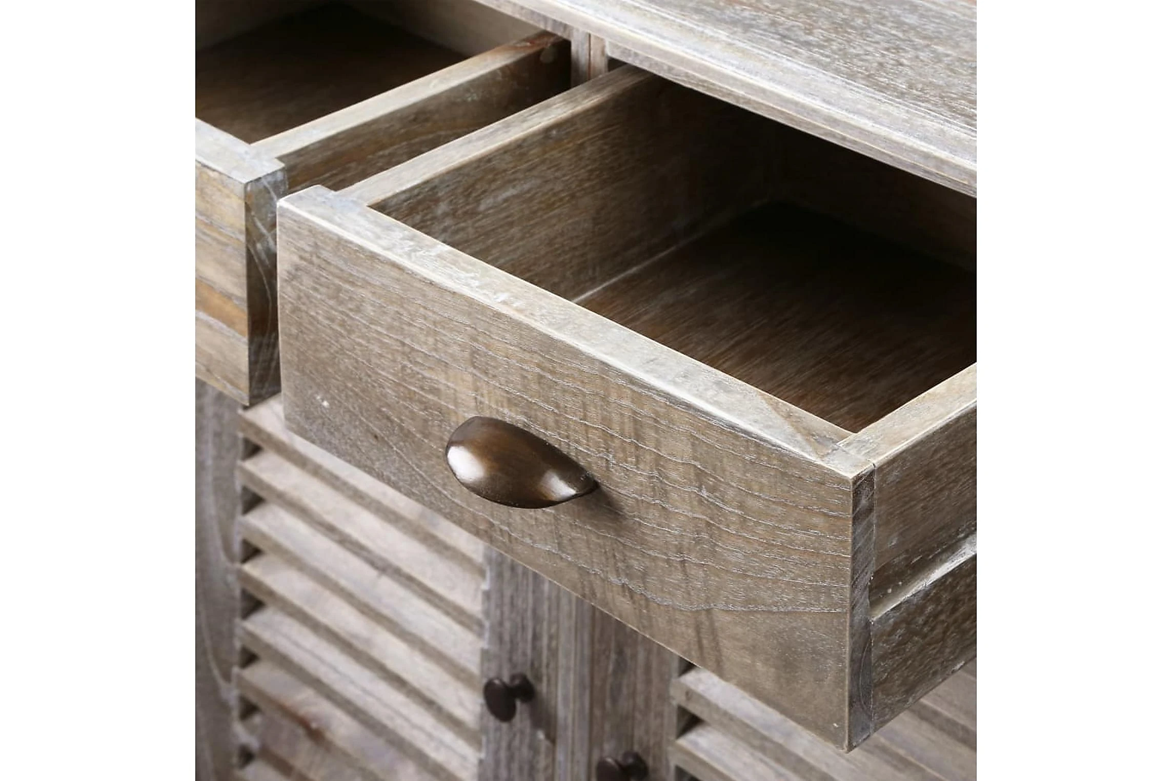 Skänken är tillverkad av massivt minditrä och är mycket stabil och hållbar. Bordsskivan är en perfekt plats att ställa fruktkorgar eller dekorativa föremål som vaser och krukväxter. Skåpet har gott om förvaringsutrymme för att hålla många olika föremål prydligt organiserade. Varje steg i tillverkningsprocessen utförs med största omsorg, vare sig det är slipning, målning eller lackering. Monteringen är enkel.