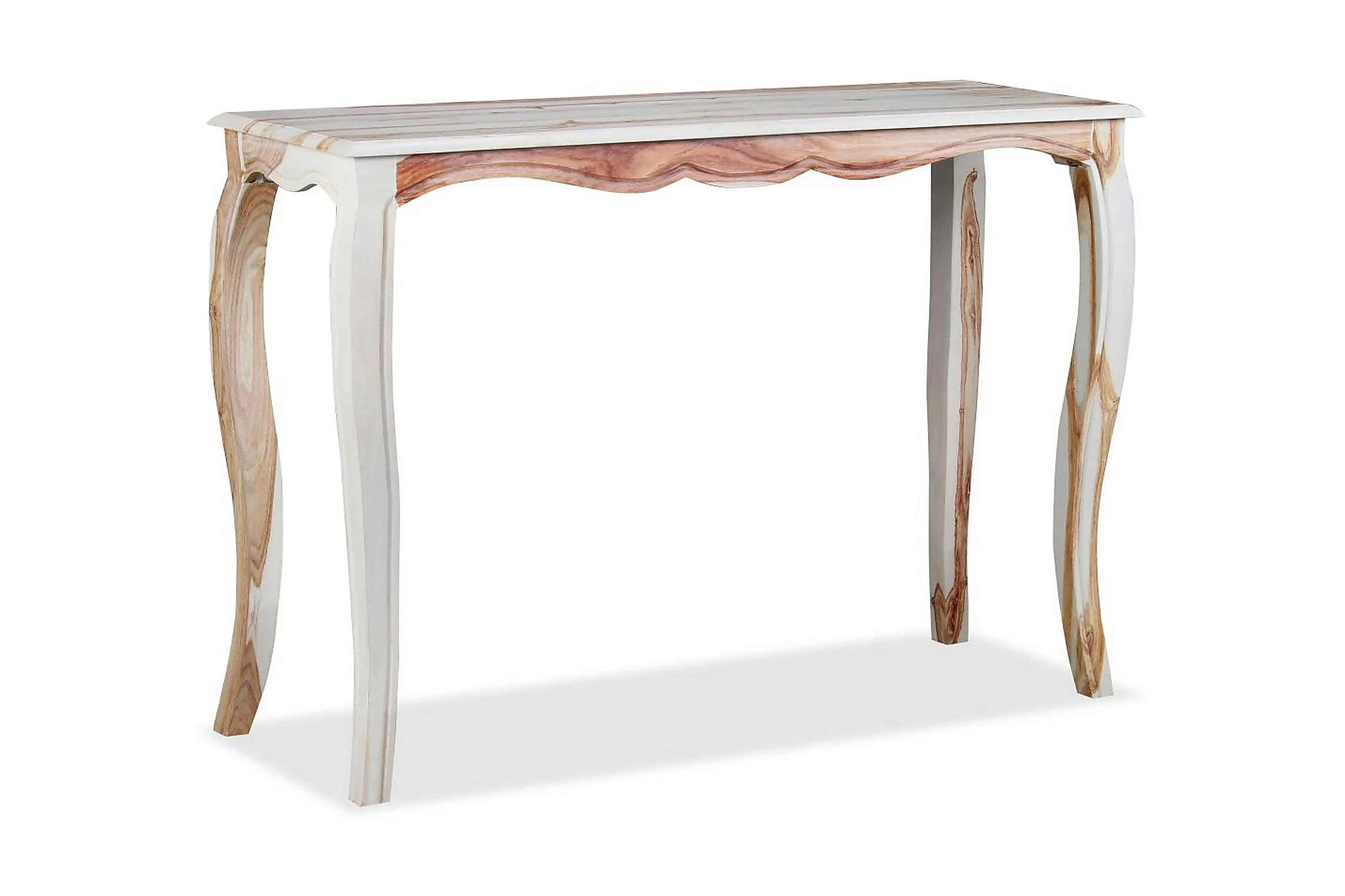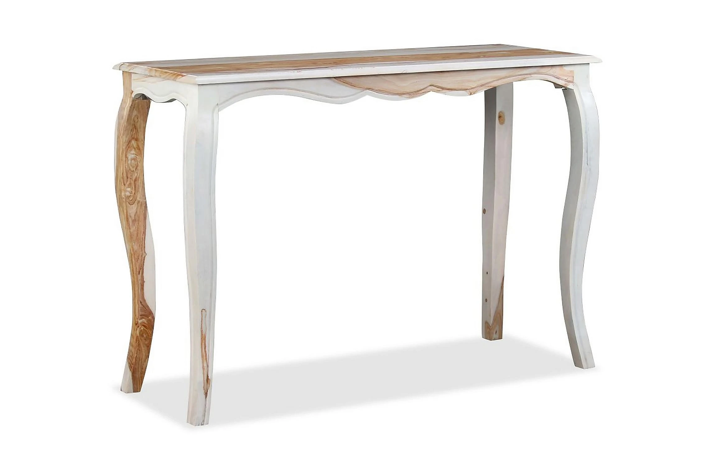 Detta avlastningsbord är gjort av massivt sheeshamträ. Sheesham, även känt som rosenträ eller palissander, är ett tropiskt hårt träslag känt för sina rika träkorn. Denna skänk har en robust skiva där du kan placera en fruktkorg, vas eller andra dekorativa saker, medan de starka träbenen bidrar till den robusta konstruktionen. Det är helt handgjort, och de vackra träkornen gör varje möbel unik och annorlunda från varandra. Monteringen är enkel.