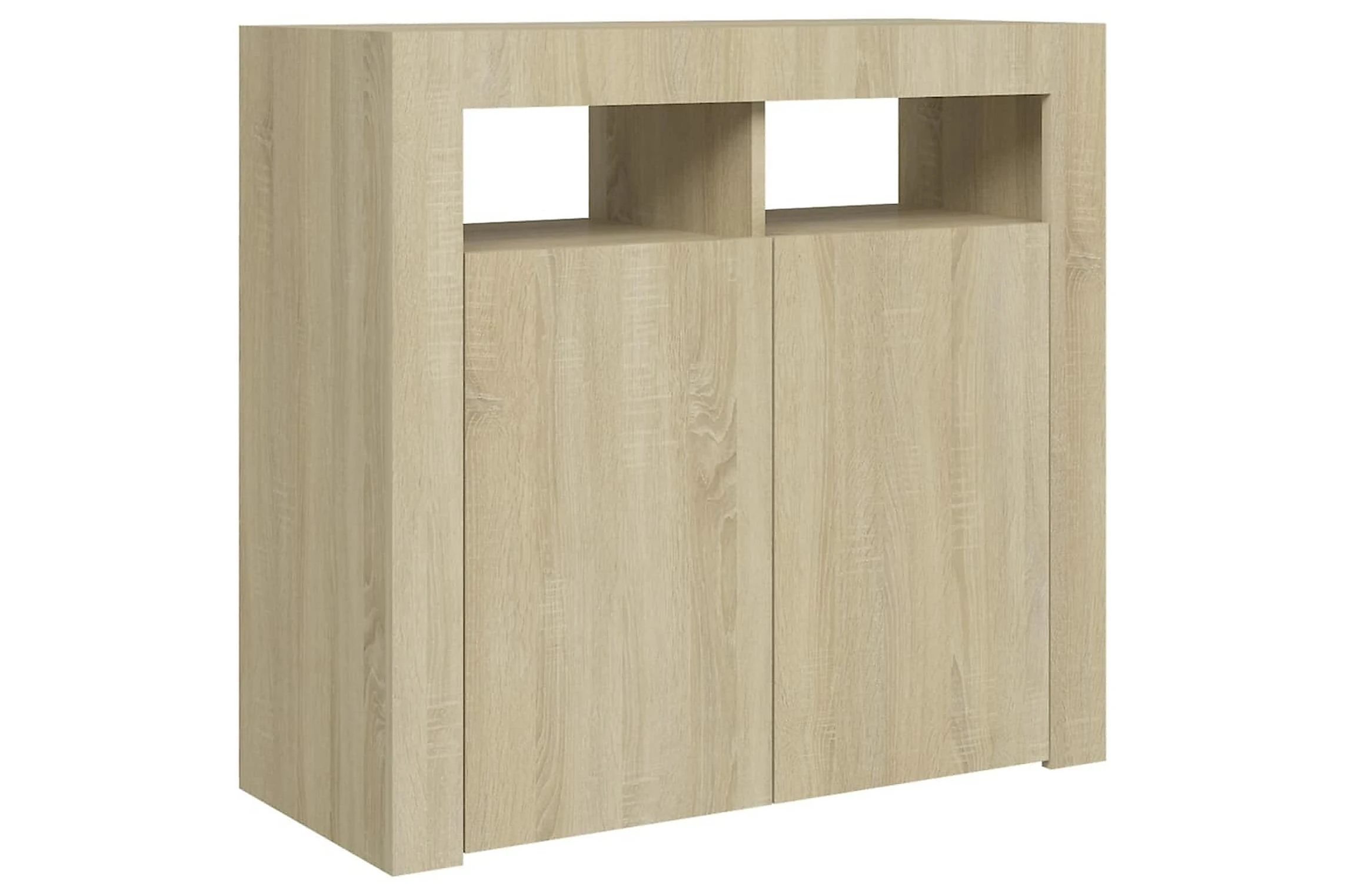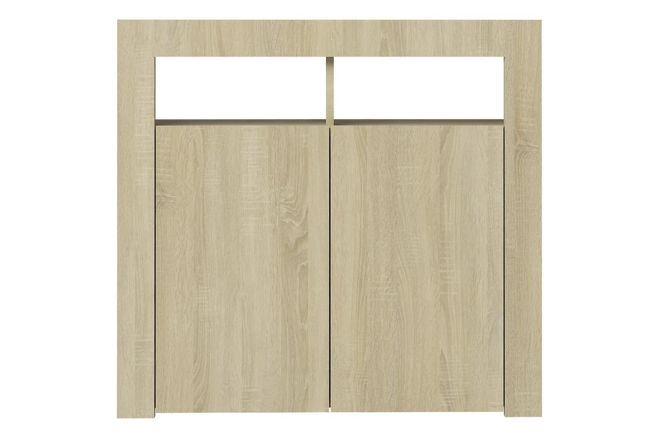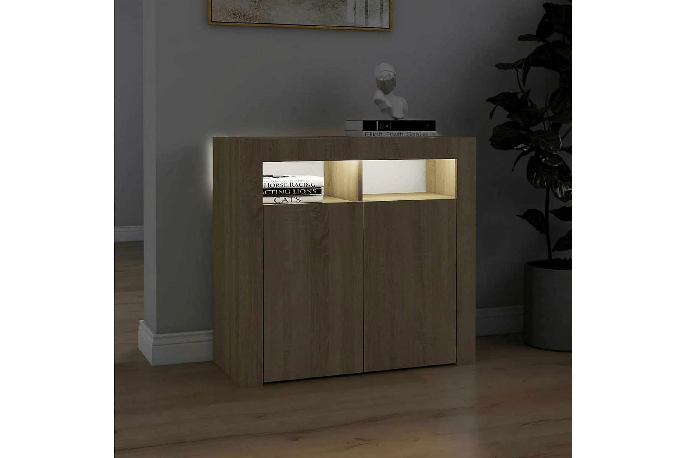 Skänkens robusta konstruktion gör den extremt hållbar och stabil. Den har också gott om lagringsutrymme för böcker, multimedieapparater och andra föremål. Den kraftiga bordsskivan är ideal för att ställa dekorativa föremål, fotoramar eller krukväxter på. Skänken har RGB LED-lampor, som har olika menyer för att ändra färg på ljuset och låta ljusfärgen justeras olika automatiskt. LED-lamporna ger det moderna utseendet och bidrar till den trendiga känslan.