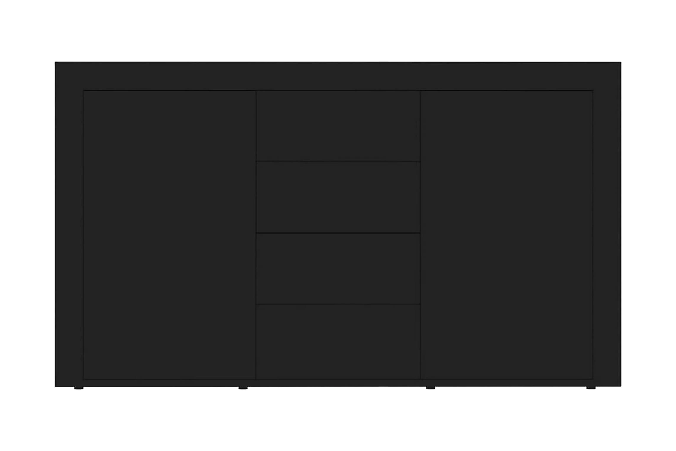 Skänken med 2 luckor och 4 lådor har gott om förvaringsplats för böcker, mediaenheter och andra saker. Den stadiga ovansidan är perfekt för att visa upp prydnadsföremål, fotoramar eller krukväxter. Skänken är byggd för att hålla tack vare dess premium spånskiva. Den kan enkelt rengöras med en fuktig trasa.