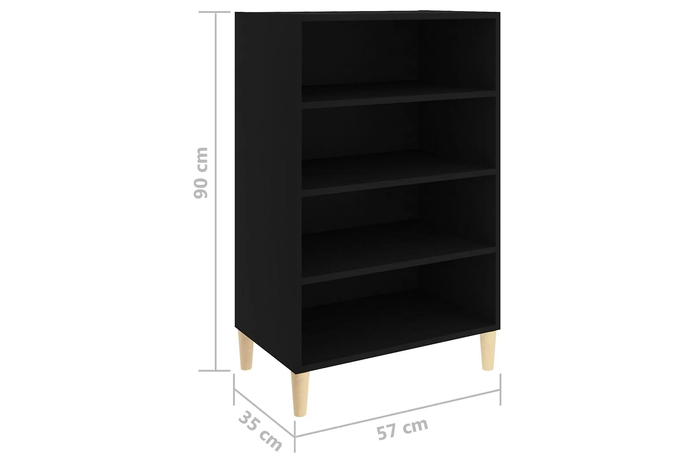 Skänken/bokhyllan är tillverkad av spånskiva, vilket gör den robust och hållbar för många års användning. Benen i trä bidrar till extra stabilitet. Skänken har 4 hyllor med gott om förvaringsplats. Den robusta skivan är en perfekt plats att ställa prydnadssaker, fotoramar eller krukväxter på. Skänken kan enkelt torkas av med en fuktig trasa.