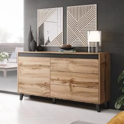 Denna moderna skänk har en elegant och klassisk design och blir ett dekorativt och praktiskt tillskott i din inredning.