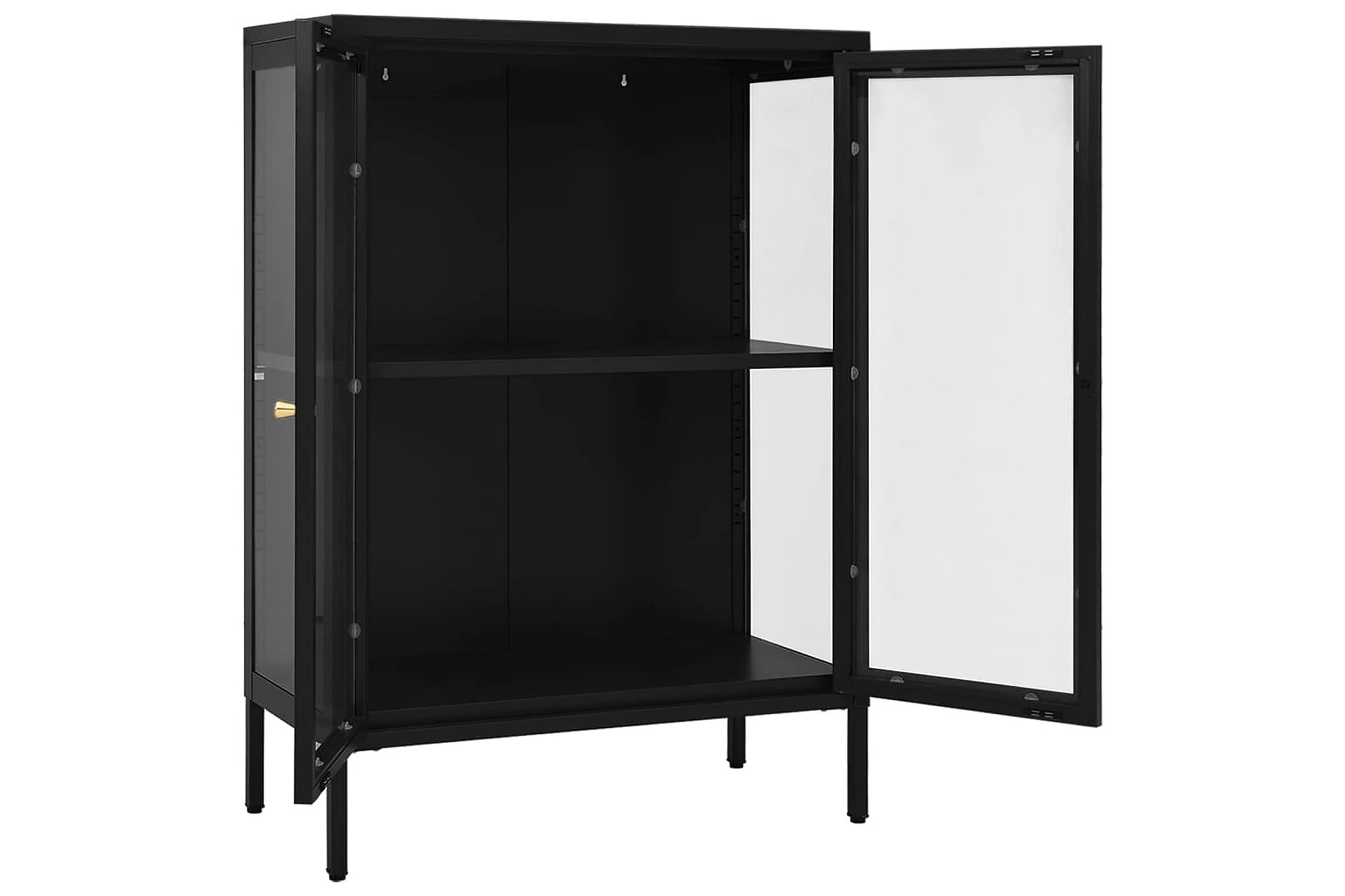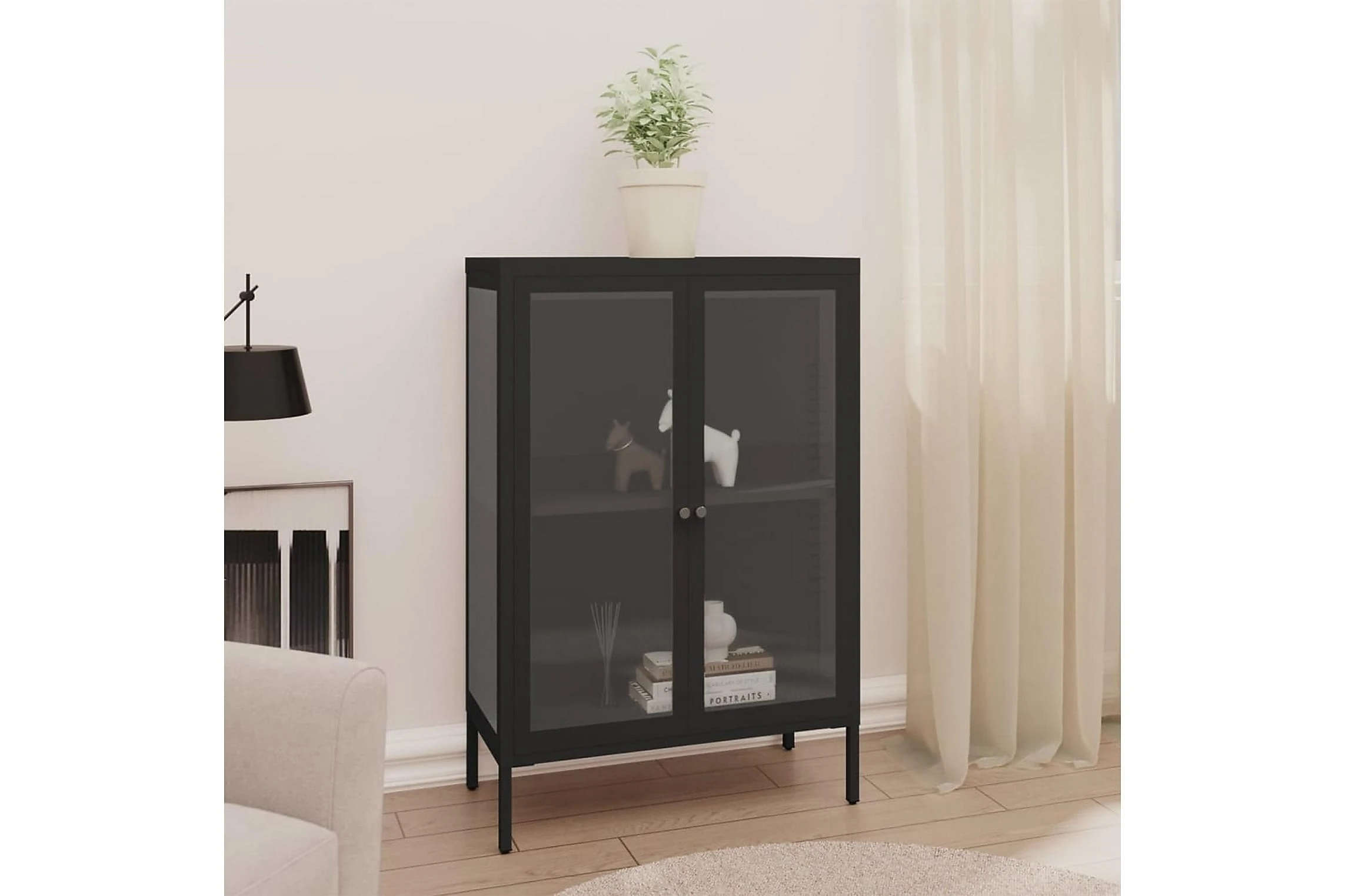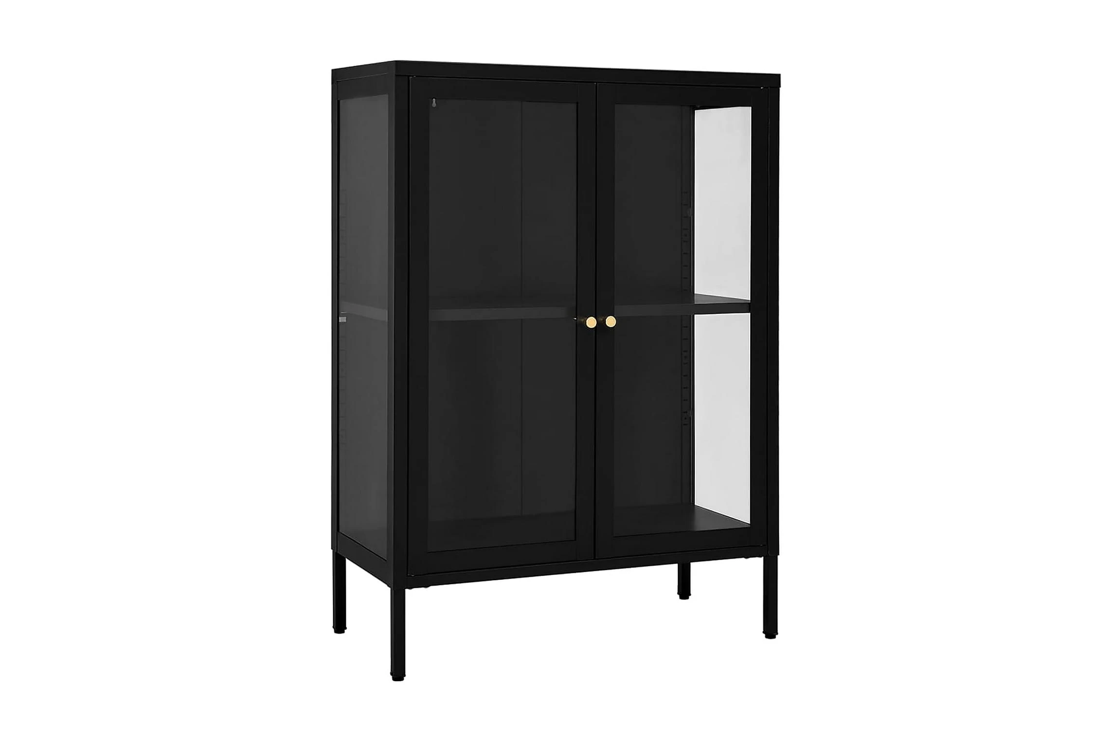 Detta förvaringsskåp är tillverkat av stål och är robust och hållbart, vilket säkerställer många års användning. Skåpet har fack bakom glasdörren med gott om plats för att förvara och visa upp böcker, tidskrifter, dvd:er, vaser och andra prydnadssaker organiserat och inom räckhåll. Dessutom kan hyllas installeras i olika höjder för att än dra storleken på förvaringsutrymmet. Fötterna kan enkelt justeras och hjälper till att hålla skåpet stabilt. Dessutom torkas det enkelt av med en fuktig trasa.