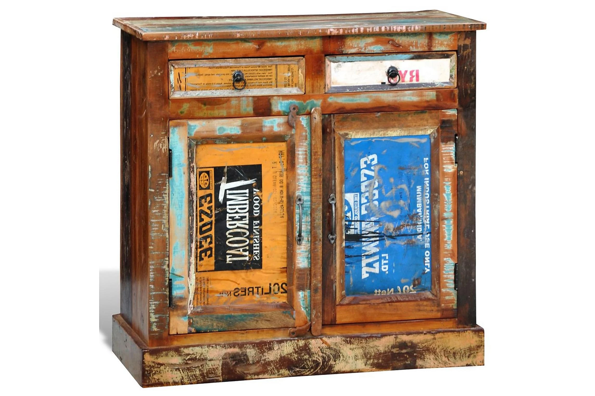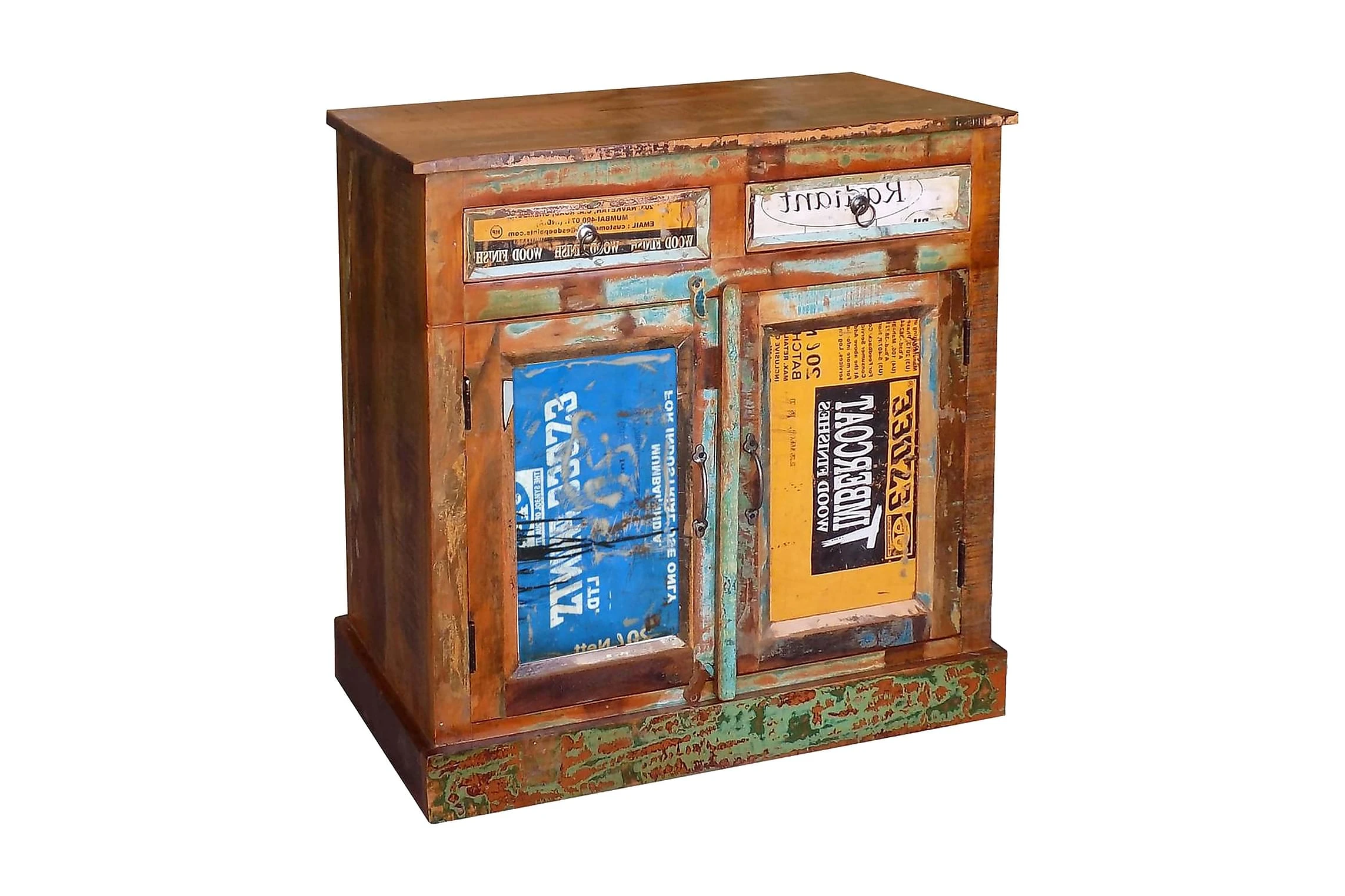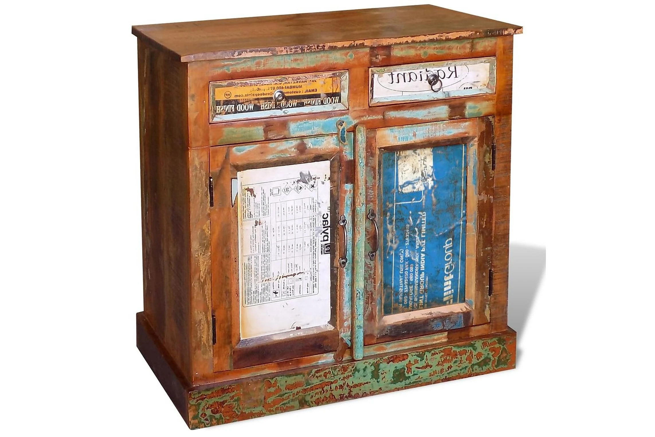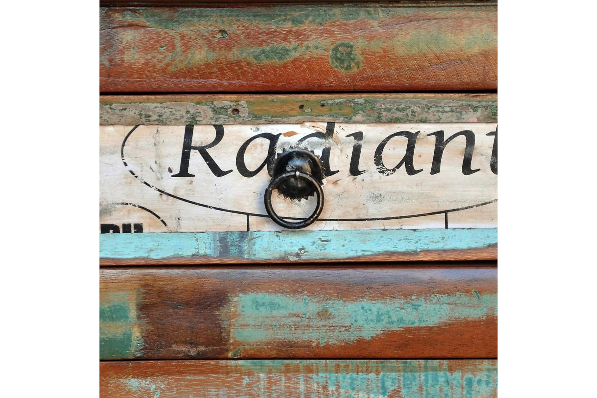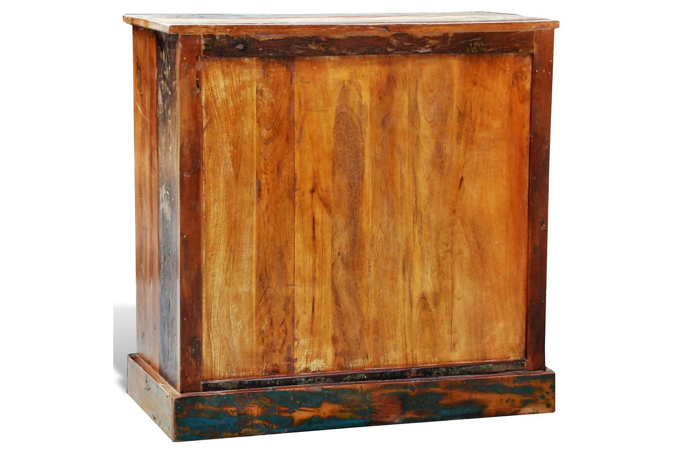 Denna skänk i antik stil levereras komplett med två lådor och två luckor, den erbjuder dig gott om förvaringsutrymme och hjälper dig att hålla dina prylar i ordning. Du kan också ställa din datorn, ipad, böcker, toalettartiklar eller dekorationer på den stadiga ovansidan. De två luckorna med dörrbultar säkerställer säkerhet. Skänken är tillverkad i återvunnet trä vilket betyder att varje möbel är unik och skiljer sig något från de andra. Möbler tillverkade av återvunnet trä har karaktärsdrag från olika träslag såsom sheesham, teak, palisander, mangoträ, akacia, ädelträ, etc. Återvunnet trä är massivt, stadigt, hållbart och vackert. Spikhål och synlig ådring ger möbeln en historia och bjuder in ännu en generation att genomsyra den med sin alldeles egen sådan. Den här möbeln kommer att visa att du förstår koncept såsom resursskydd, miljöskydd och hållbar utveckling. Dessutom tillför det rena hantverket en spektakulär, exotisk vintagestil till skänken. Varje process för återkombinering, polering, målning och vaxning är omsorgsfullt utförd. Oavsett om du har skänken i matsalen eller i sovrummet, kommer skänken i trä vara ett bra val. Viktig anmärkning: Eftersom varje del är handgjord med en unik blandning av återvunnet trä, är varje skänk något annorlunda i färg. Leveransen är slumpartad.