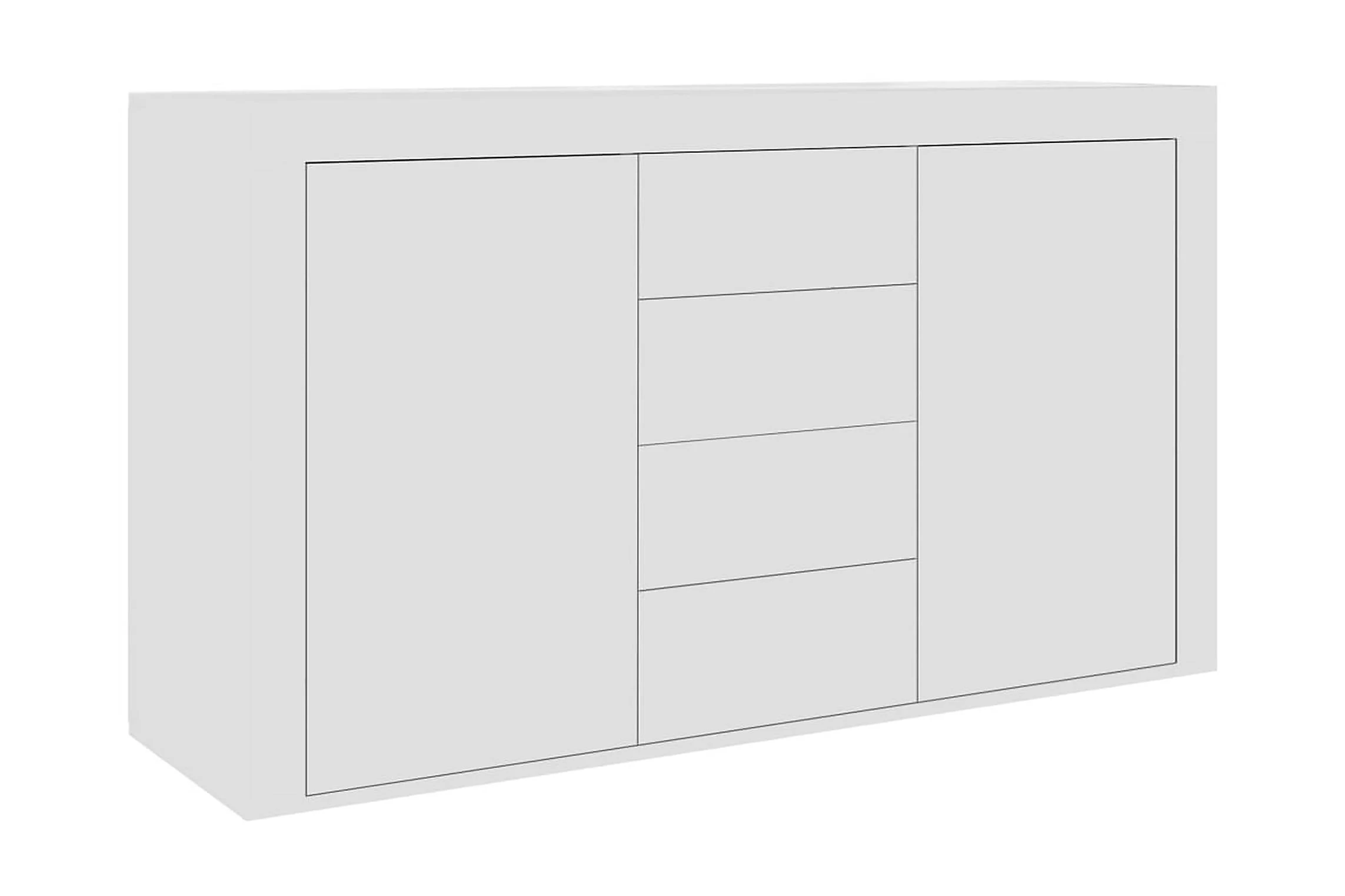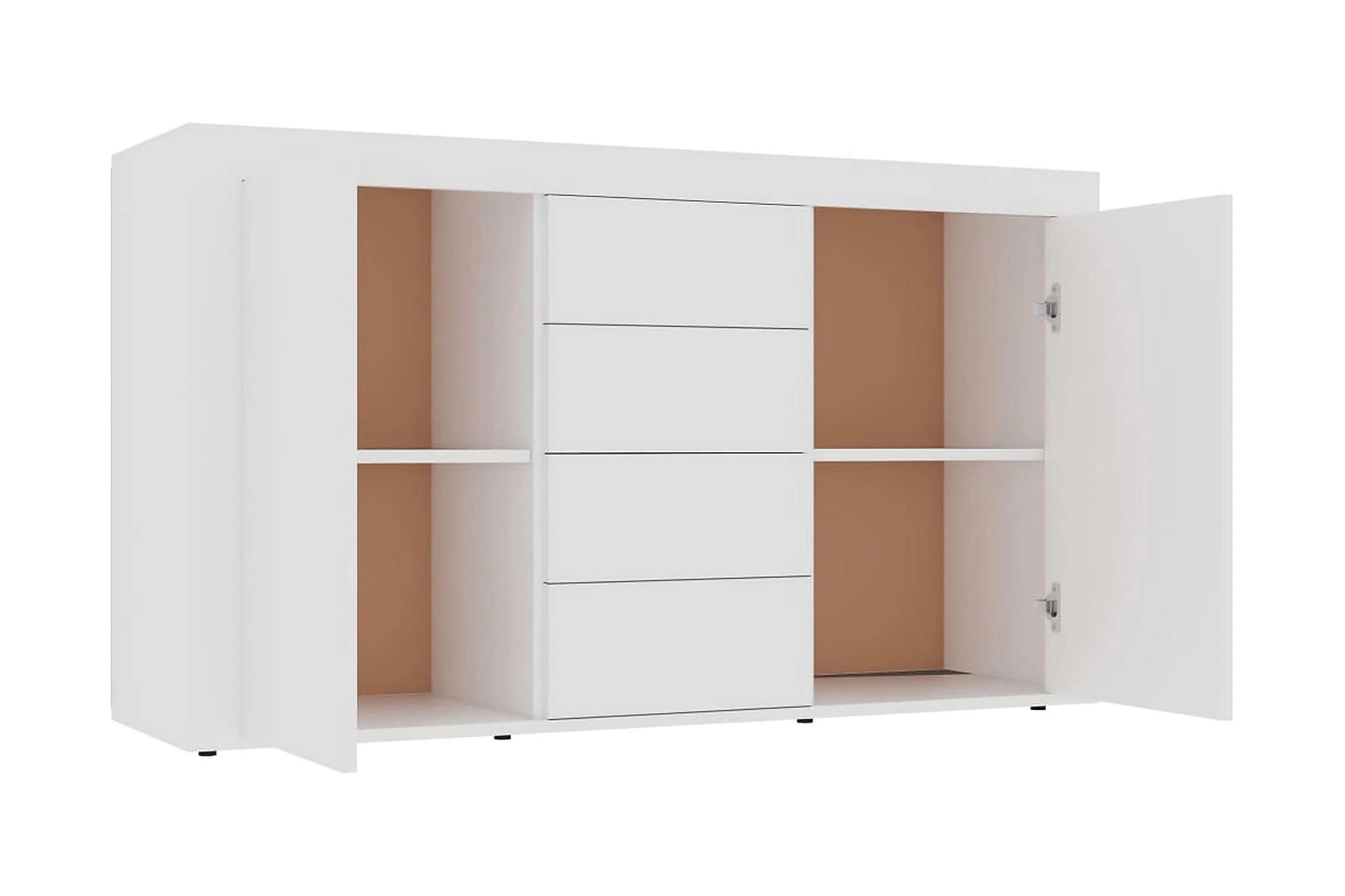 Skänken med 2 luckor och 4 lådor har gott om förvaringsplats för böcker, mediaenheter och andra saker. Den stadiga ovansidan är perfekt för att visa upp prydnadsföremål, fotoramar eller krukväxter. Skänken är byggd för att hålla tack vare dess premium spånskiva. Den kan enkelt rengöras med en fuktig trasa.