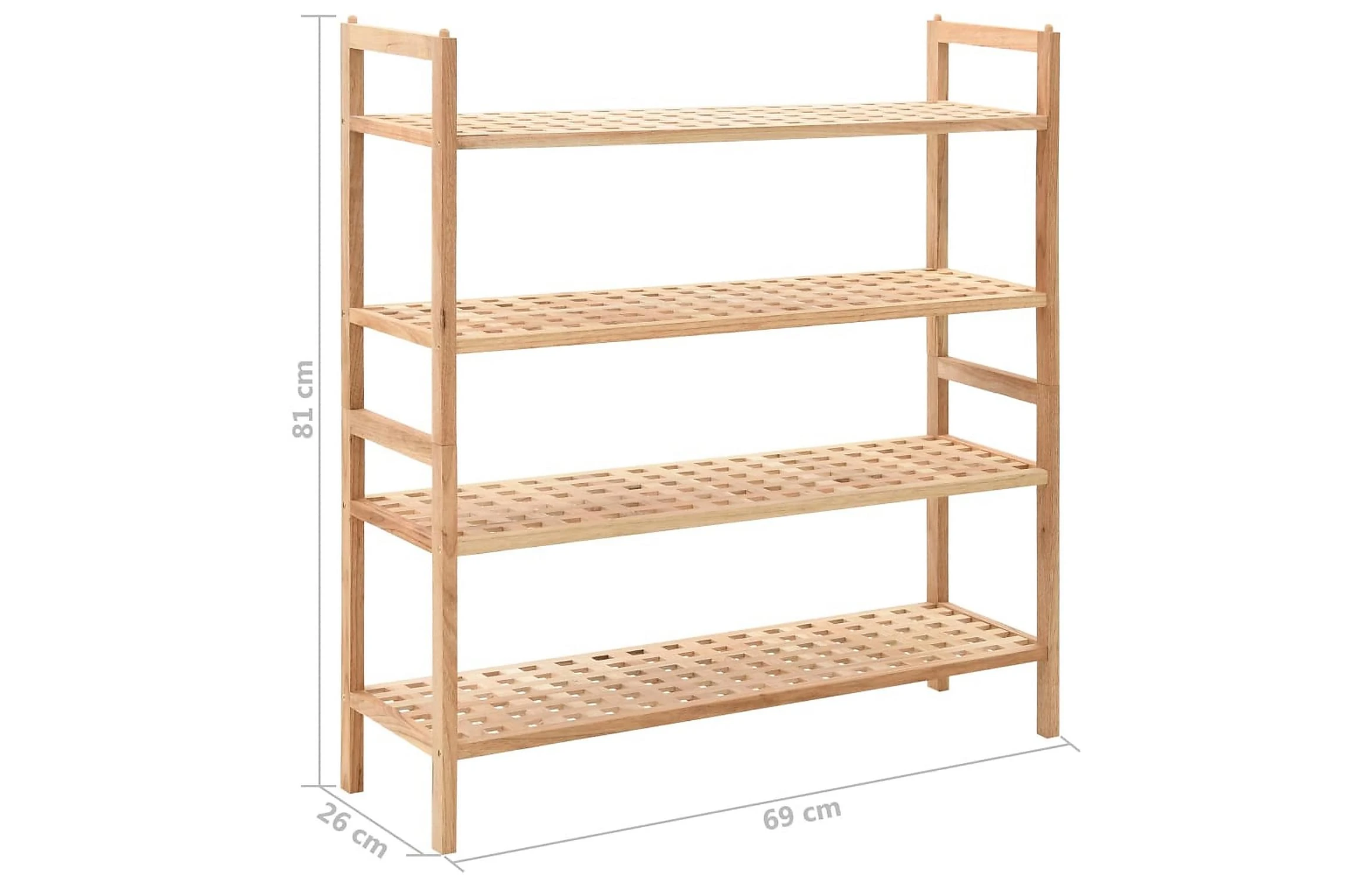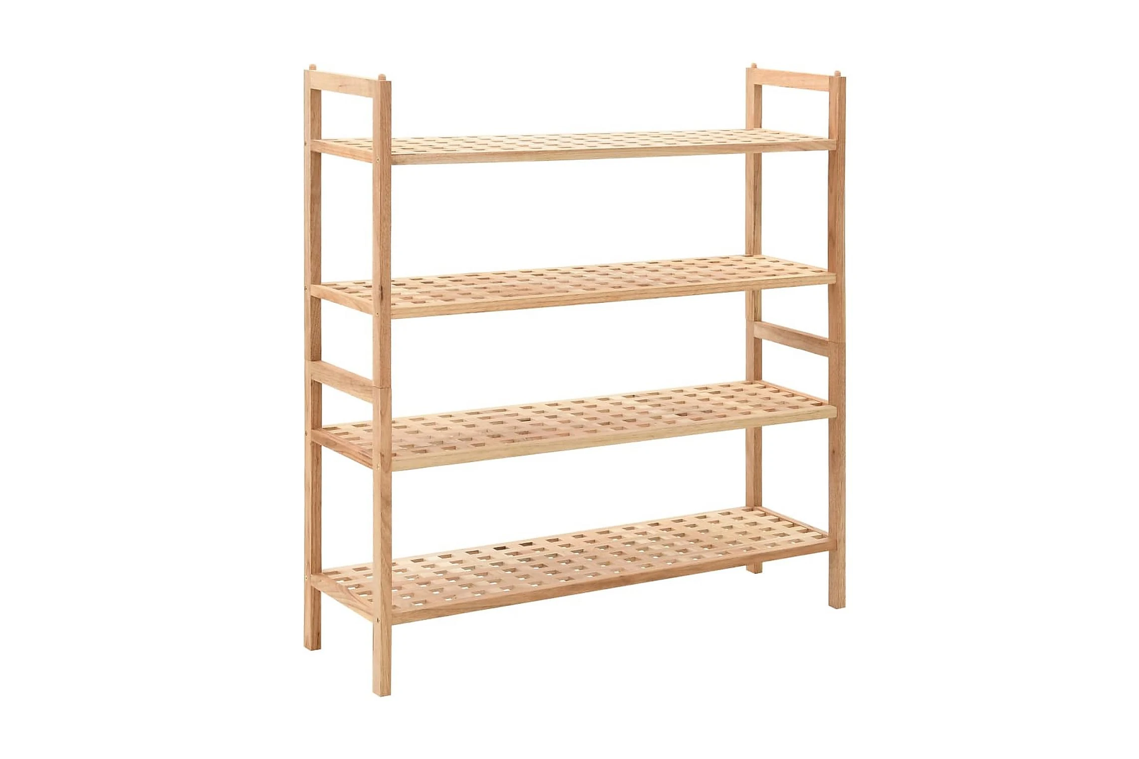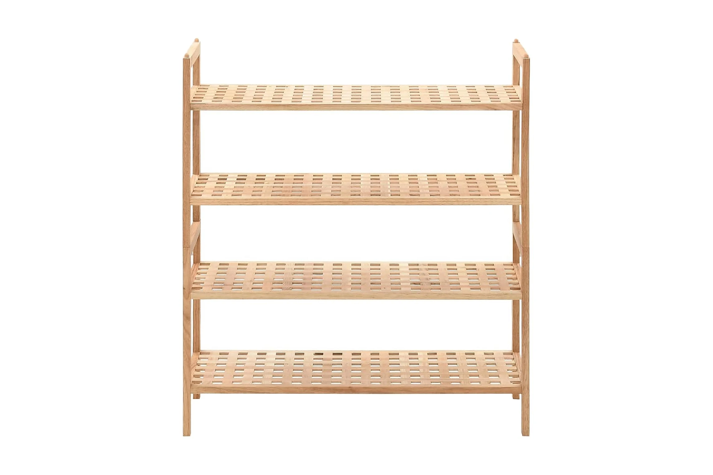 Skohyllan i trä har 4 hyllor, vardera med en plattform med rutdesign för att placera dina skor och hålla dem ventilerade. Skohyllan är platsbesparande tack vare sin kompakta design.