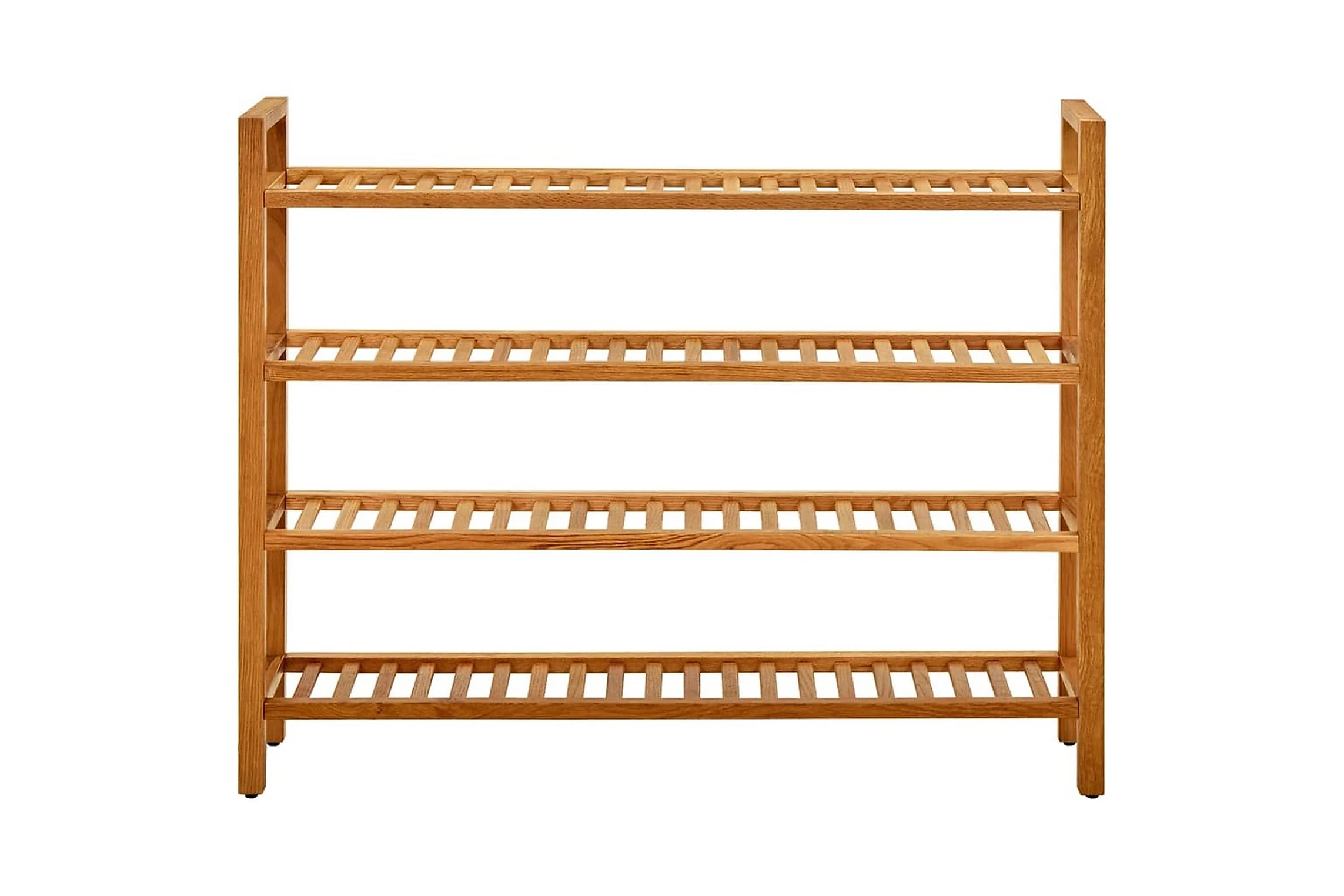 Skohyllan har skickligt utformats av hållbar, massiv ek och är väldigt funktionell. Tack vare dess kompakta design och handtag, tar detta skoställ väldigt liten plats och är enkelt att flytta runt. De stadiga hyllorna är perfekta för att hålla dina skor välventilerade. Med denna skohylla behöver du inte vara orolig för att hela huset kommer bli belamrat med skor.
