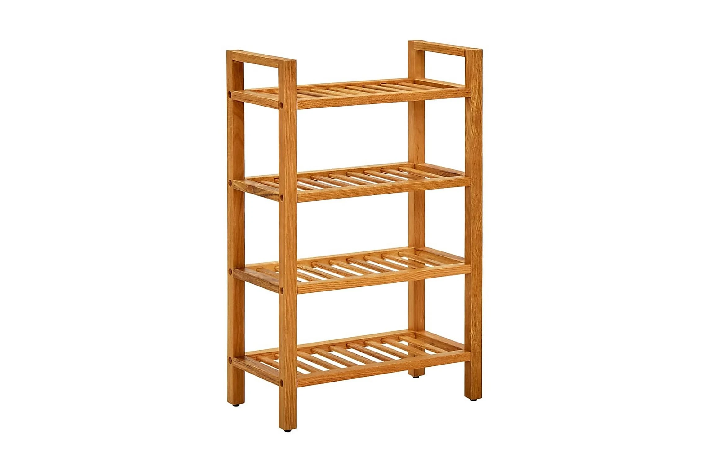 Skohyllan har skickligt utformats av hållbar, massiv ek och är väldigt funktionell. Tack vare dess kompakta design och handtag, tar detta skoställ väldigt liten plats och är enkelt att flytta runt. De stadiga hyllorna är perfekta för att hålla dina skor välventilerade. Med denna skohylla behöver du inte vara orolig för att hela huset kommer bli belamrat med skor.