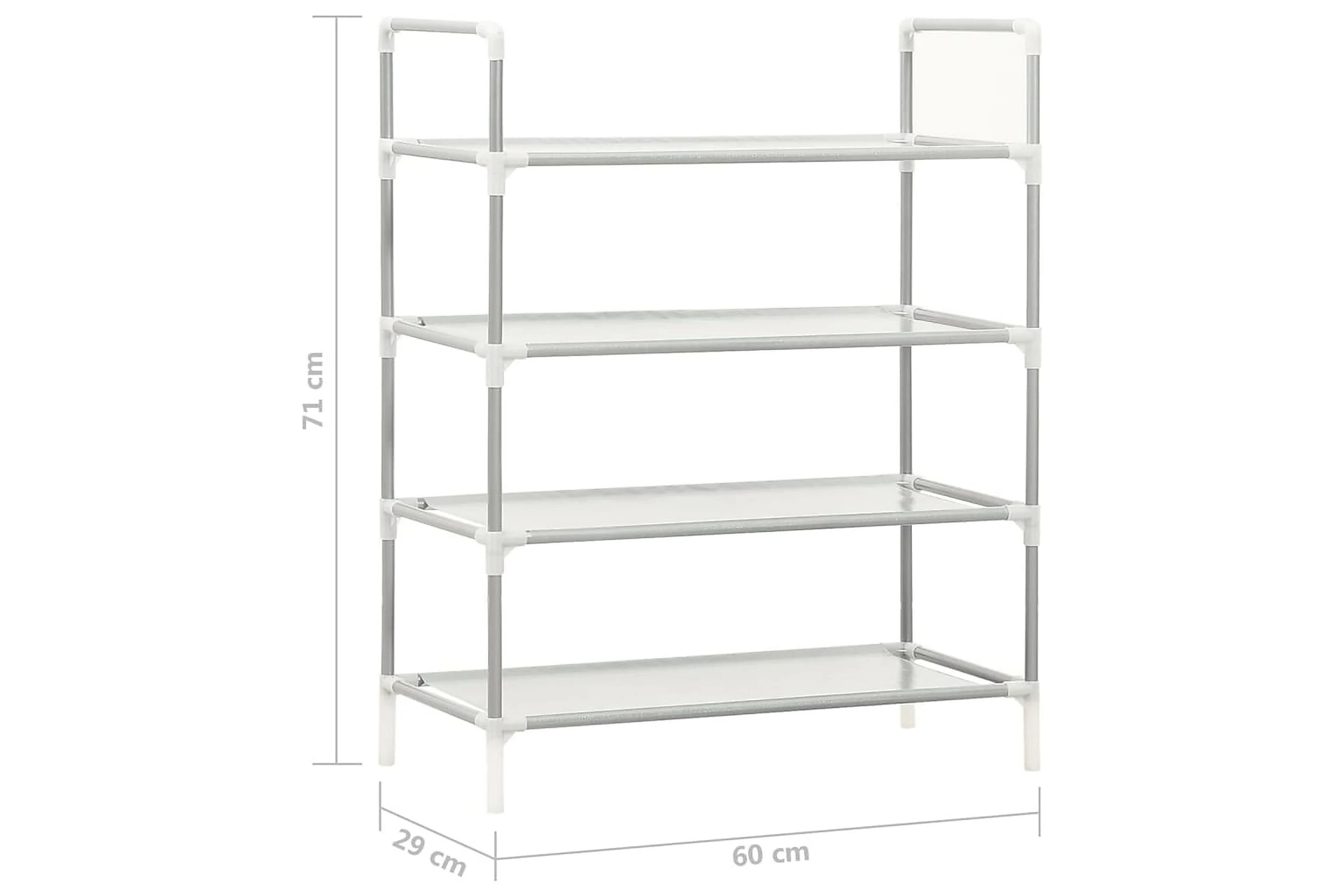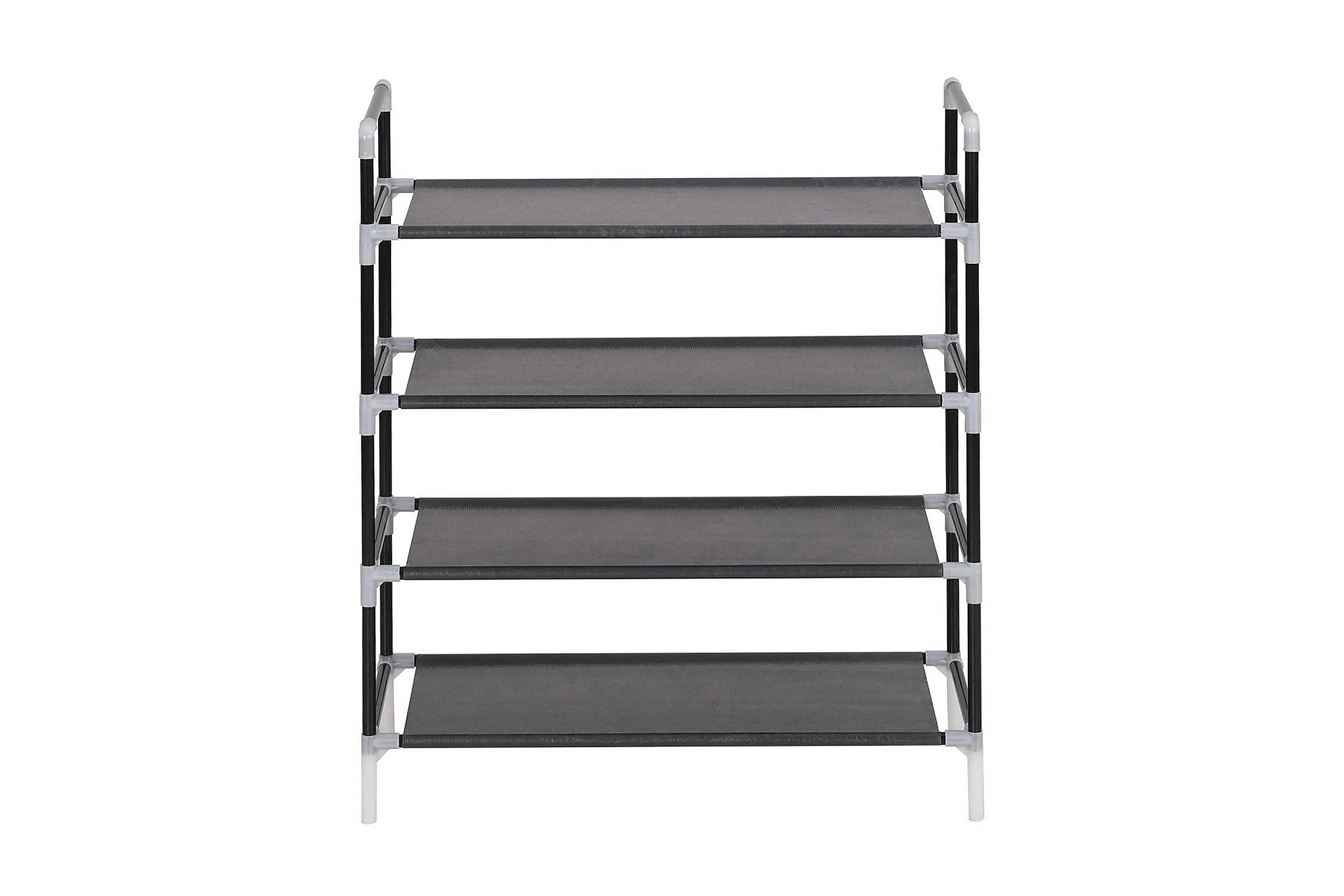 Den har en rörformad metallram, som är lätt men robust, vilket gör skostativet ganska hållbart och enkelt att flytta runt. Den har fyra generösa hyllor tillverkade i miljövänligt non-woven tyg och har gott om utrymme för att hålla dina skor organiserade och ur vägen.