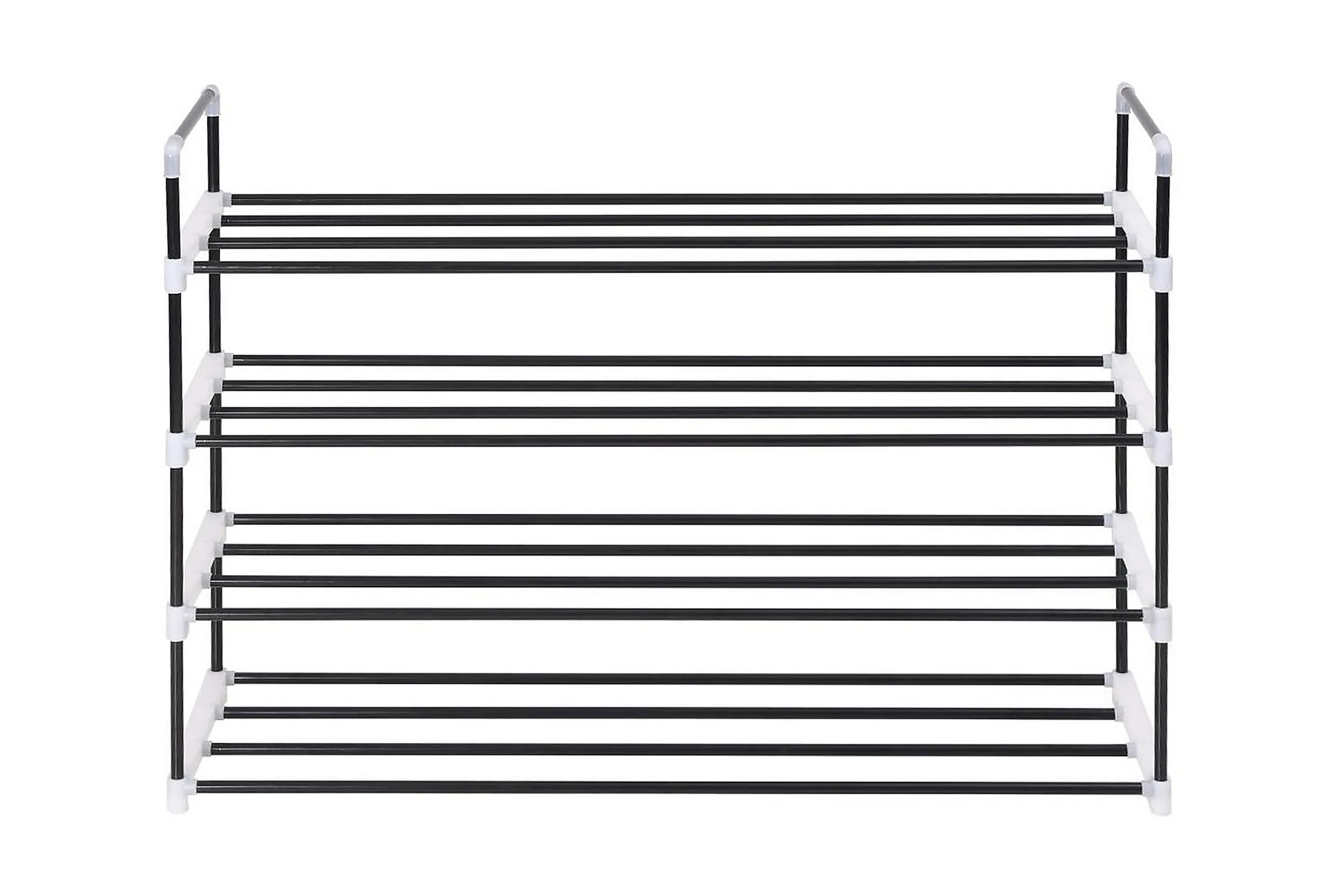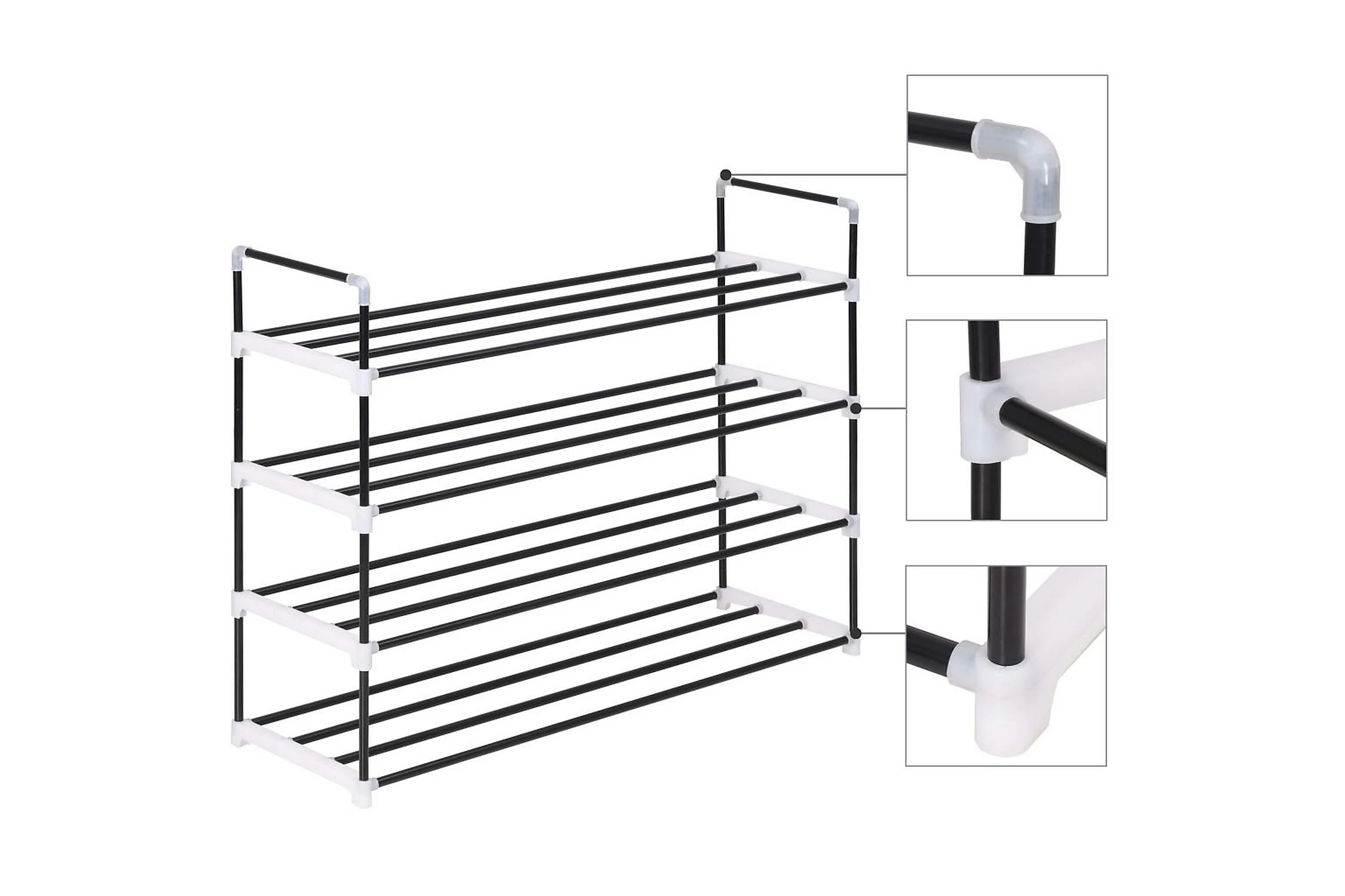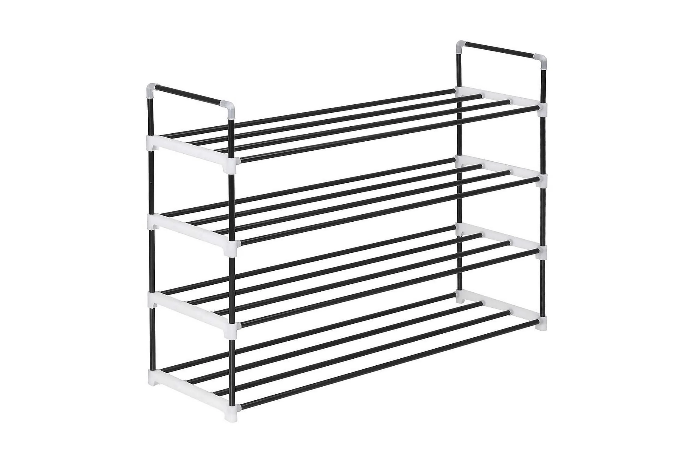 Den har en rörformad metallram, som är lätt men robust, vilket gör skostativet ganska hållbart och enkelt att flytta runt. Den har fyra generösa hyllor som har gott om utrymme för att hålla dina skor organiserade och ur vägen.