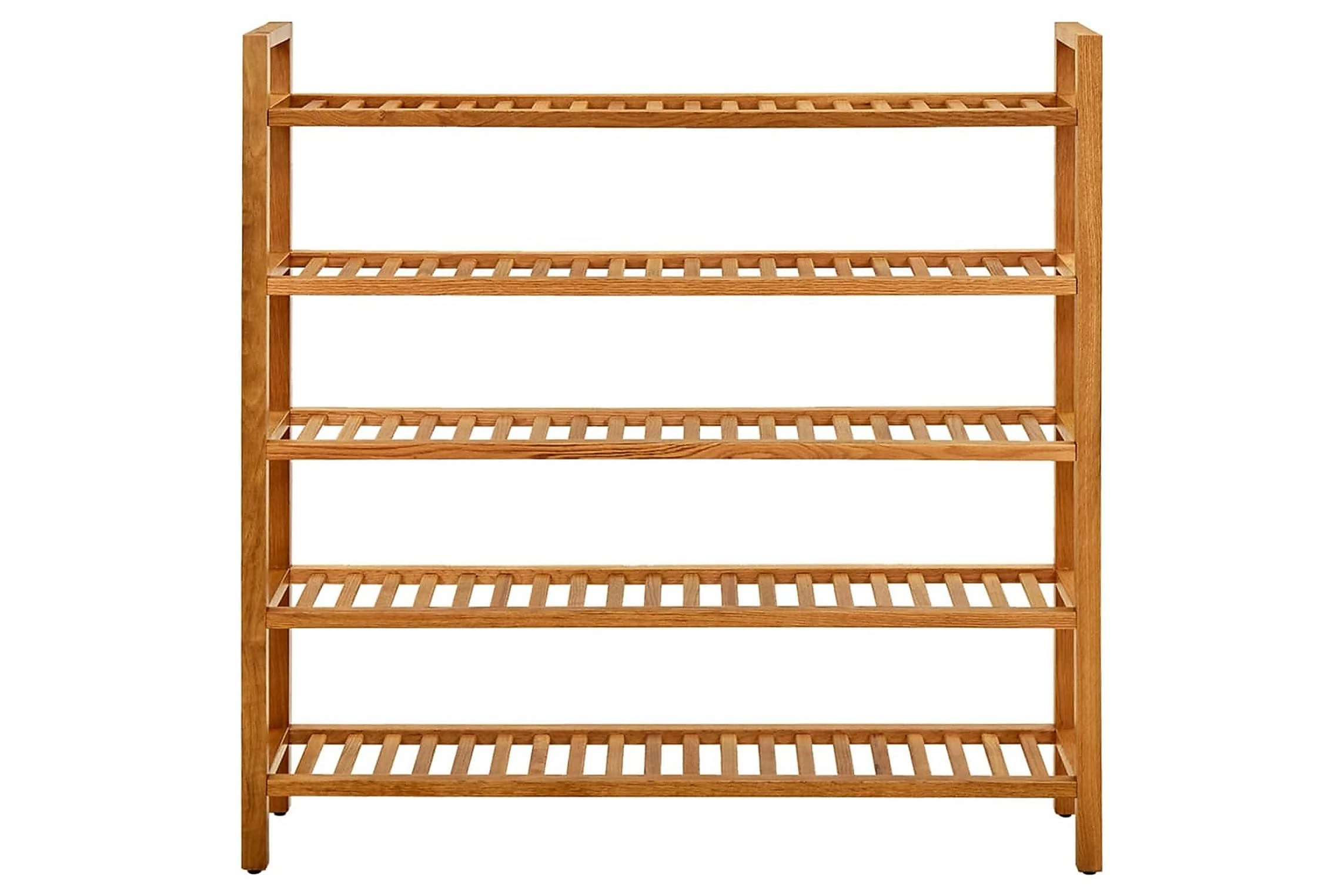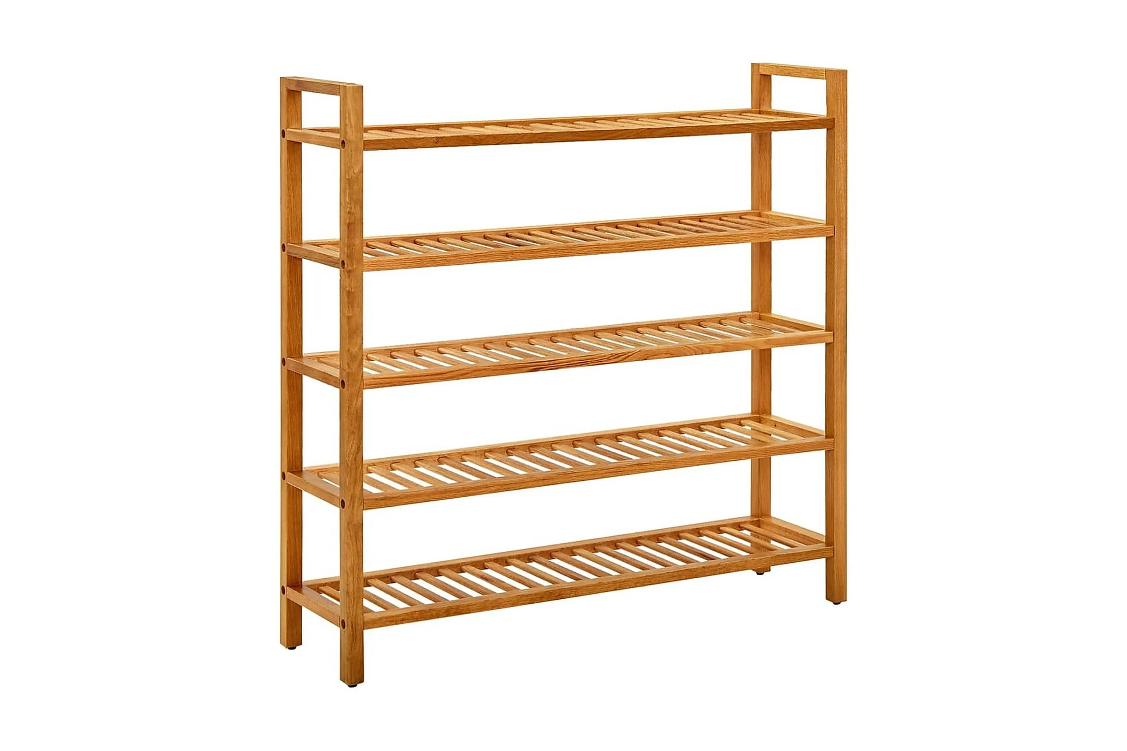 Skohyllan har skickligt utformats av hållbar, massiv ek och är väldigt funktionell. Tack vare dess kompakta design och handtag, tar detta skoställ väldigt liten plats och är enkelt att flytta runt. De stadiga hyllorna är perfekta för att hålla dina skor välventilerade. Med denna skohylla behöver du inte vara orolig för att hela huset kommer bli belamrat med skor.