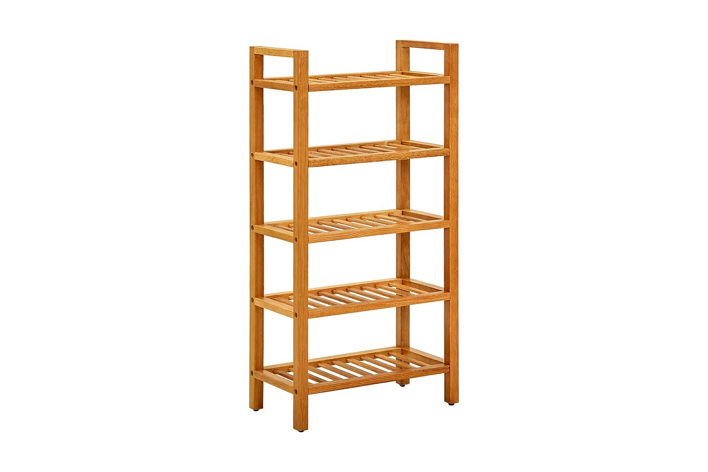 Skohyllan har skickligt utformats av hållbar, massiv ek och är väldigt funktionell. Tack vare dess kompakta design och handtag, tar detta skoställ väldigt liten plats och är enkelt att flytta runt. De stadiga hyllorna är perfekta för att hålla dina skor välventilerade. Med denna skohylla behöver du inte vara orolig för att hela huset kommer bli belamrat med skor.