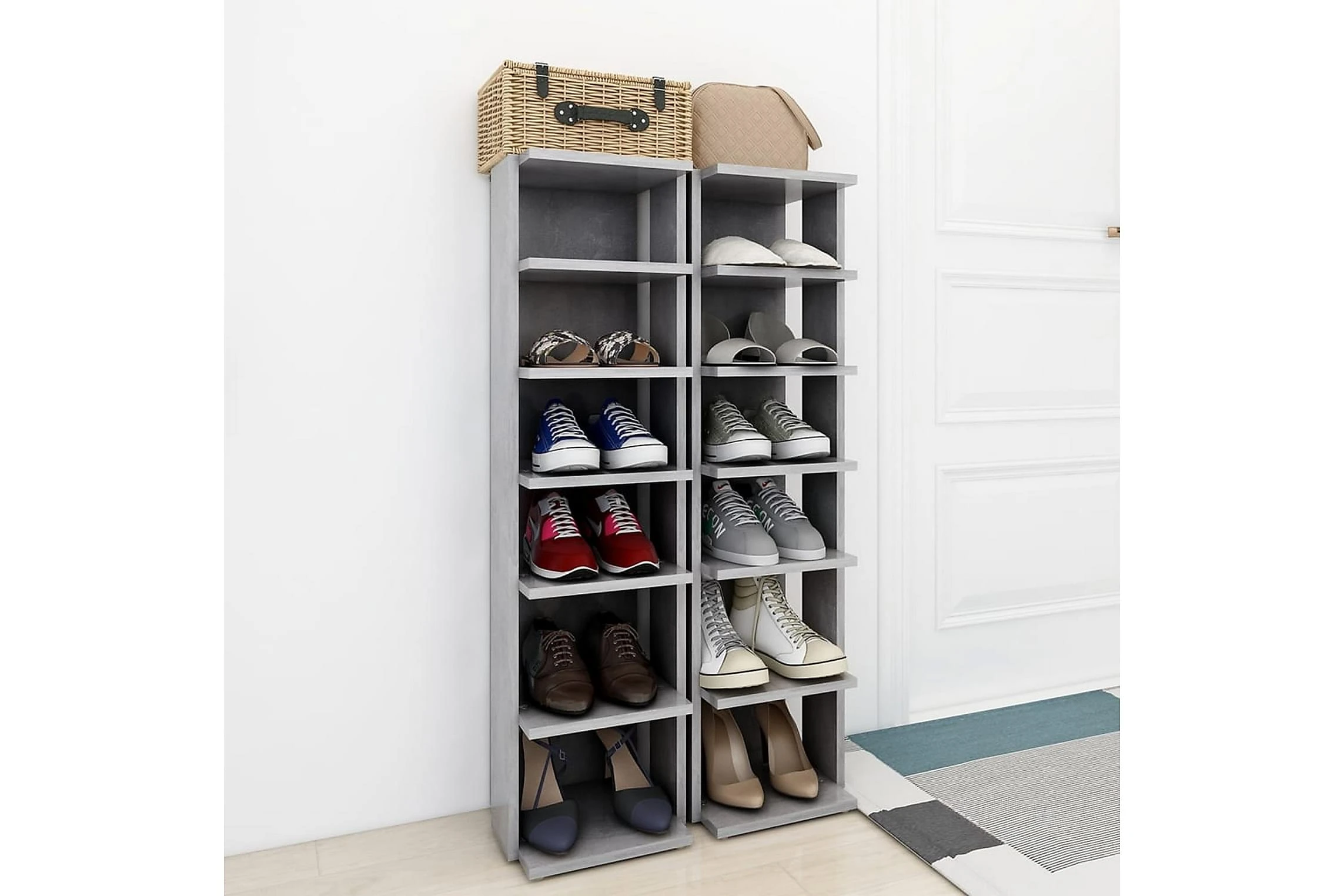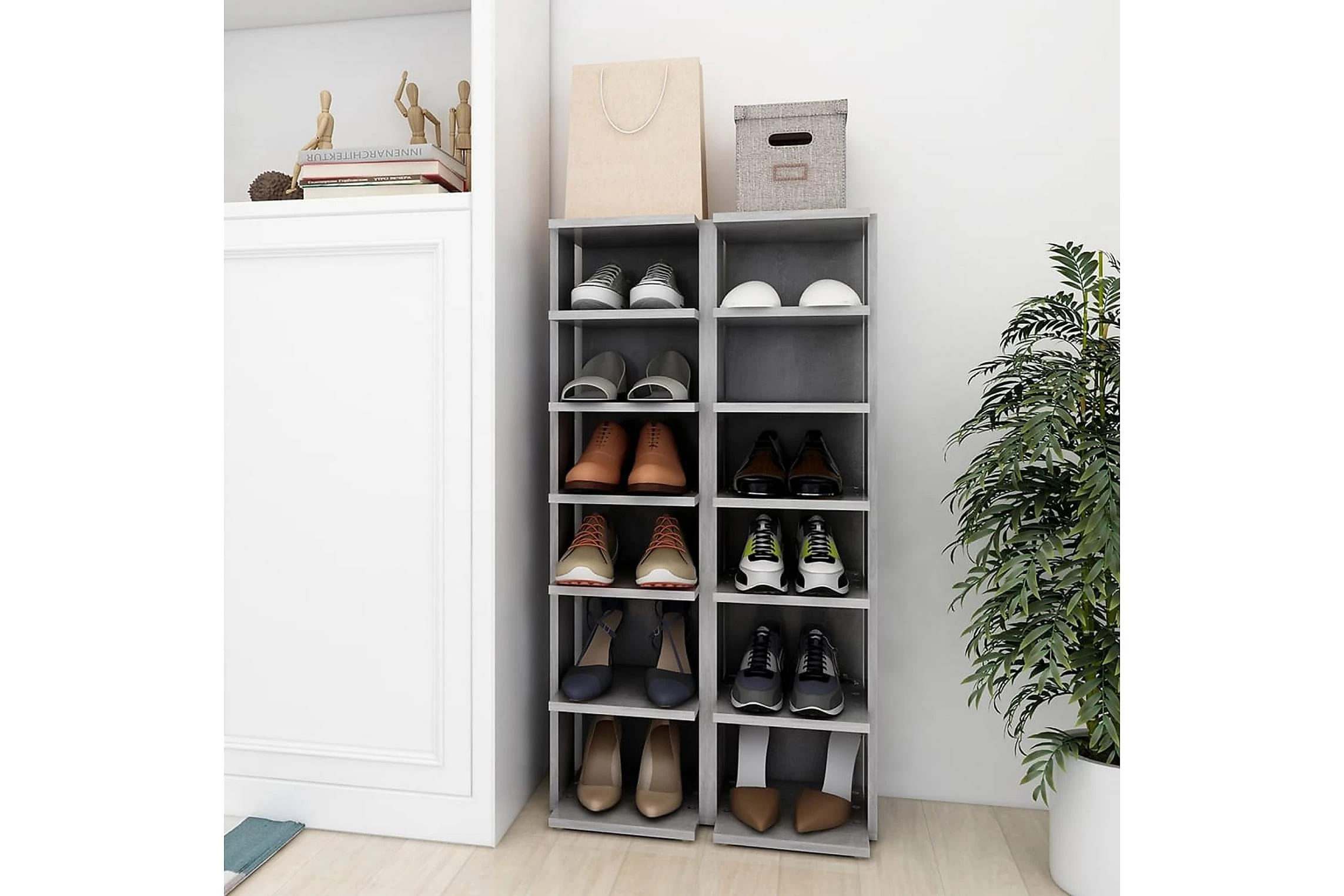 Skohyllan är tillverkad av högkvalitativ spånskiva, som gör den snygg och stabil och hållbar. Skohyllan tar bara upp lite plats och står perfekt i ett trångt utrymme, såsom under trappan. Varje hylla har 6 hyllplan med plats för massor av skor.