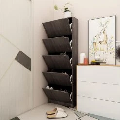 Skomöbeln är hållbar och stadig för långvarig användning. Den har en enkel design, så den passar in i den befintliga inredningen. Skohyllan har 5 hyllplan med gott om plats för att organisera dina skor. Tack vare dörren som kan öppnas åt vänster eller höger, skyddas dina skor från damm och slipper stå framme. Dessutom är skåpet lätt att rengöra med en fuktig trasa.
