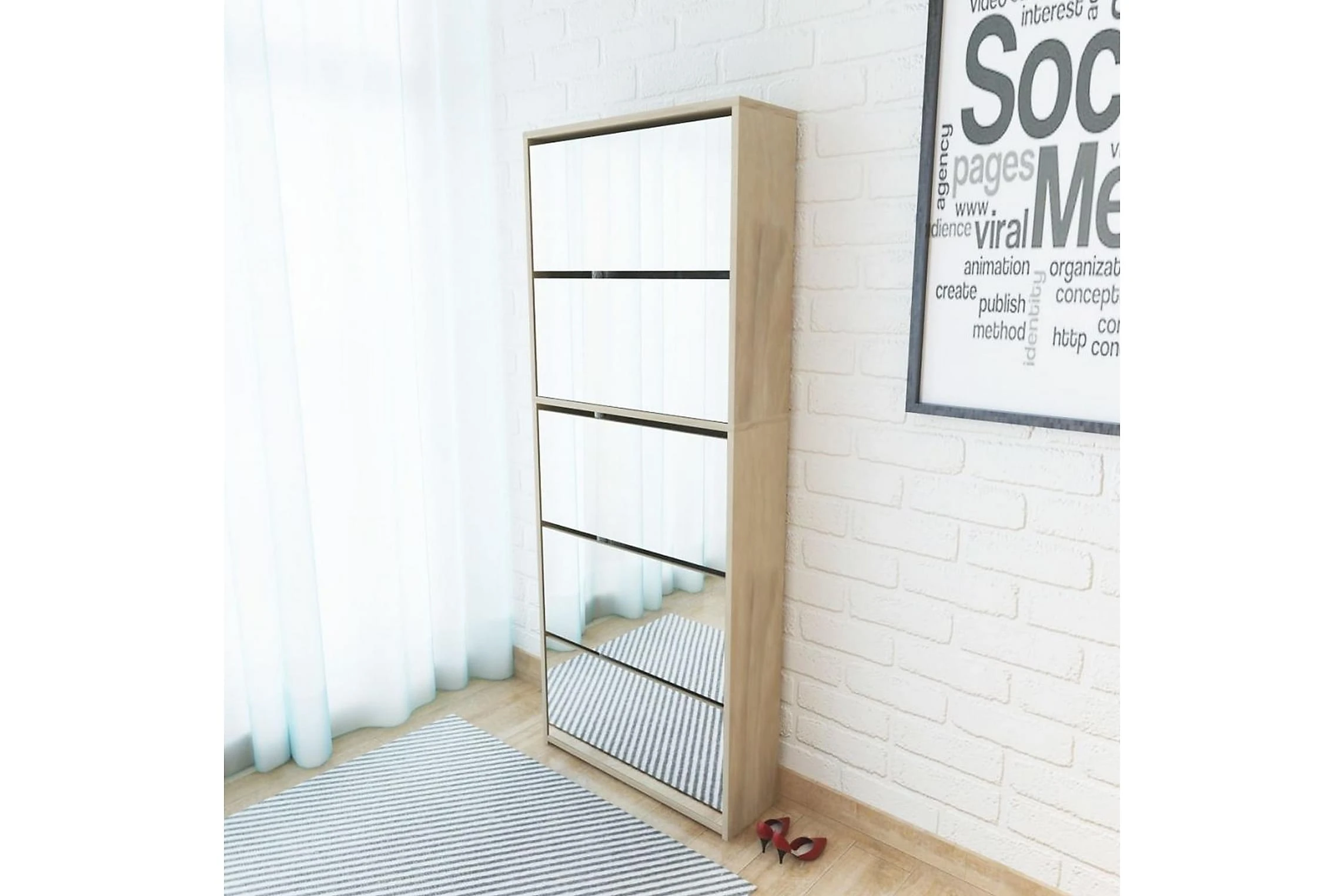 Det här moderna och stilrena skoskåpet med spegel är en perfekt lösning för att hålla ordning på dina skor.