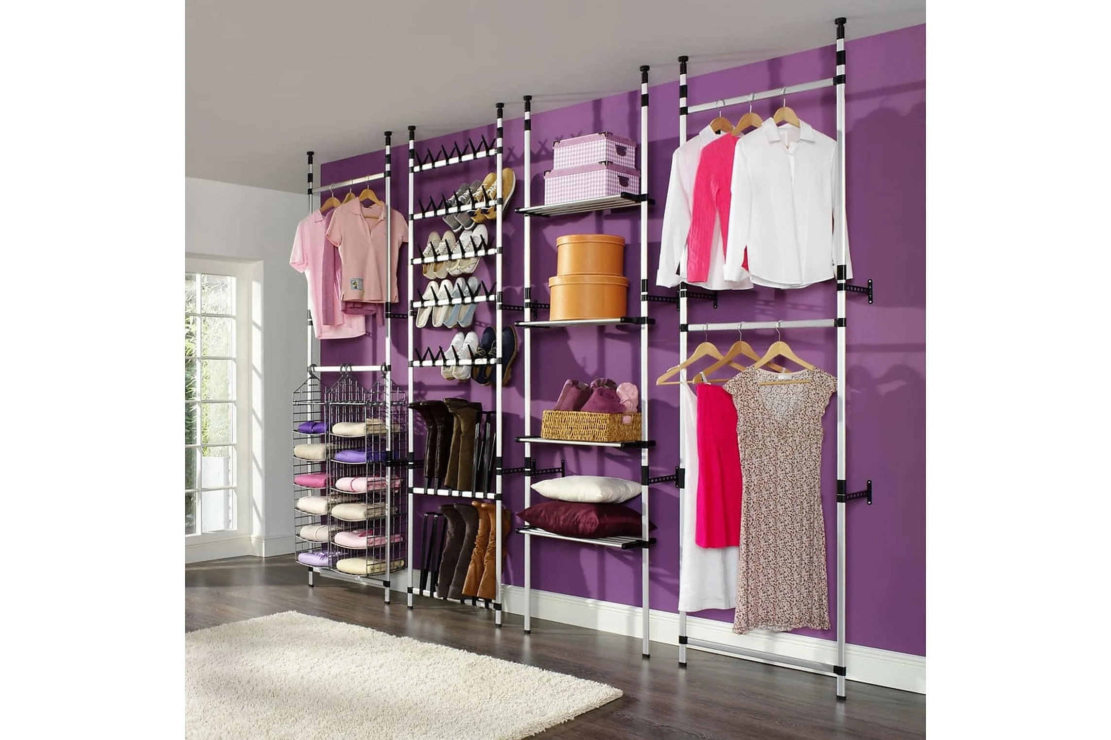- Mått: 65-110 x 20 x 250-300 cm (B x D x H)